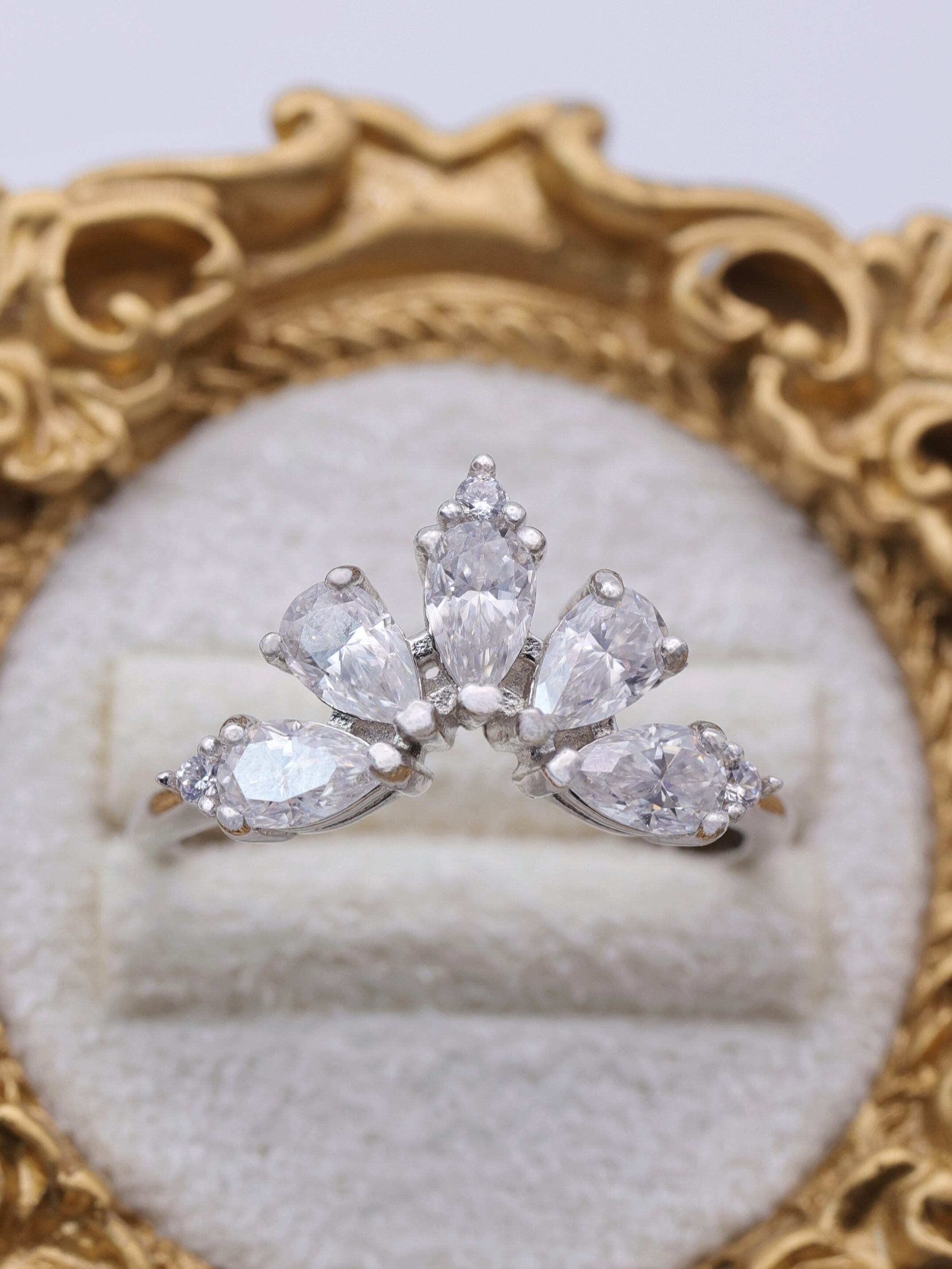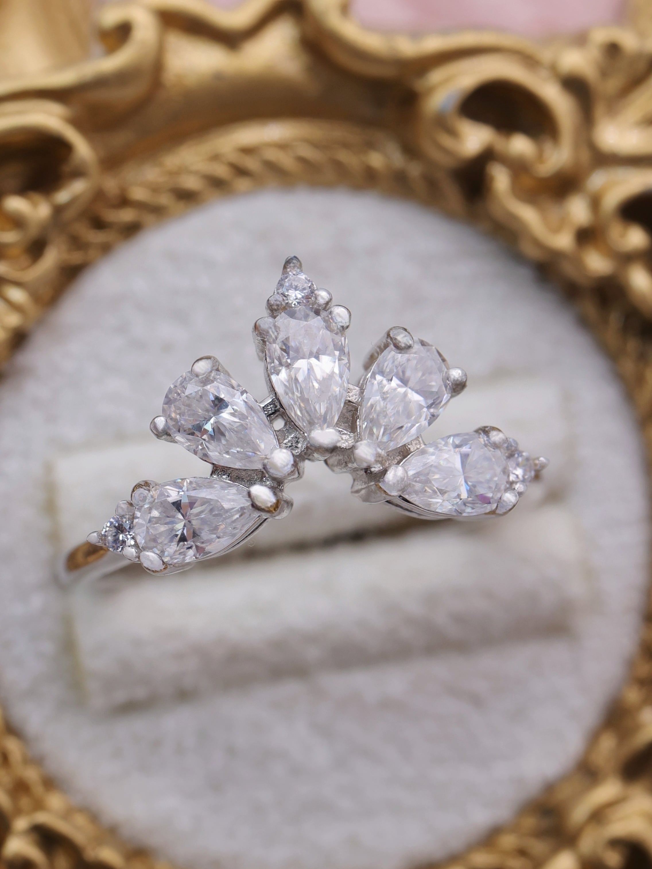 大粒のペアシェイプを王冠のように並べることで、花びらのような優雅さと、クラウンの名にふさわしい気品を併せ持つデザインに仕上げました。