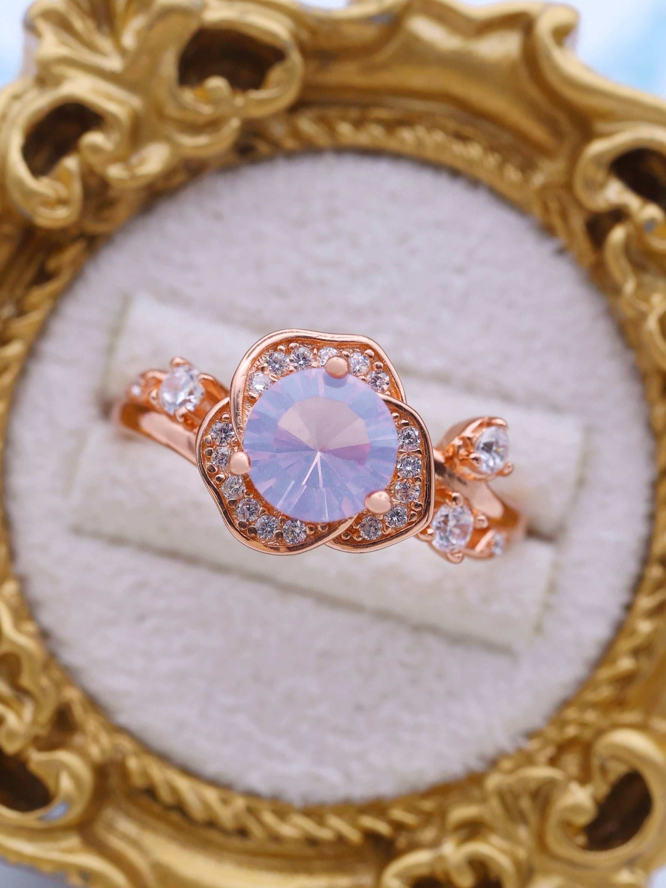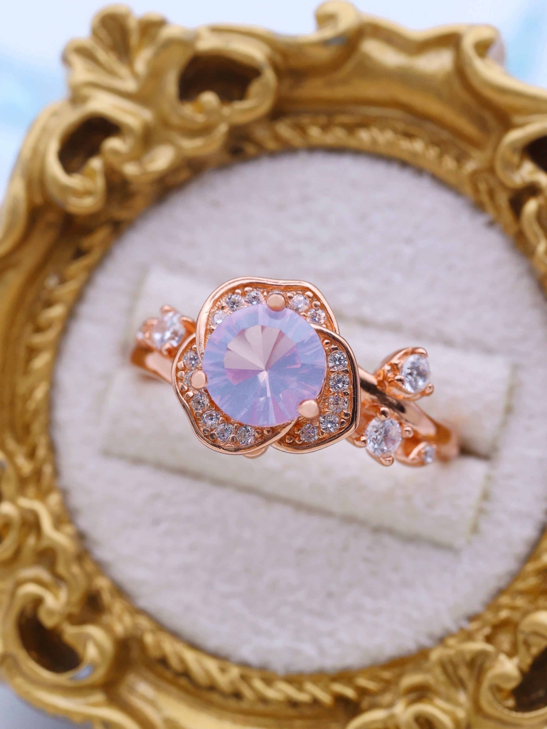 石座は、一輪の薔薇を思わせる柔らかな花弁フォルム。
