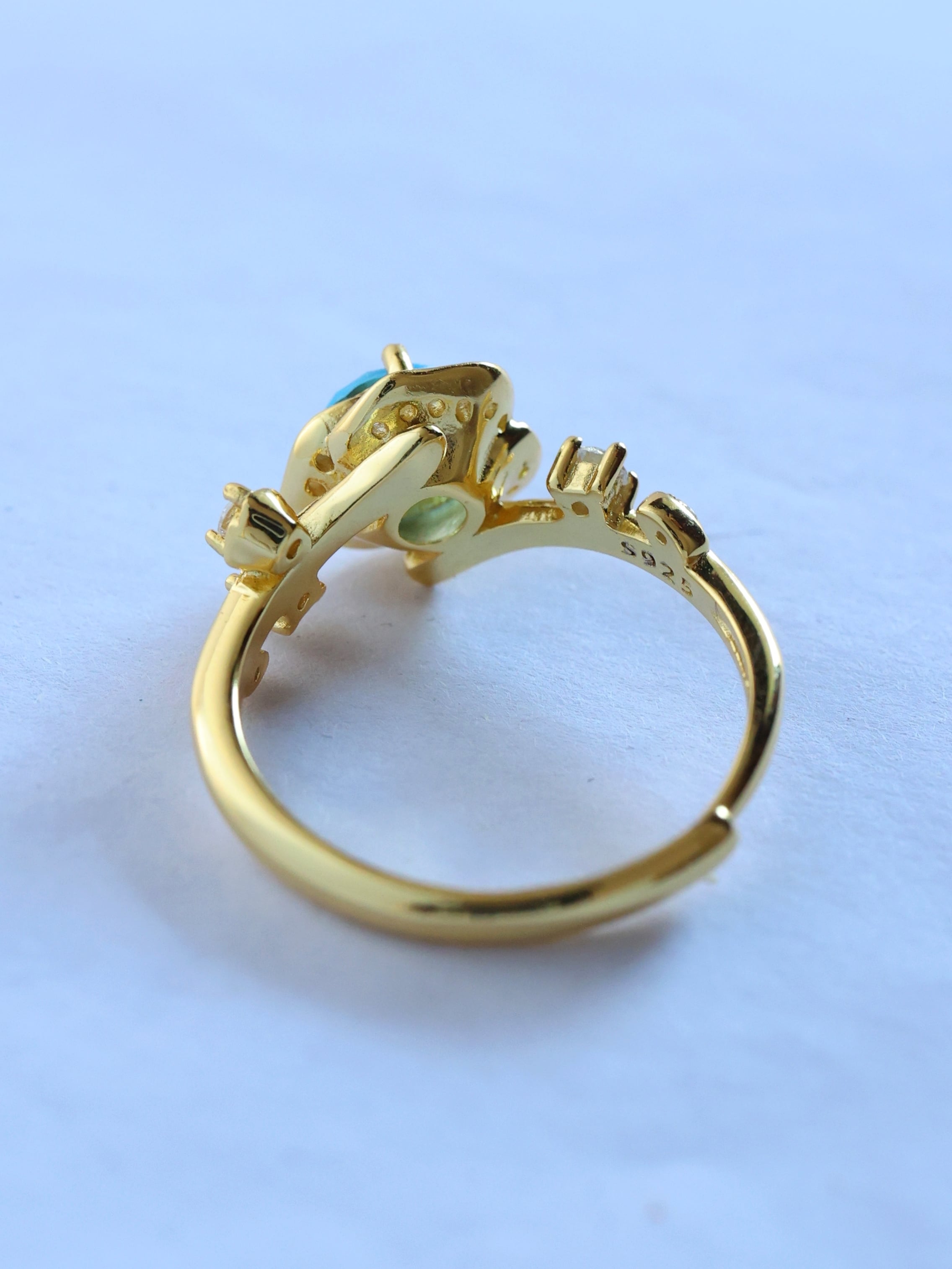 イエローゴールドカラーの地金が、ブルーの発色をより鮮やかに引き立てます。