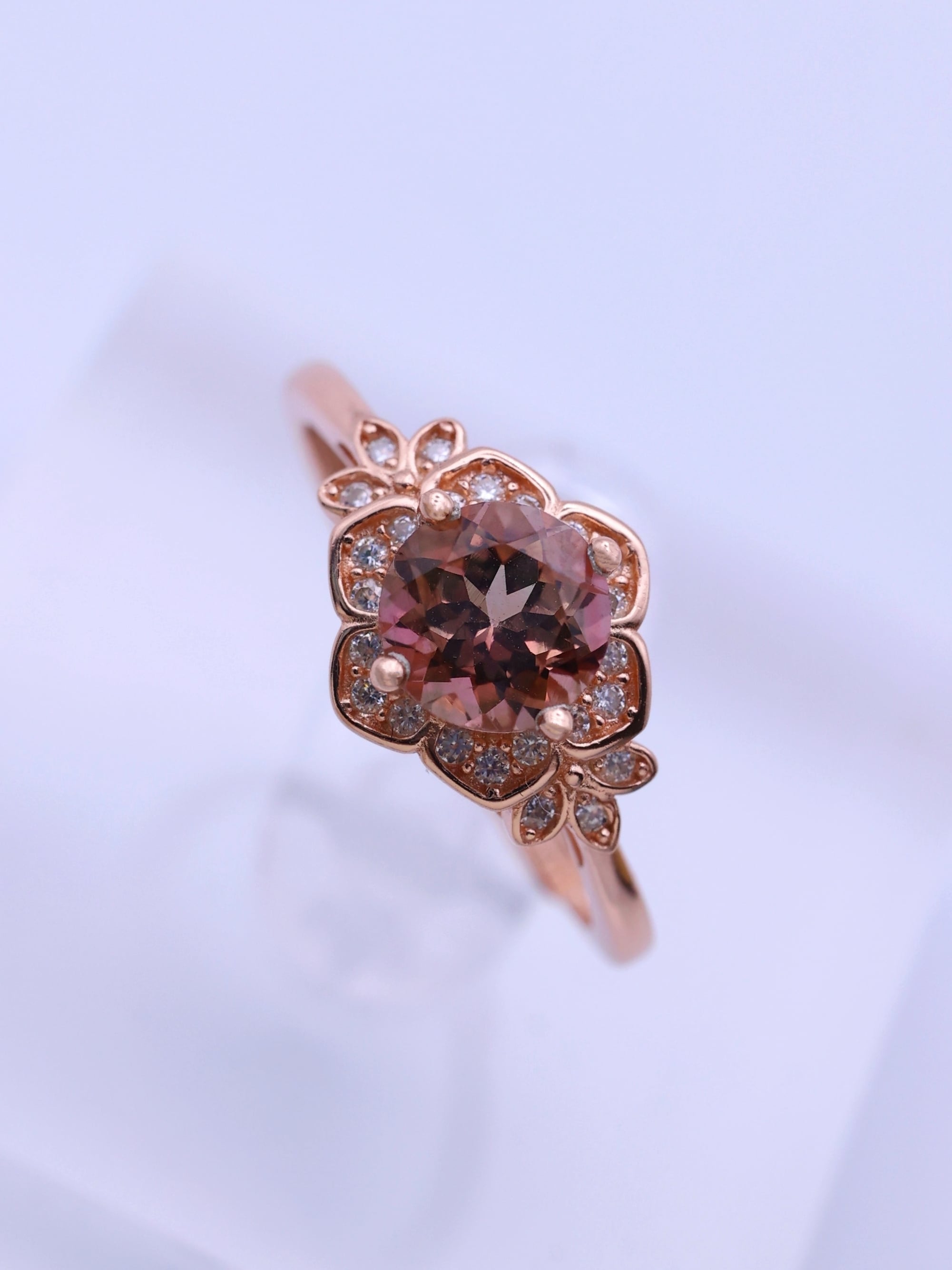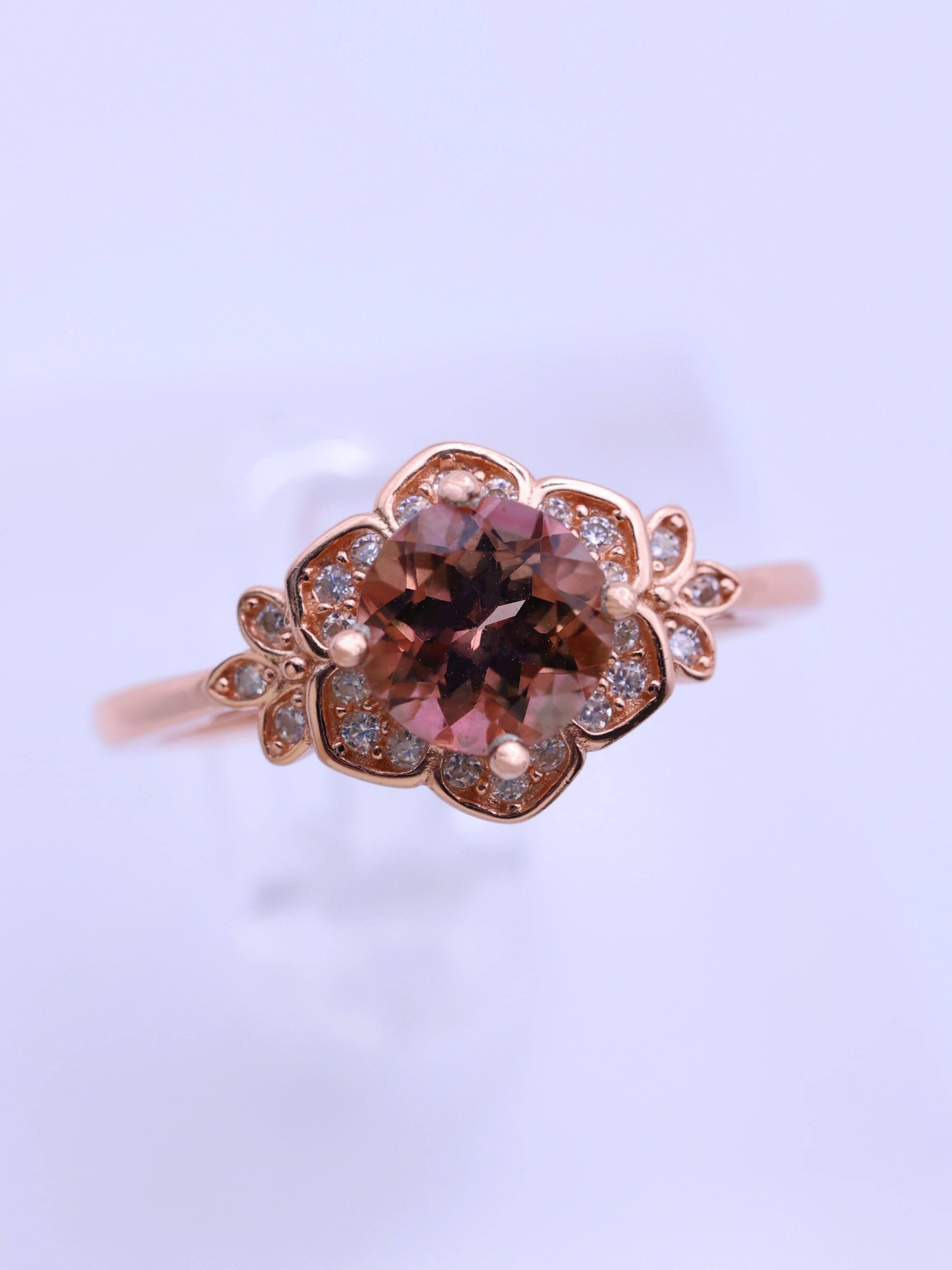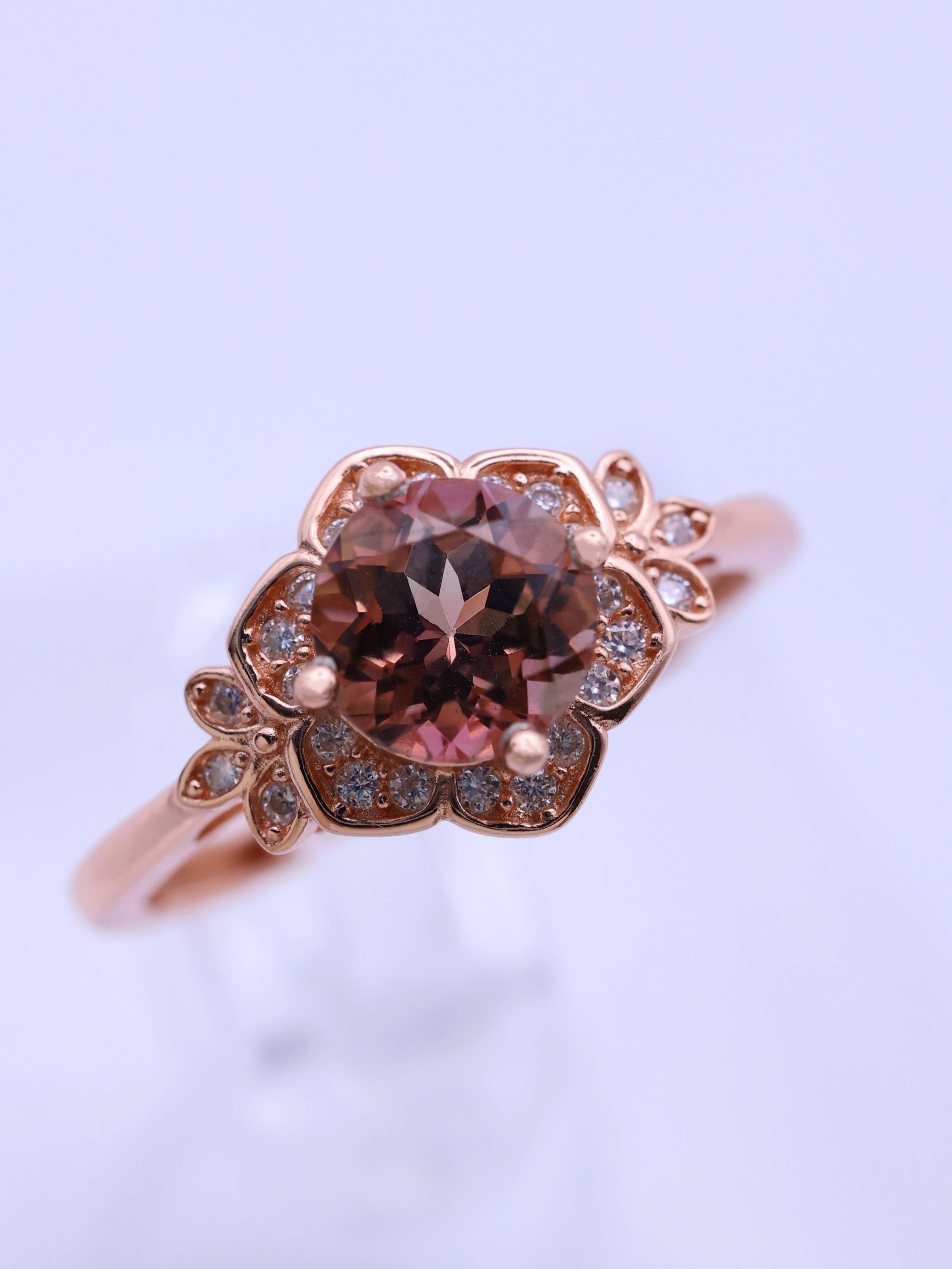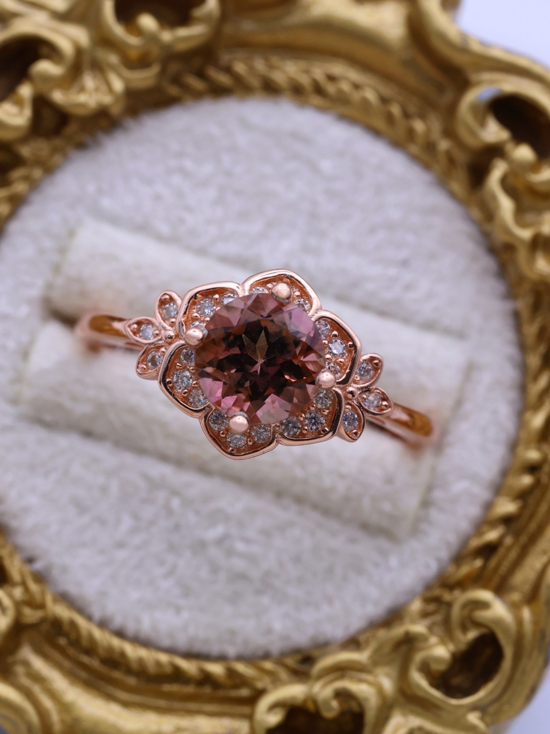 ピンクゴールドカラーの地金が、トルマリンの優しいバイカラーを引き立て、手元を可憐に彩ります。