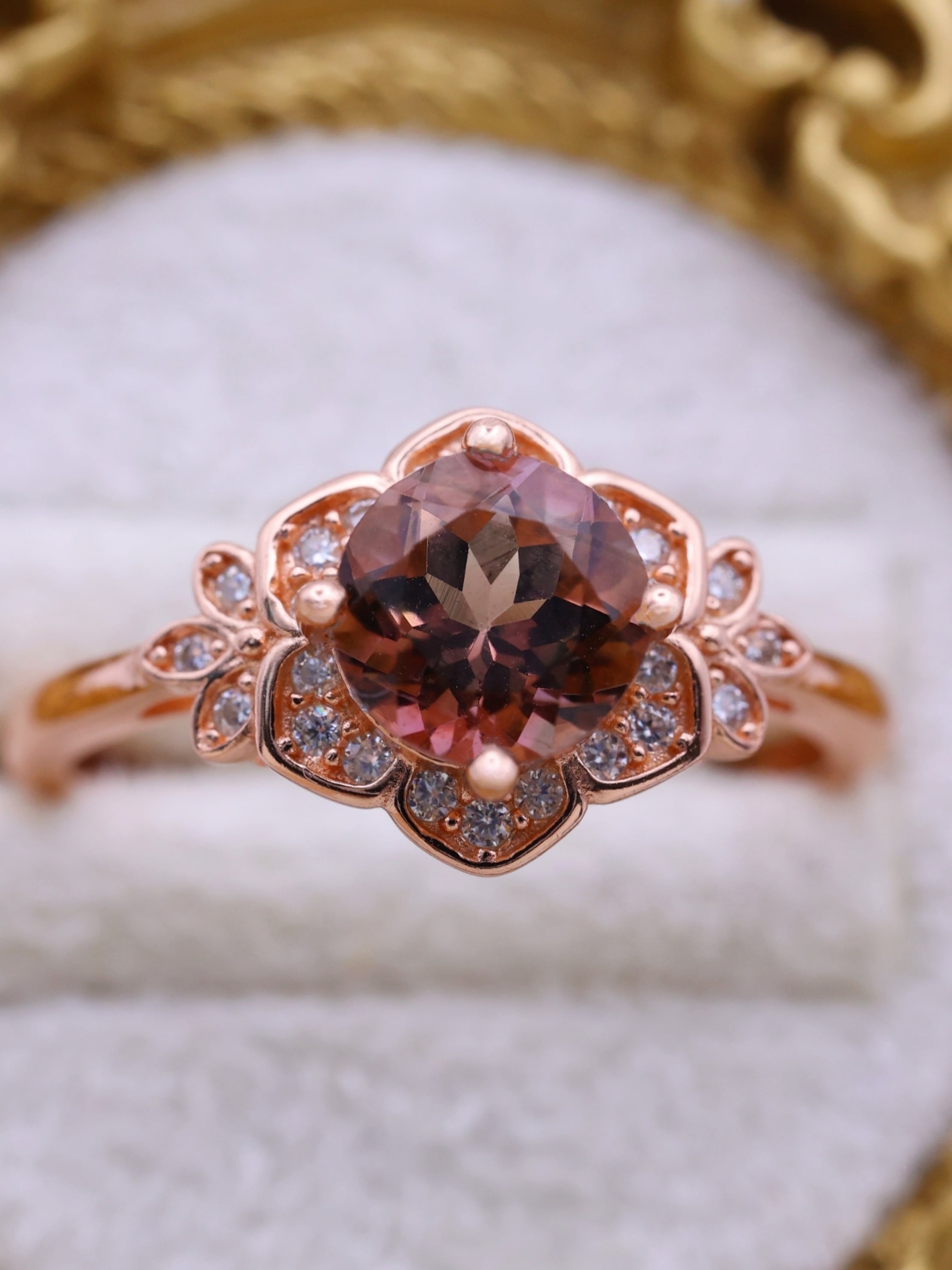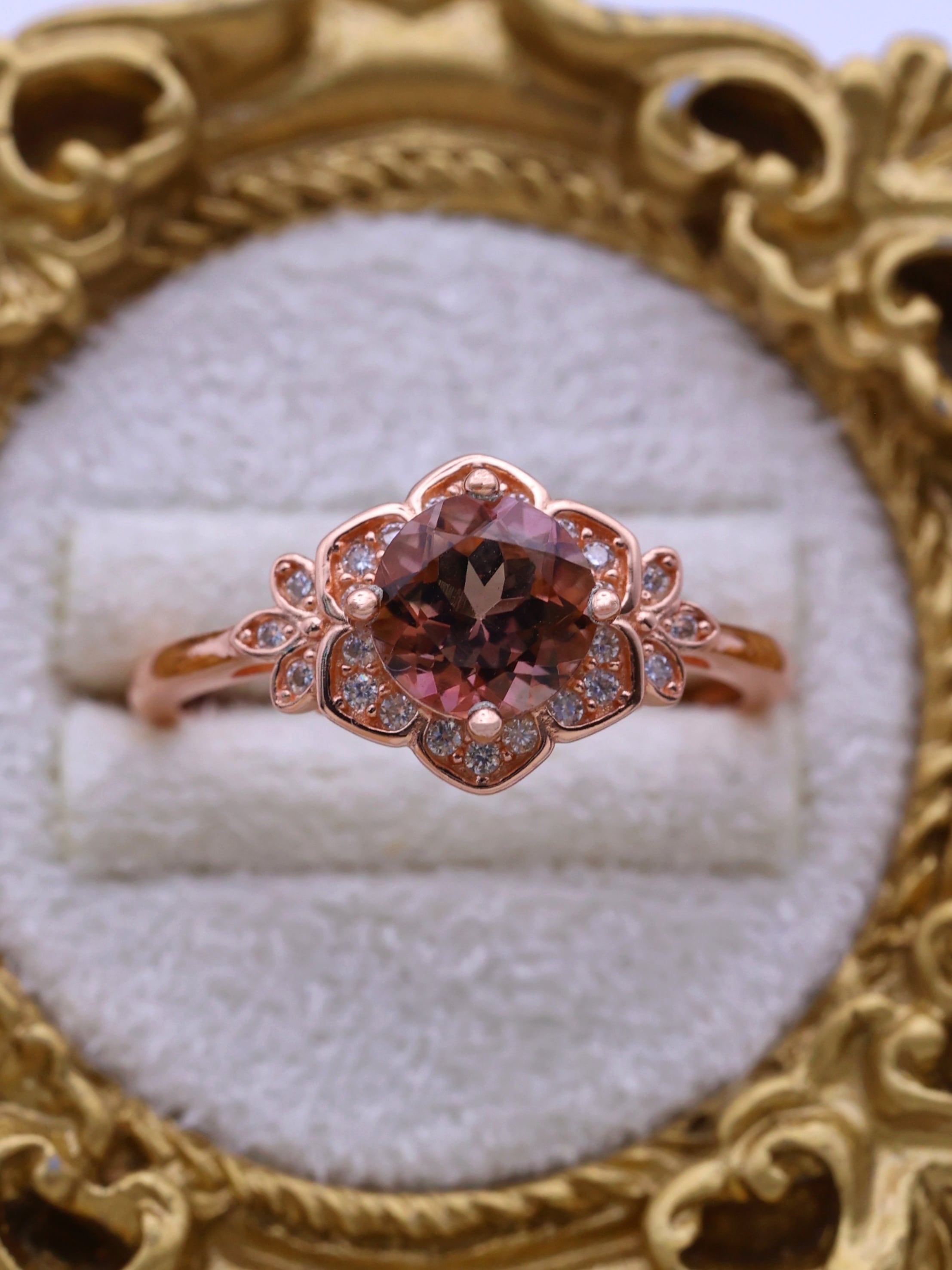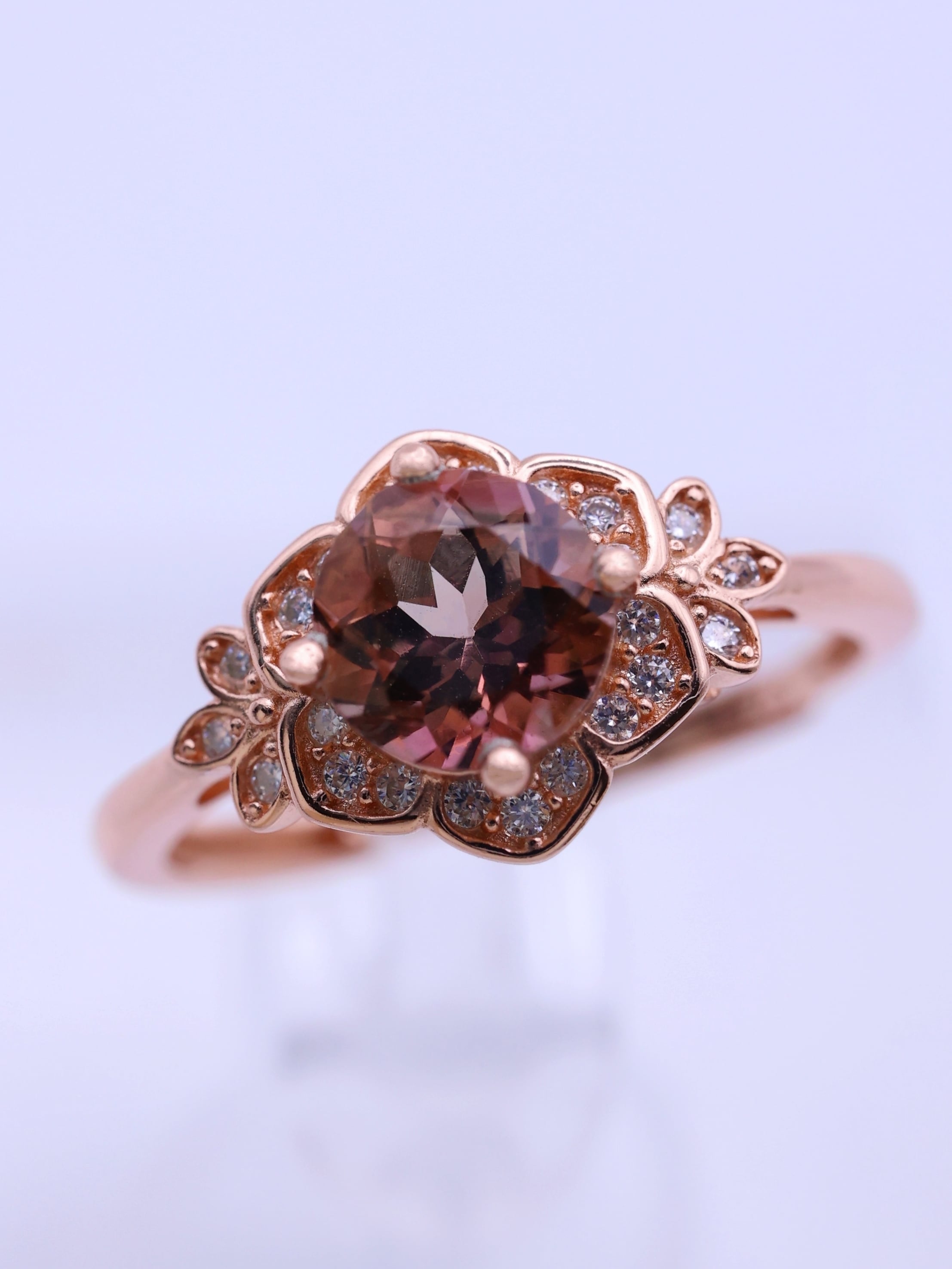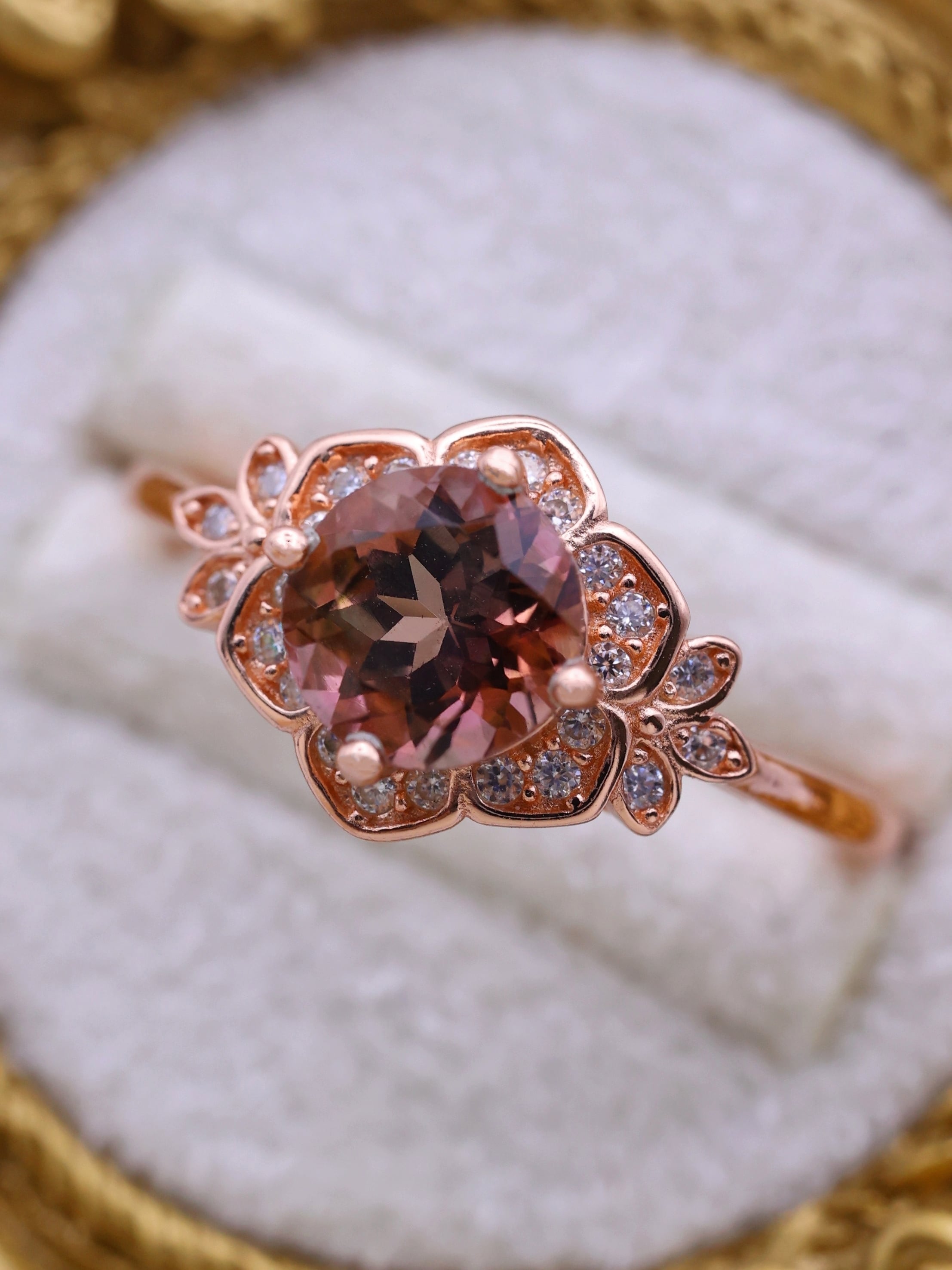 ピンクゴールドカラーの地金が、トルマリンの優しいバイカラーを引き立て、手元を可憐に彩ります。