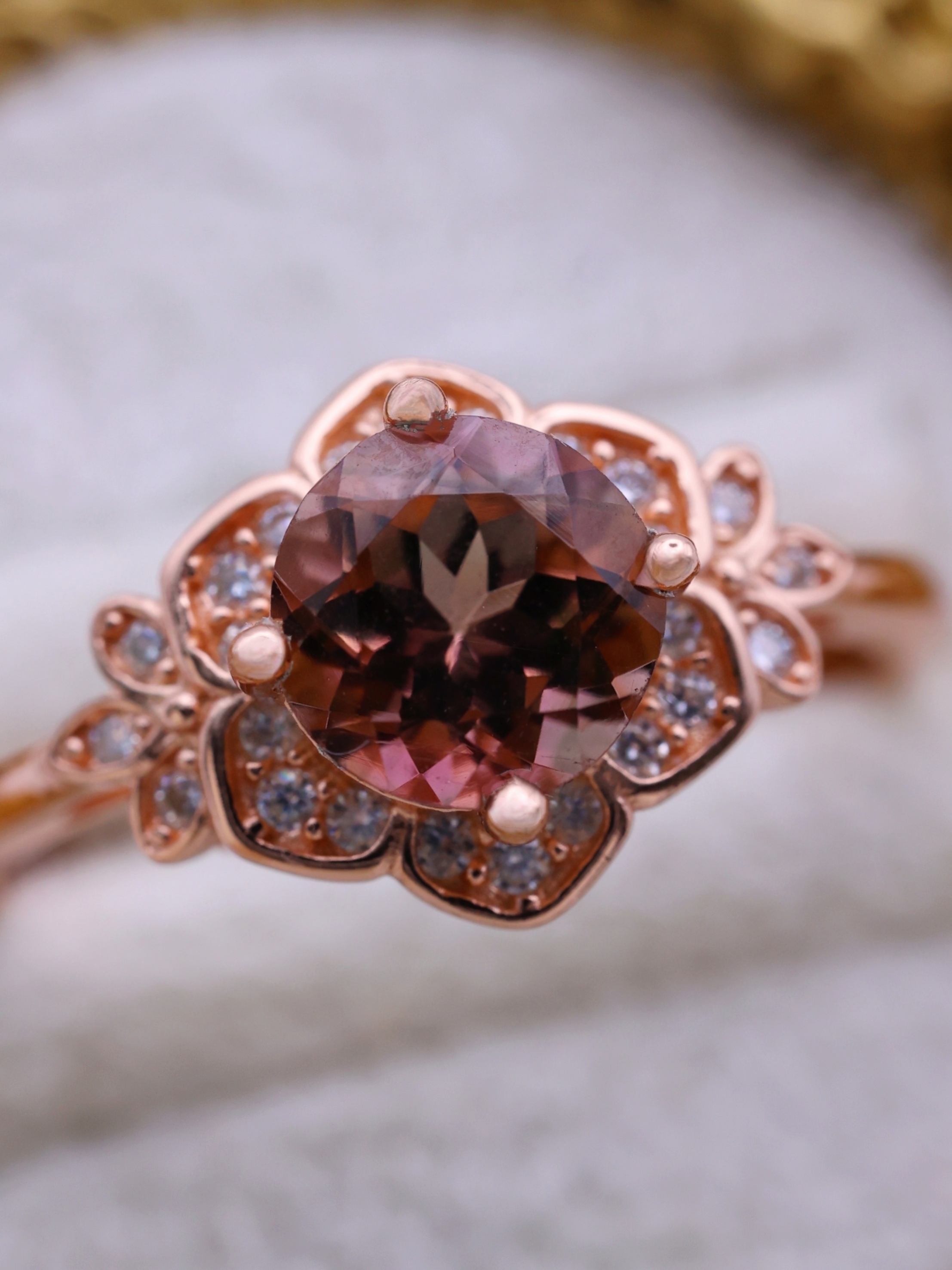このリング「菫 -SUMIRE DX-」は、静けさの中に凛とした美しさを宿すトルマリンの輝きを、繊細な花冠のデザインで包み込んだ特別な一点。