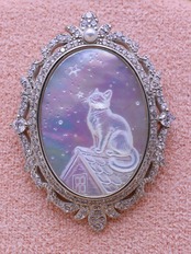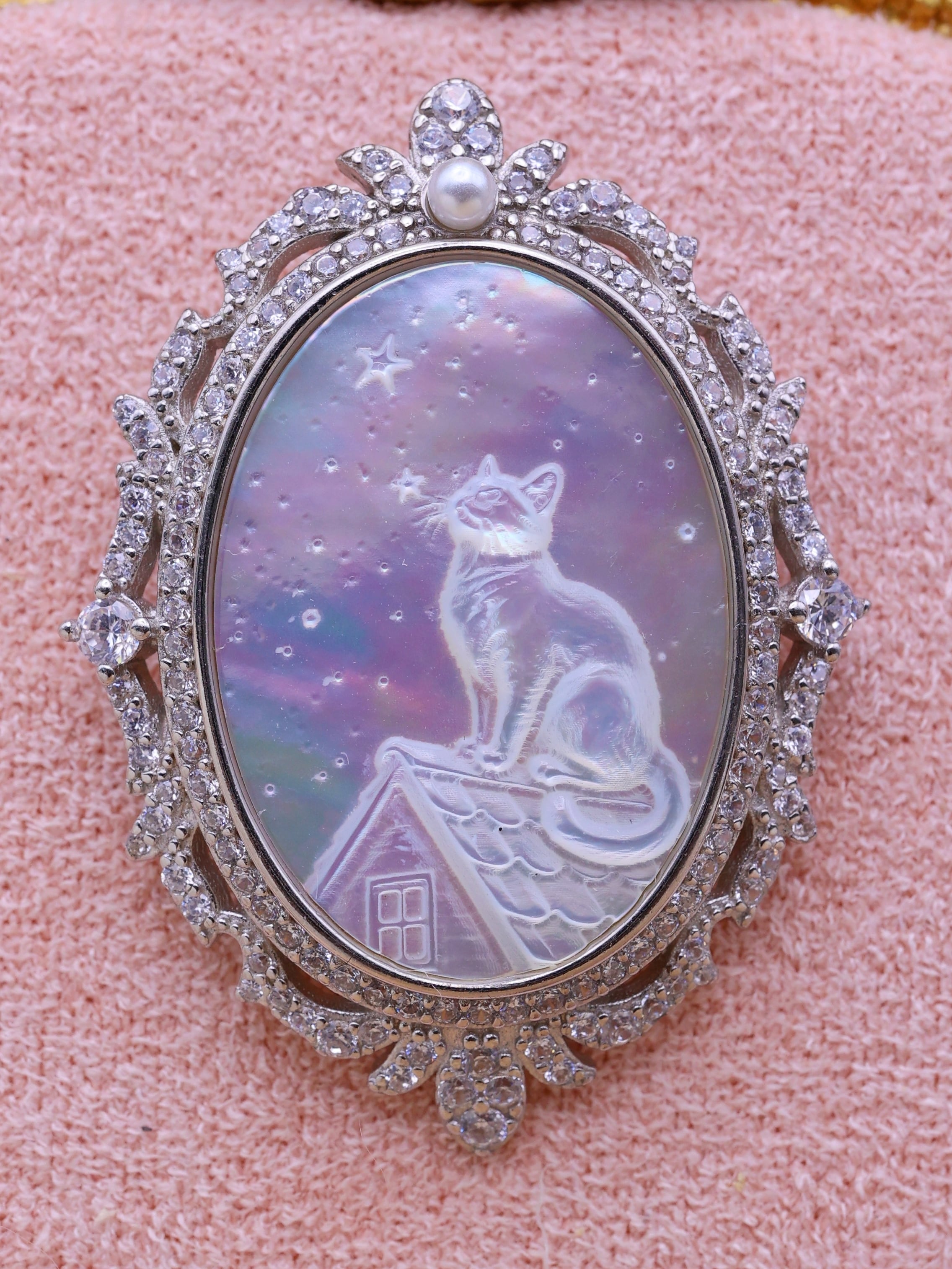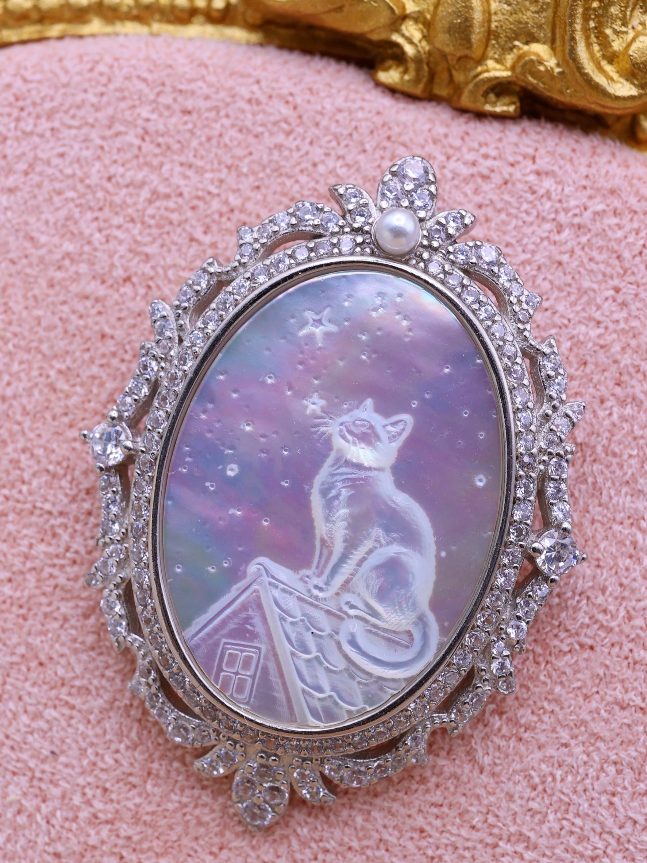 白蝶貝彫刻ペンダント ― 星を見上げる猫 ―