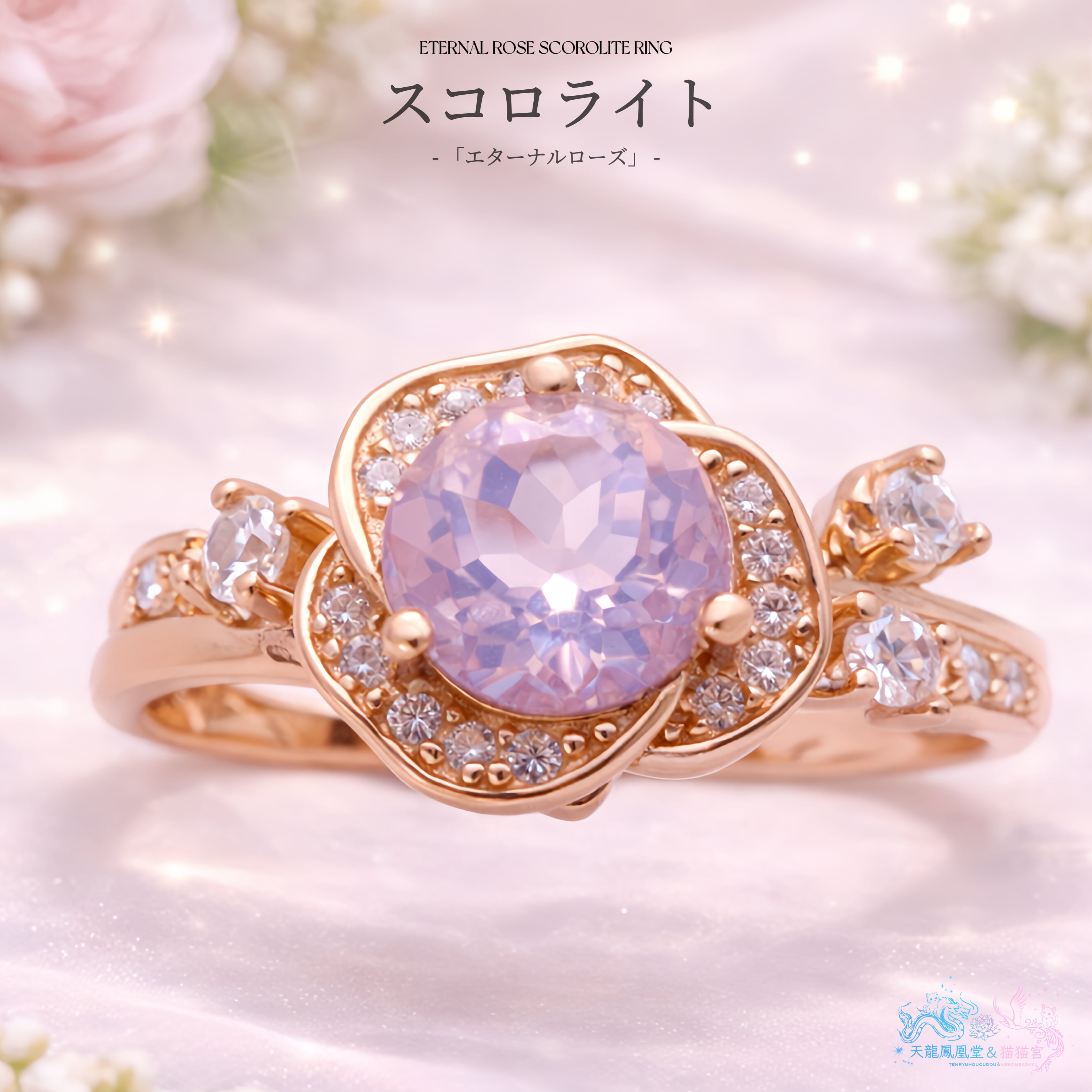 【エターナルローズ】スコロライト ラベンダークォーツ 天然石 S925 18KGP リング