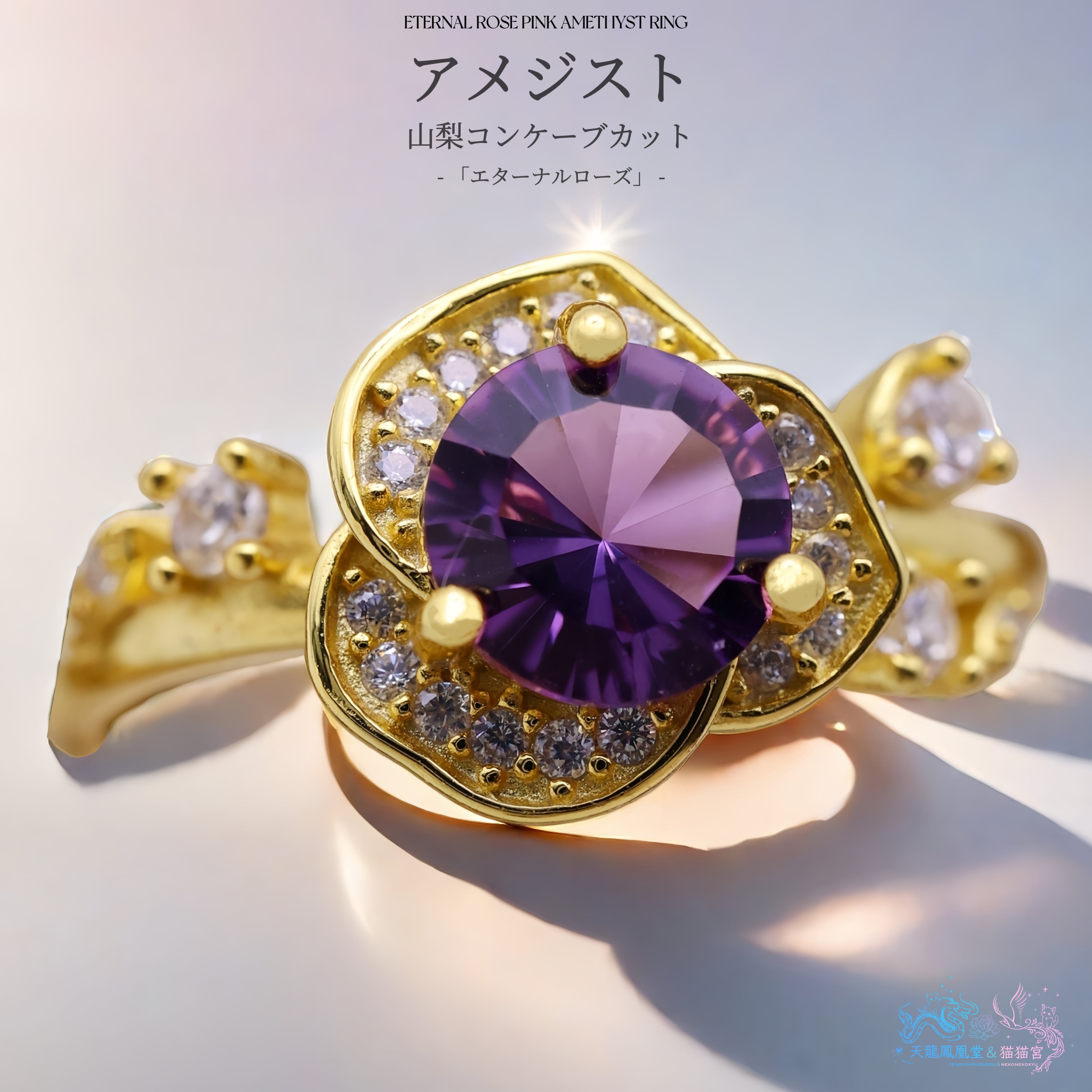 【エターナルローズ】アメジスト 山梨 コンケーブカット 天然石 S925 18KGP リング