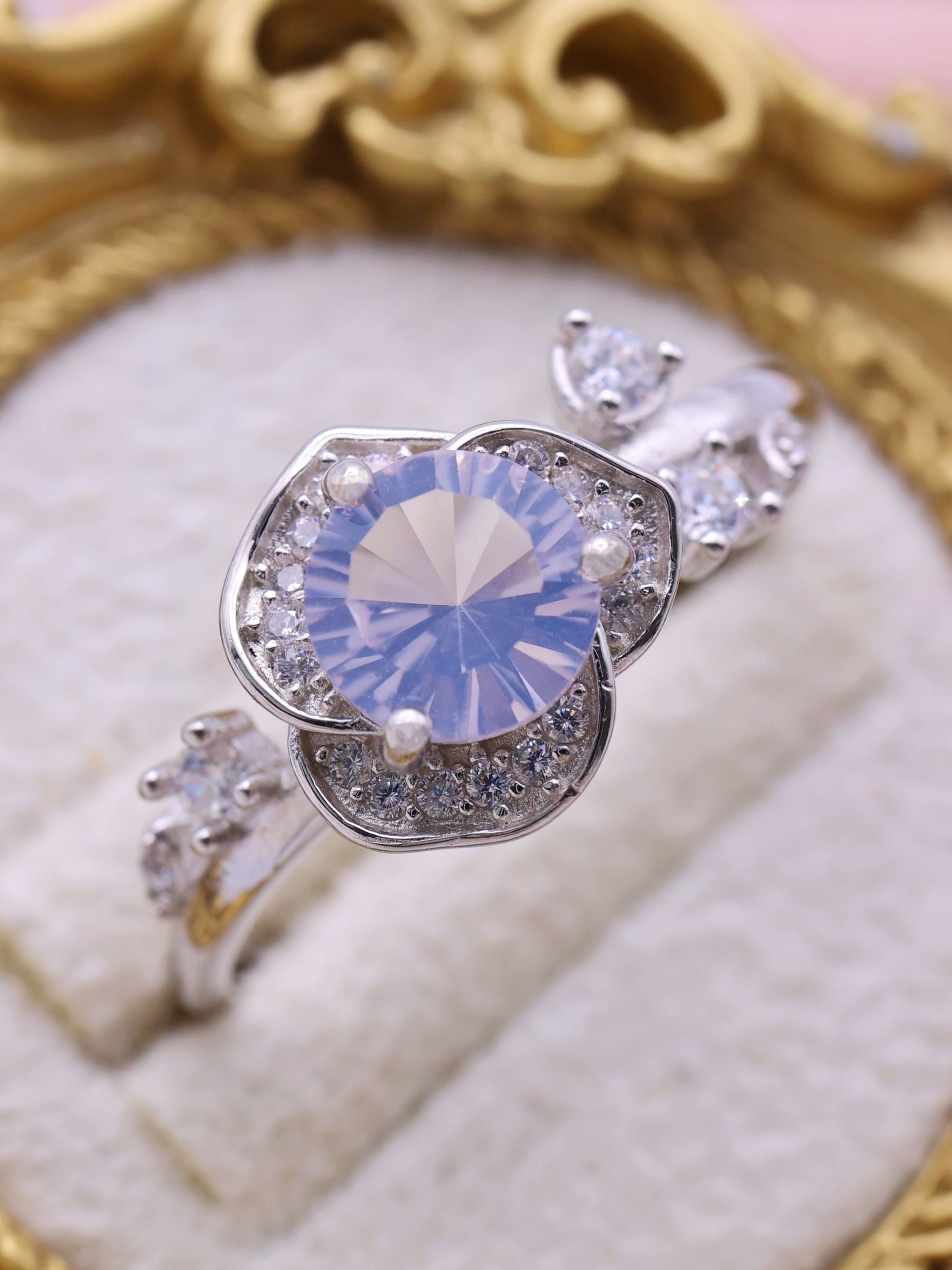 主石の繊細さを邪魔することなく、静かな輝きを添える“光の縁取り”として機能します。