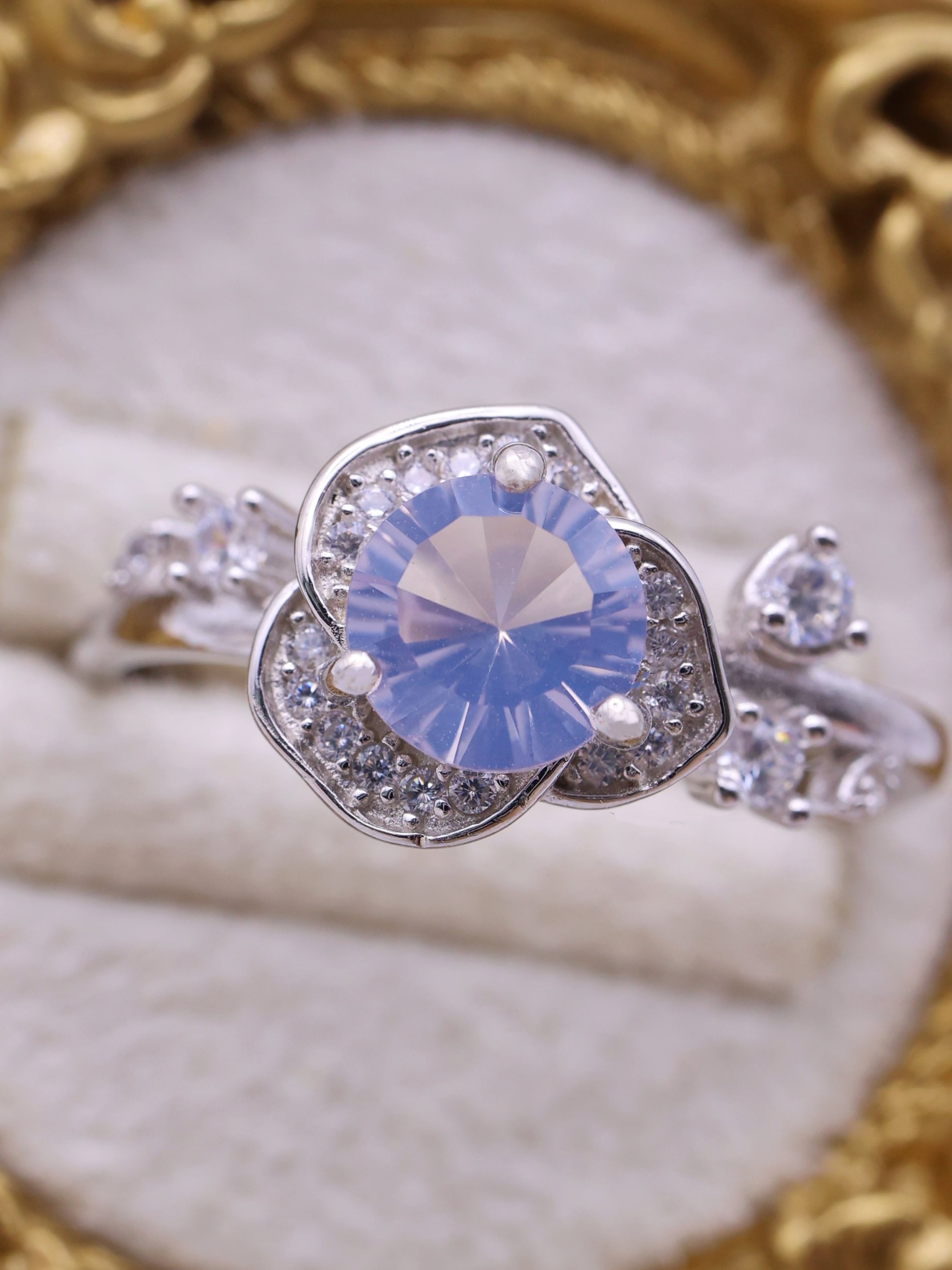 花弁の周囲には、高品質の7Aジルコニアを丁寧にセッティング。