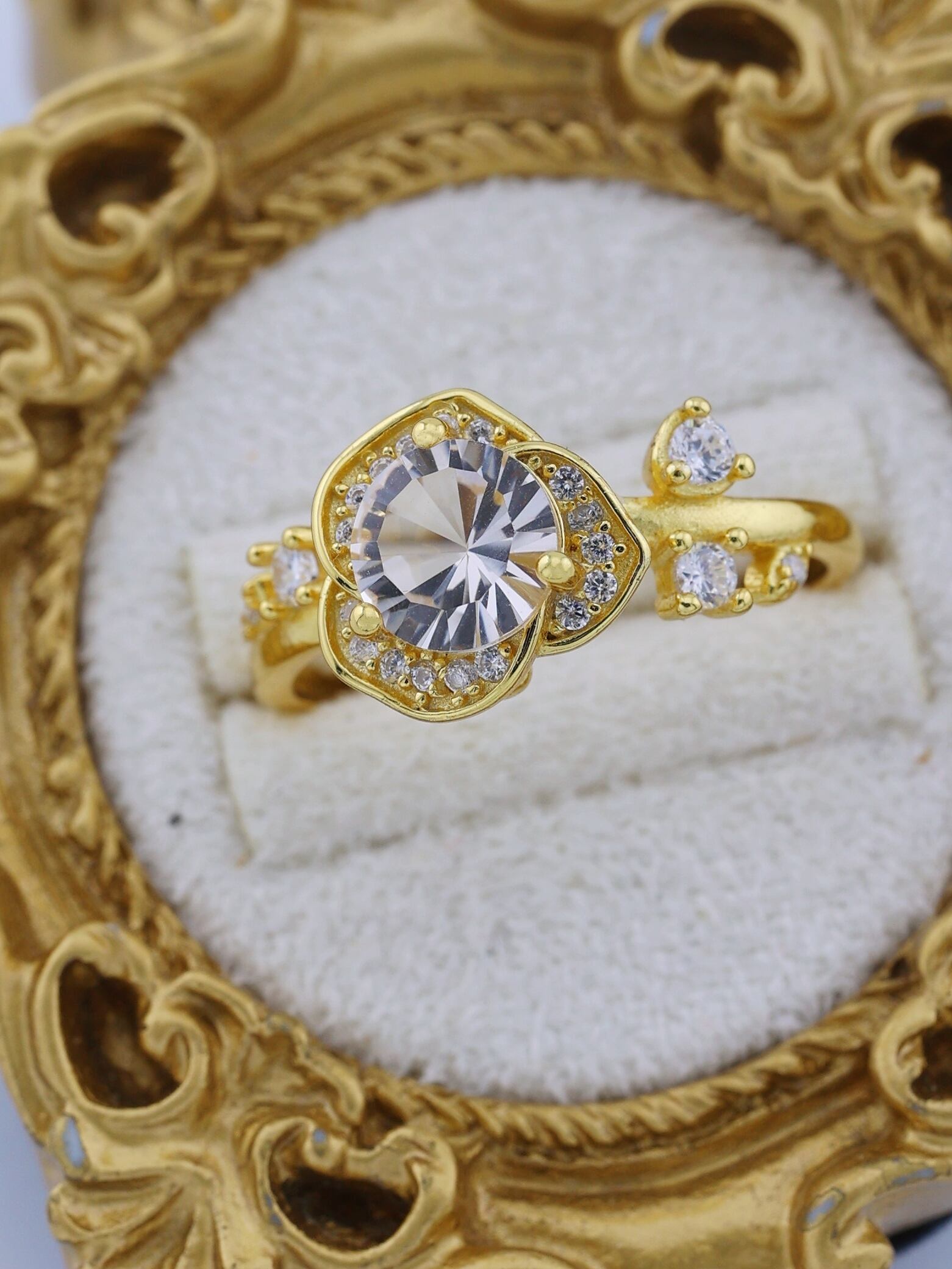 【エターナルローズ】ホワイトトパーズ 山梨コンケーブカット 天然石 薔薇 シルバー リング