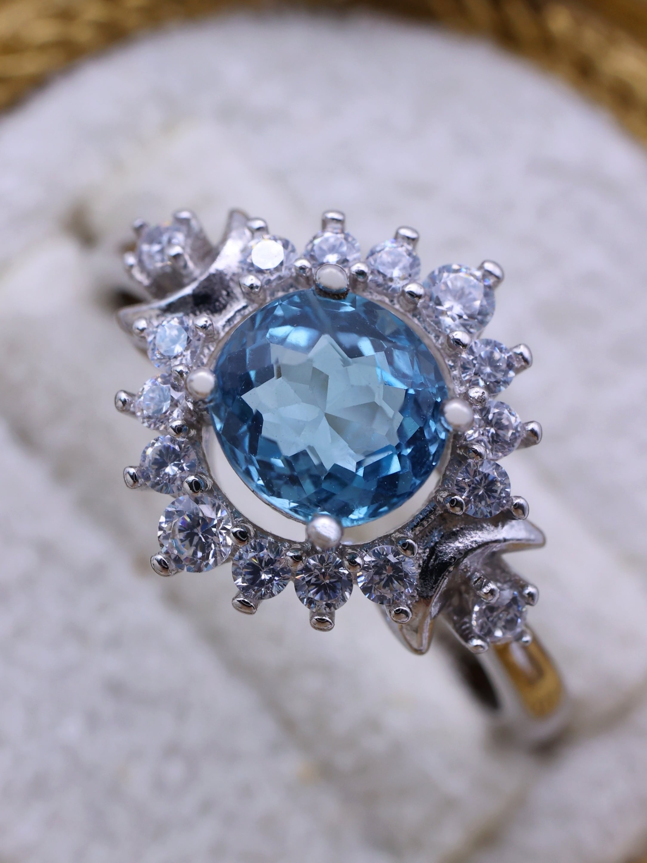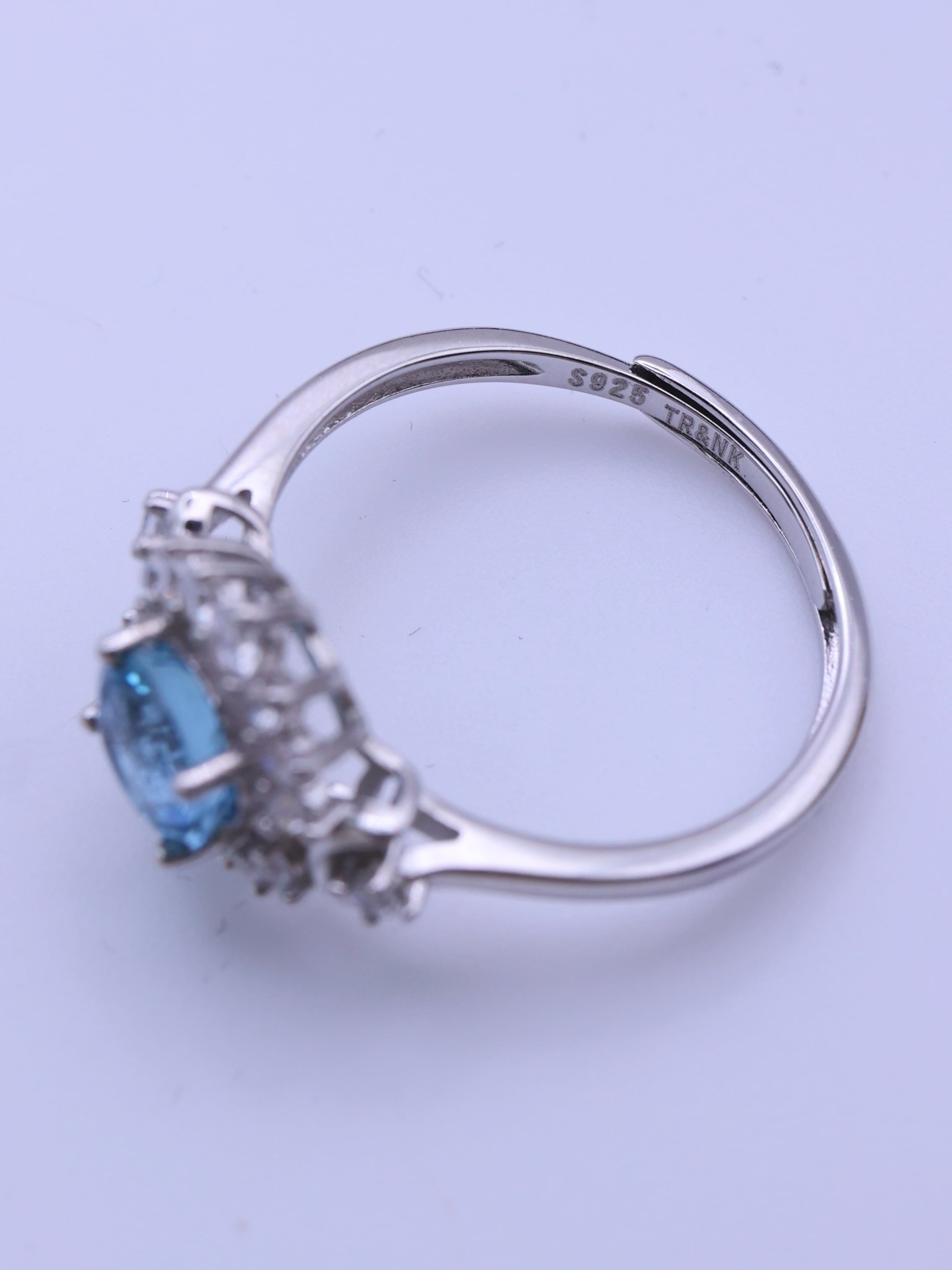 光を受けると、中心から静かに湧き上がるような青。明るい水色ではなく、どこか夜の気配を含んだ神秘的なトーンが、この石の最大の魅力です。