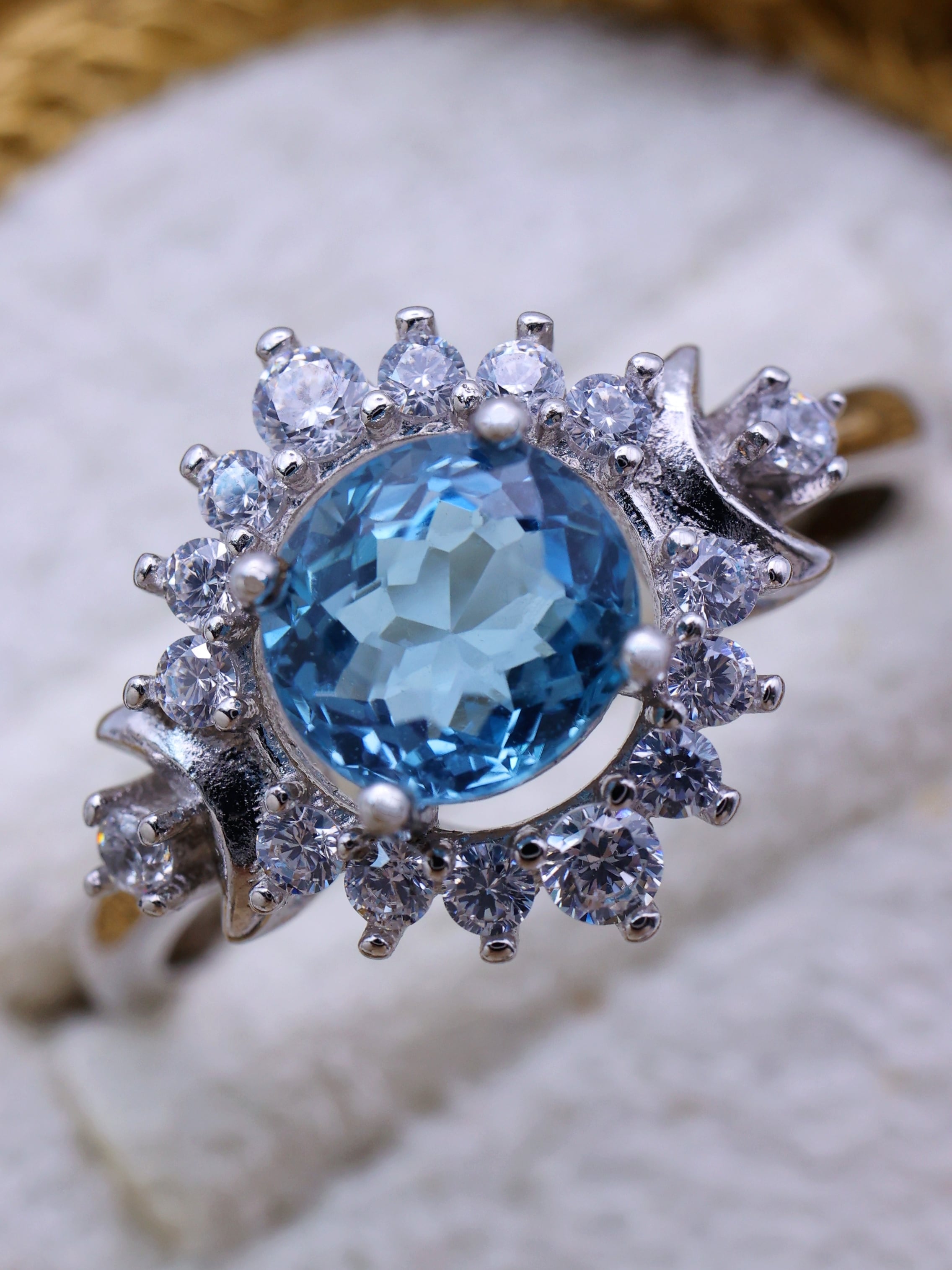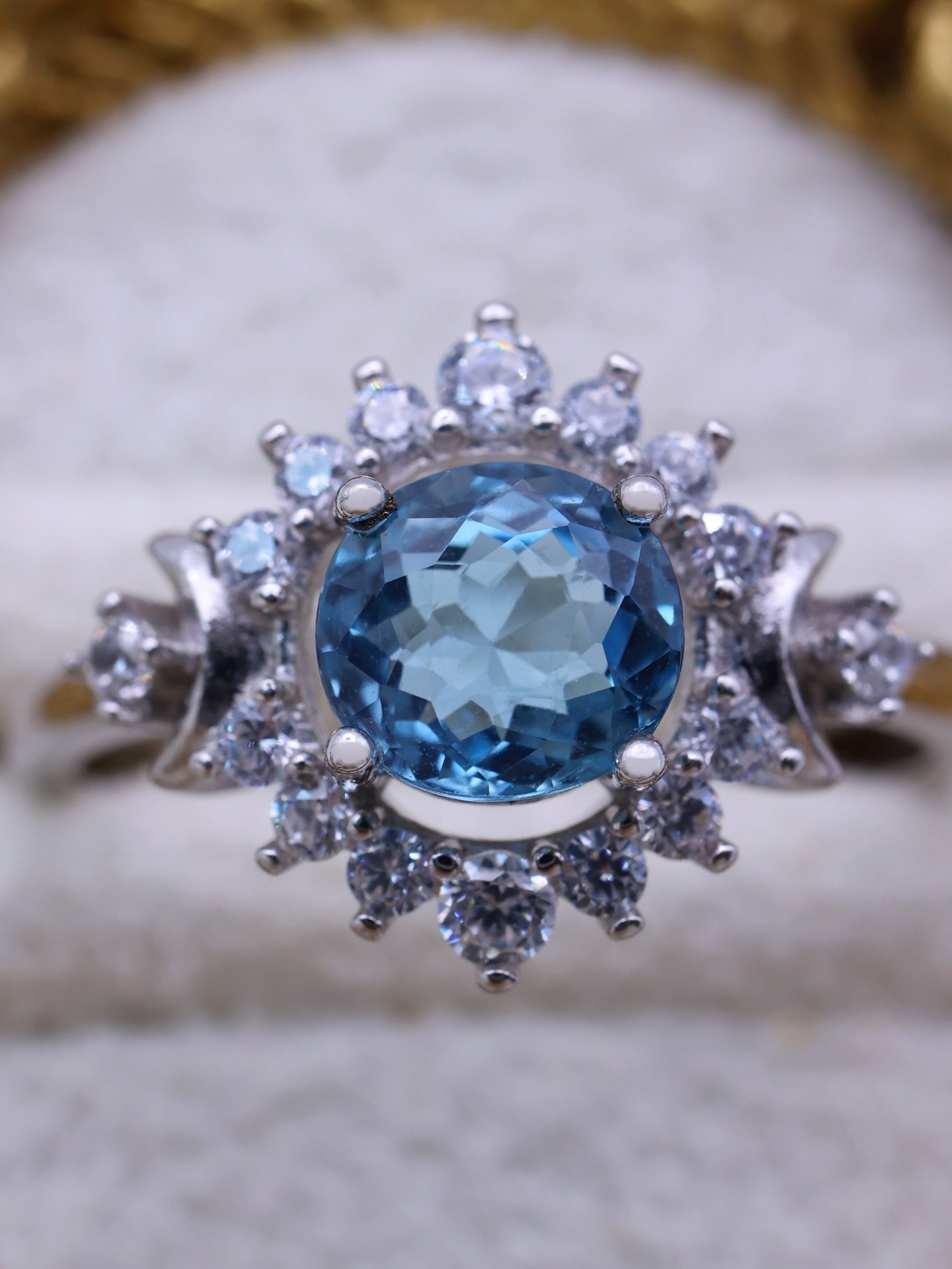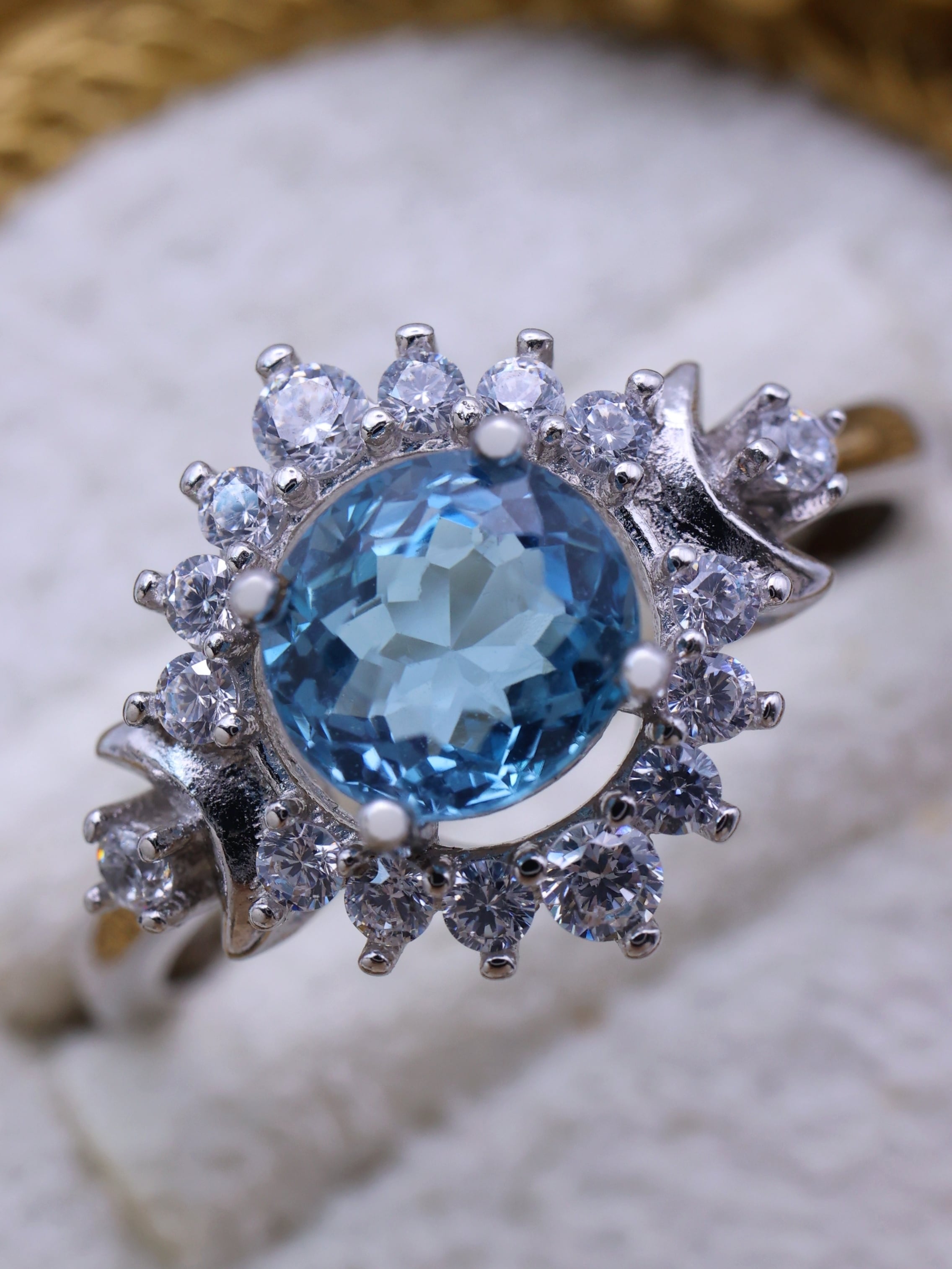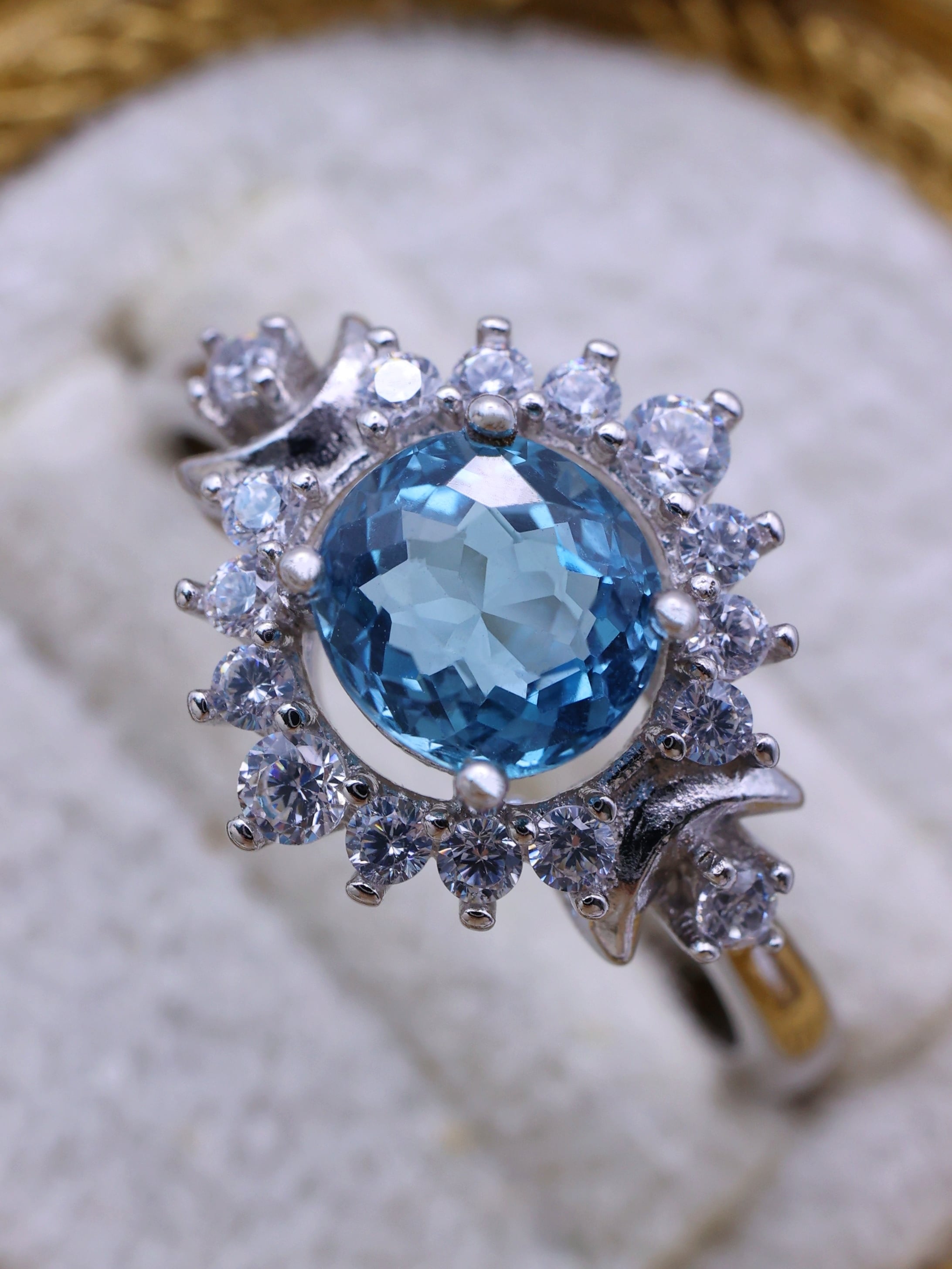 中央に満ちた月のように輝くサンタマリアアクアマリン。