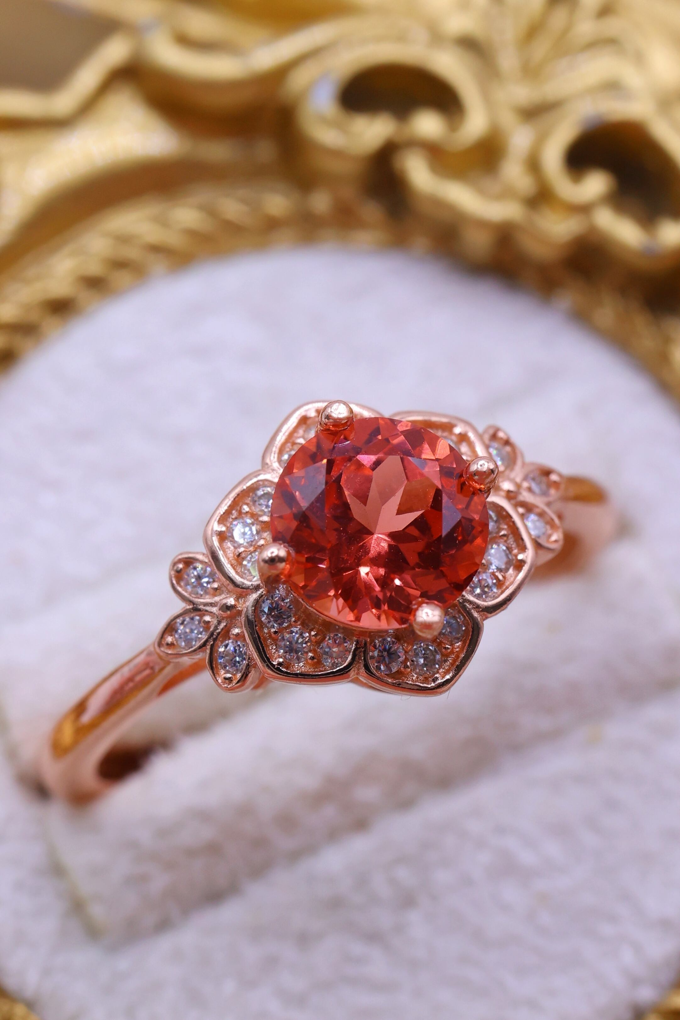 パパラチアサファイアは、サファイアの中でも特に希少とされる色彩を持ち、蓮の花の色に由来する、オレンジとピンクが溶け合った独特の色合いが魅力の宝石です。