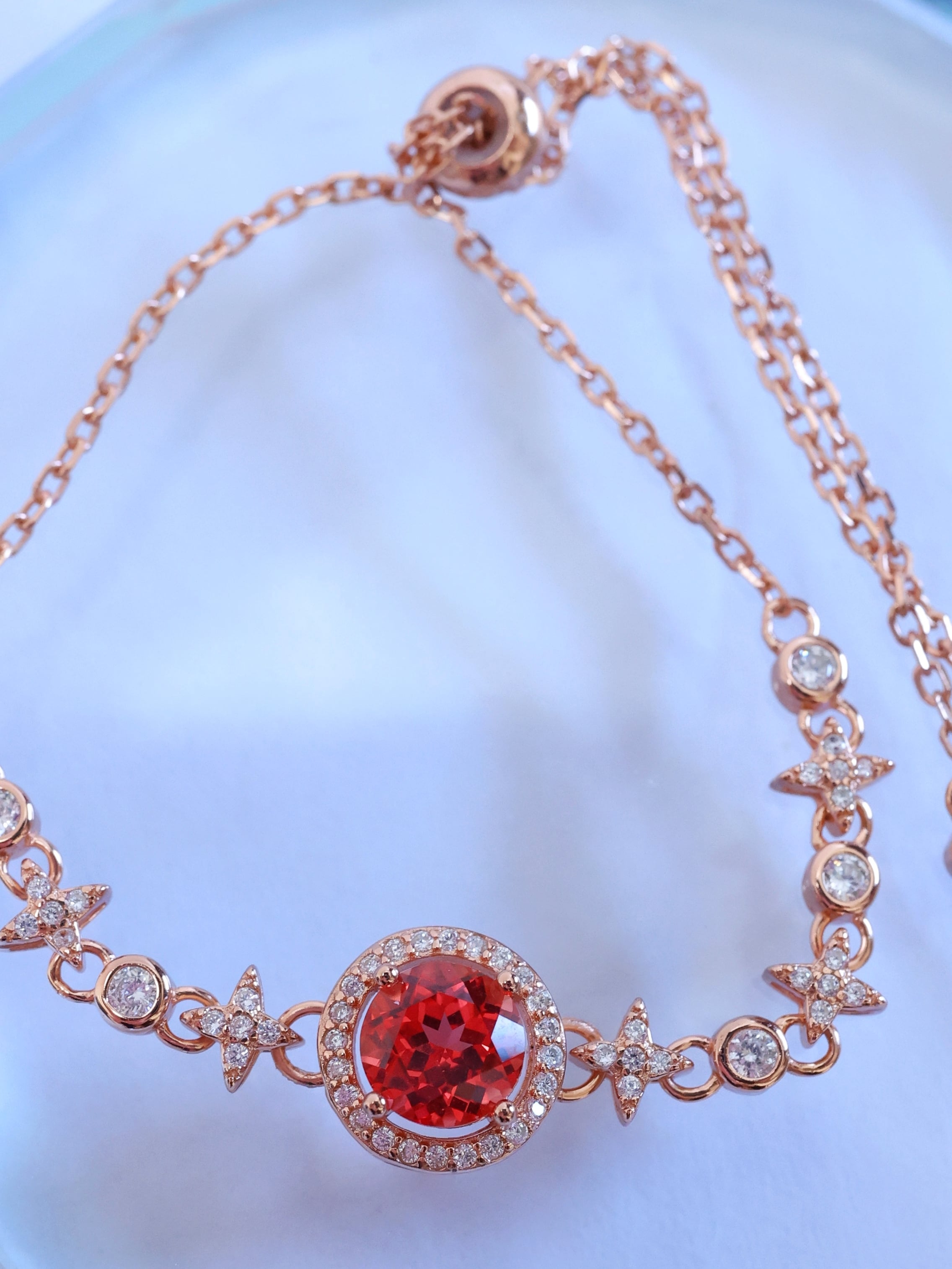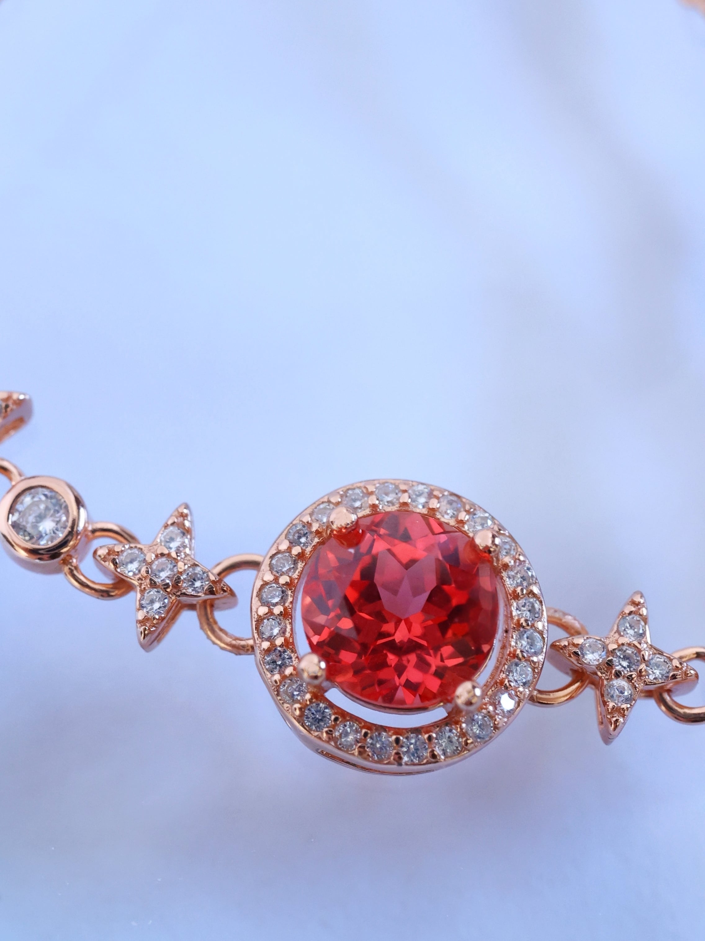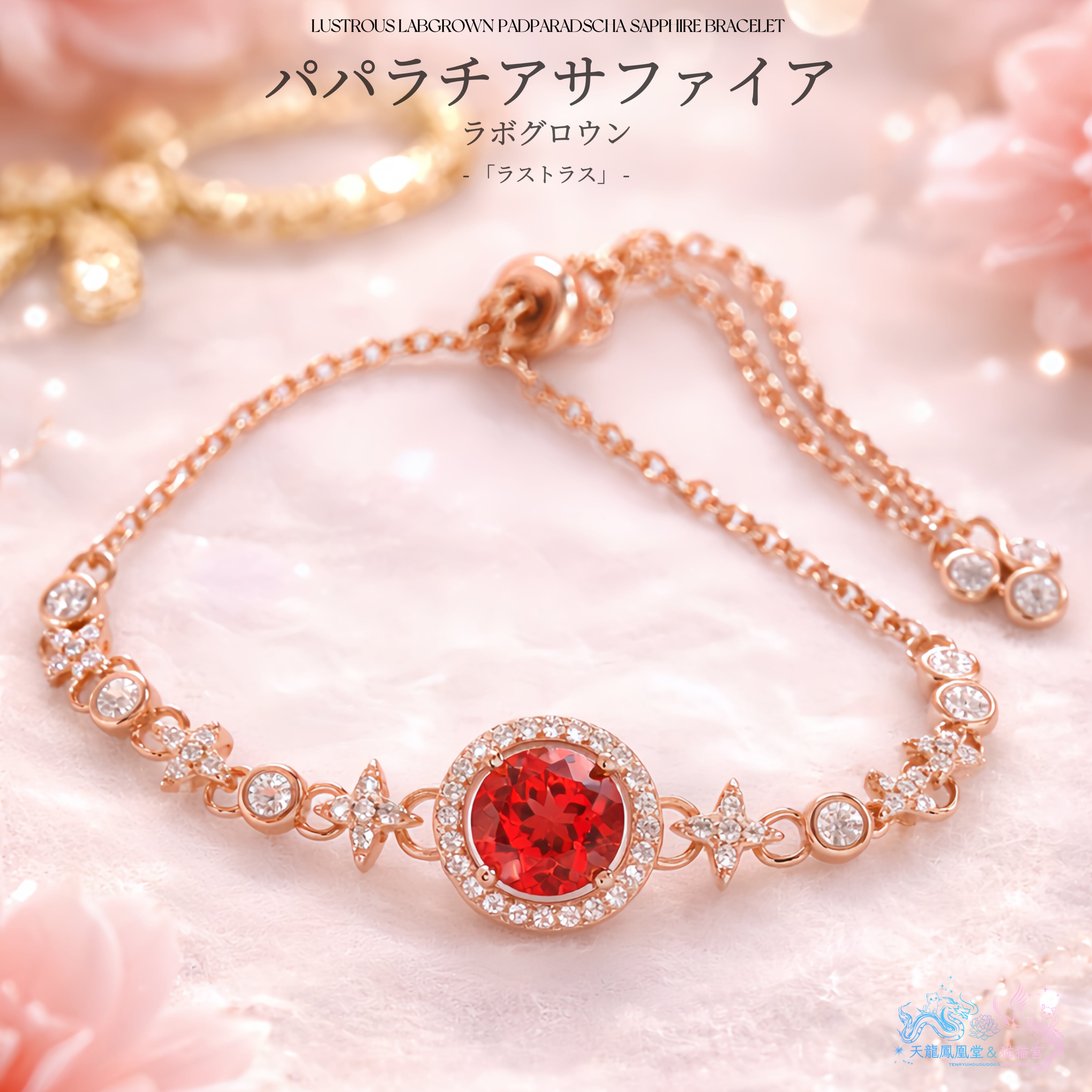 ロシアの宝石研究所より直送された、ラボグロウン・パパラチアサファイアを主石に使用したブレスレットです。