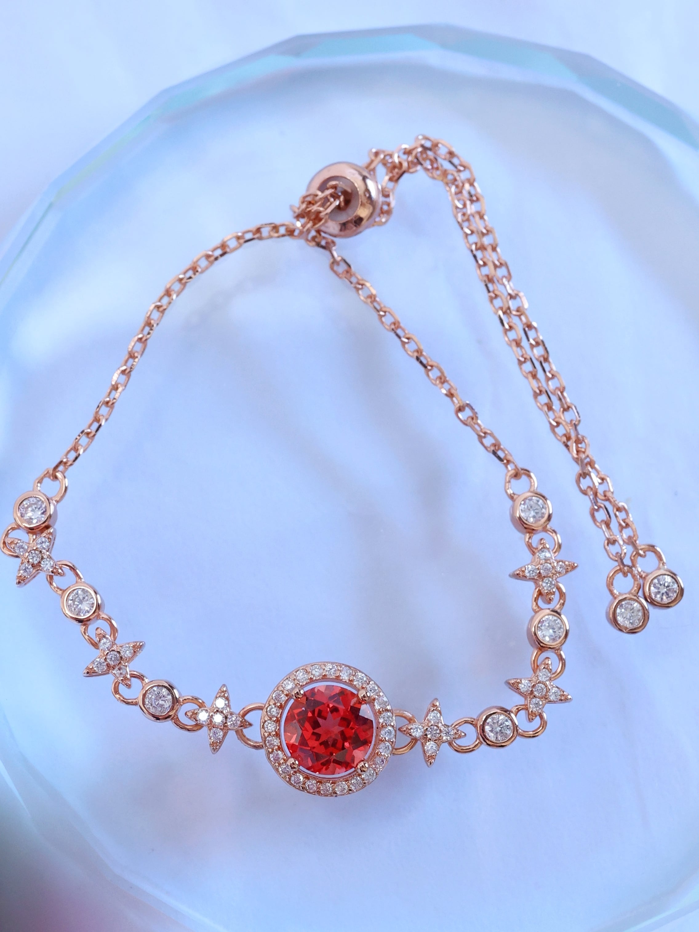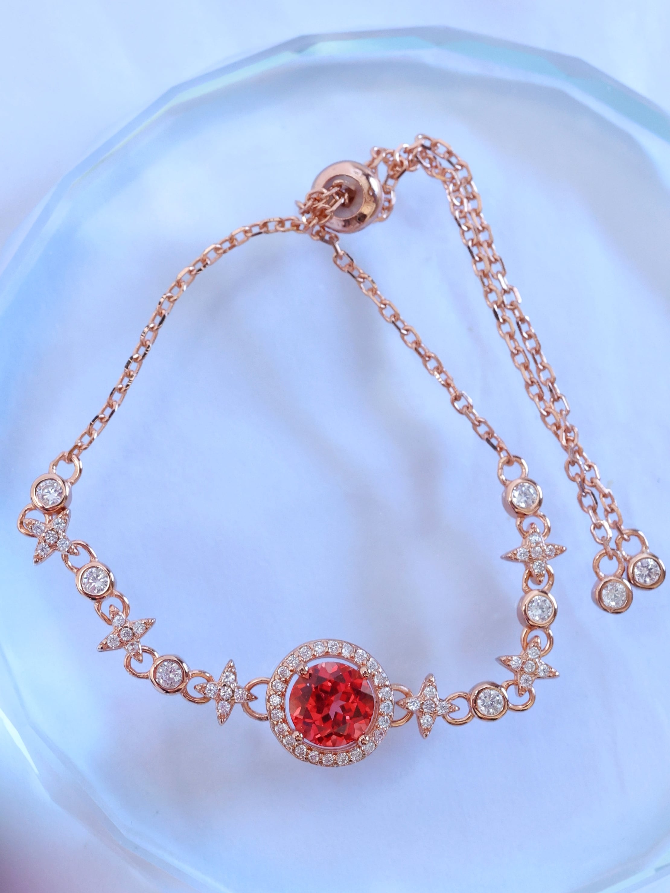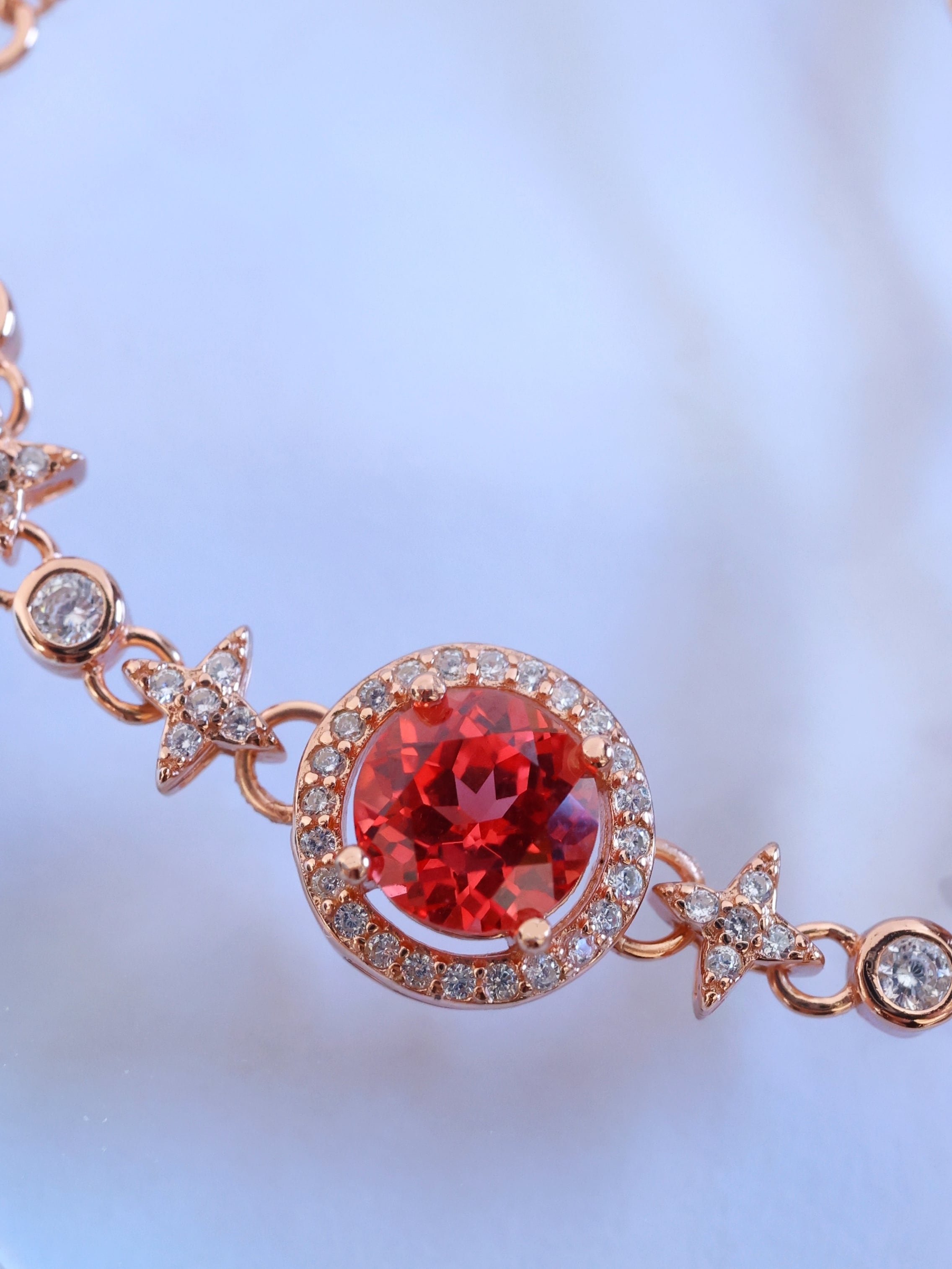 ロシアの宝石研究所より直送された、ラボグロウン・パパラチアサファイアを主石に使用したブレスレットです。
