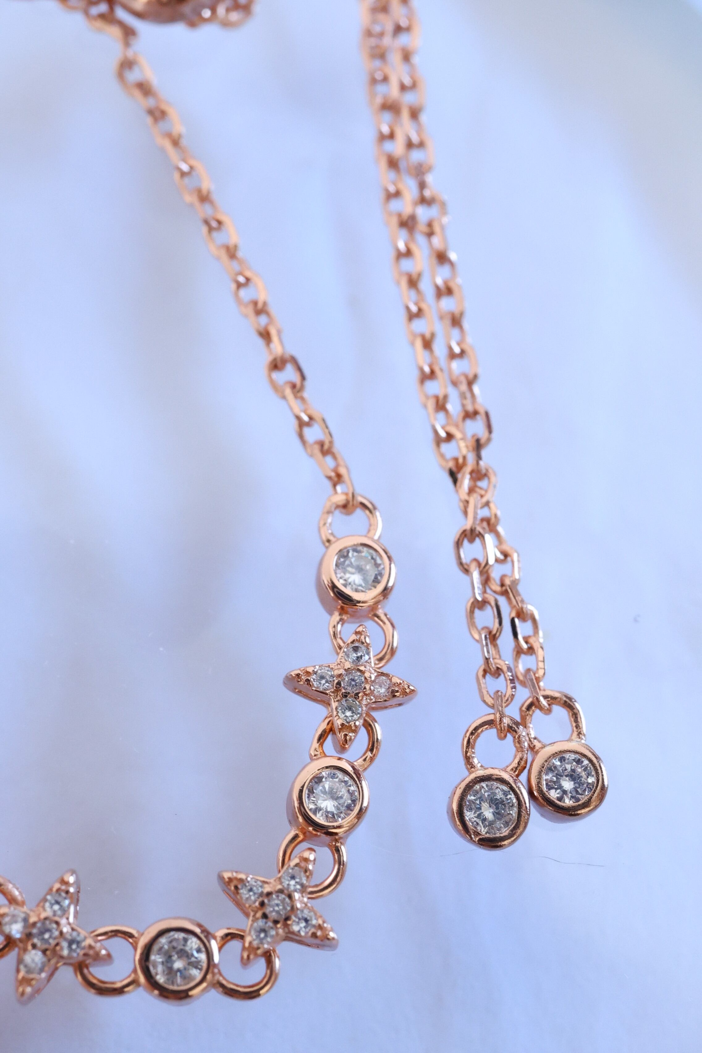 エンド部分のチャームにはキュービックジルコニアを採用。