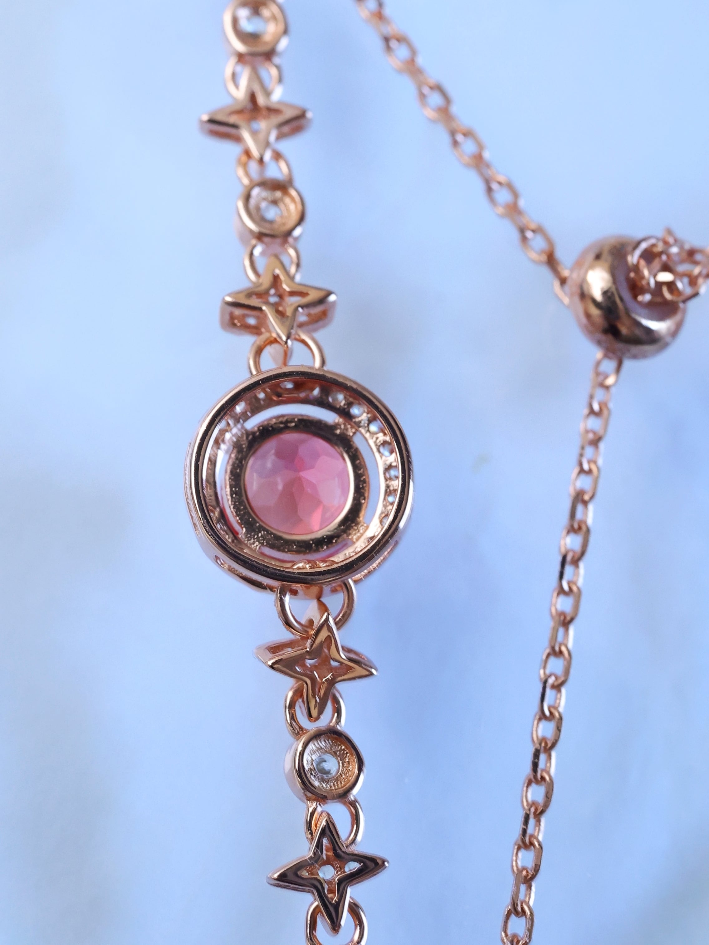 ブレスレット全体には、夜空に瞬く星々をイメージしたモチーフを連ねています。