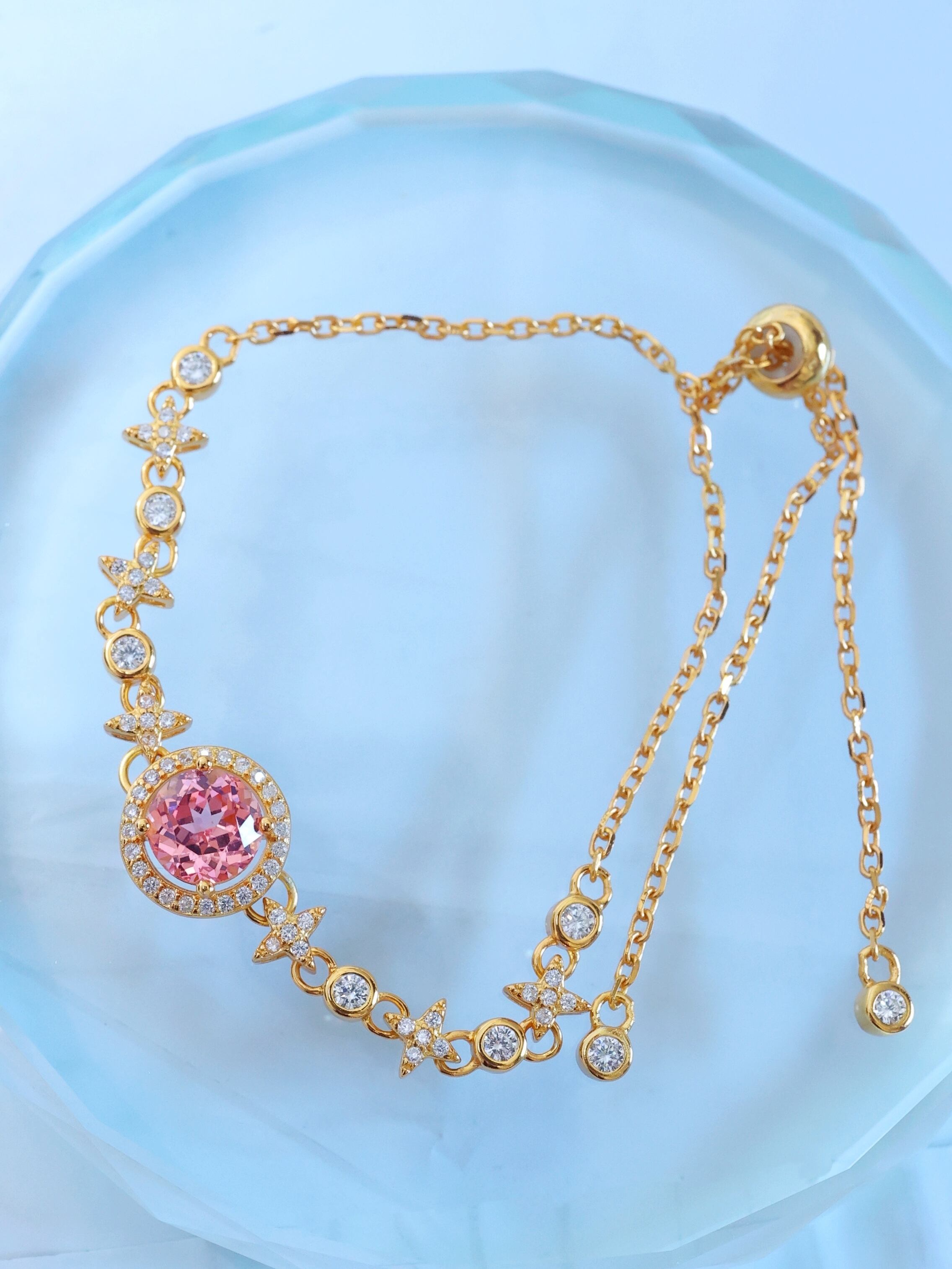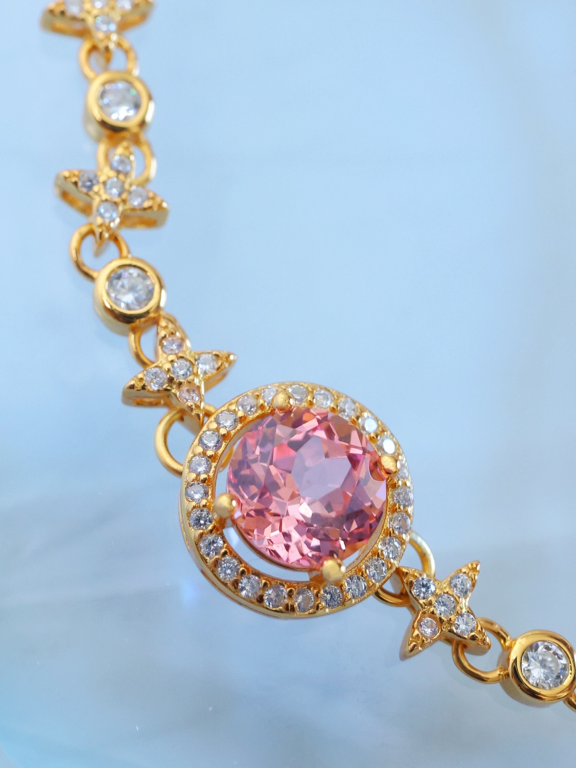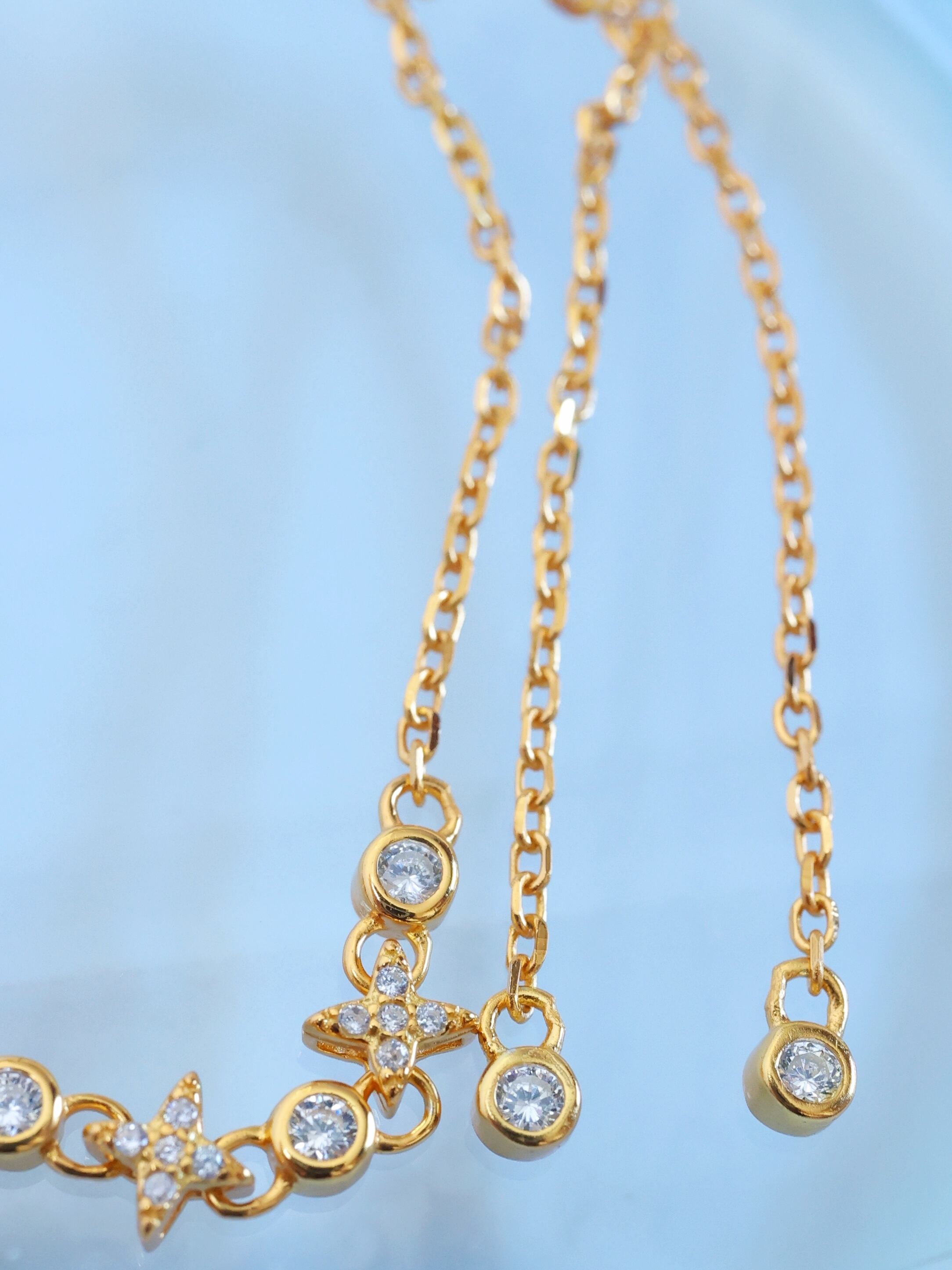 ブレスレット全体には、夜空に瞬く星々をイメージしたモチーフを連ねています。