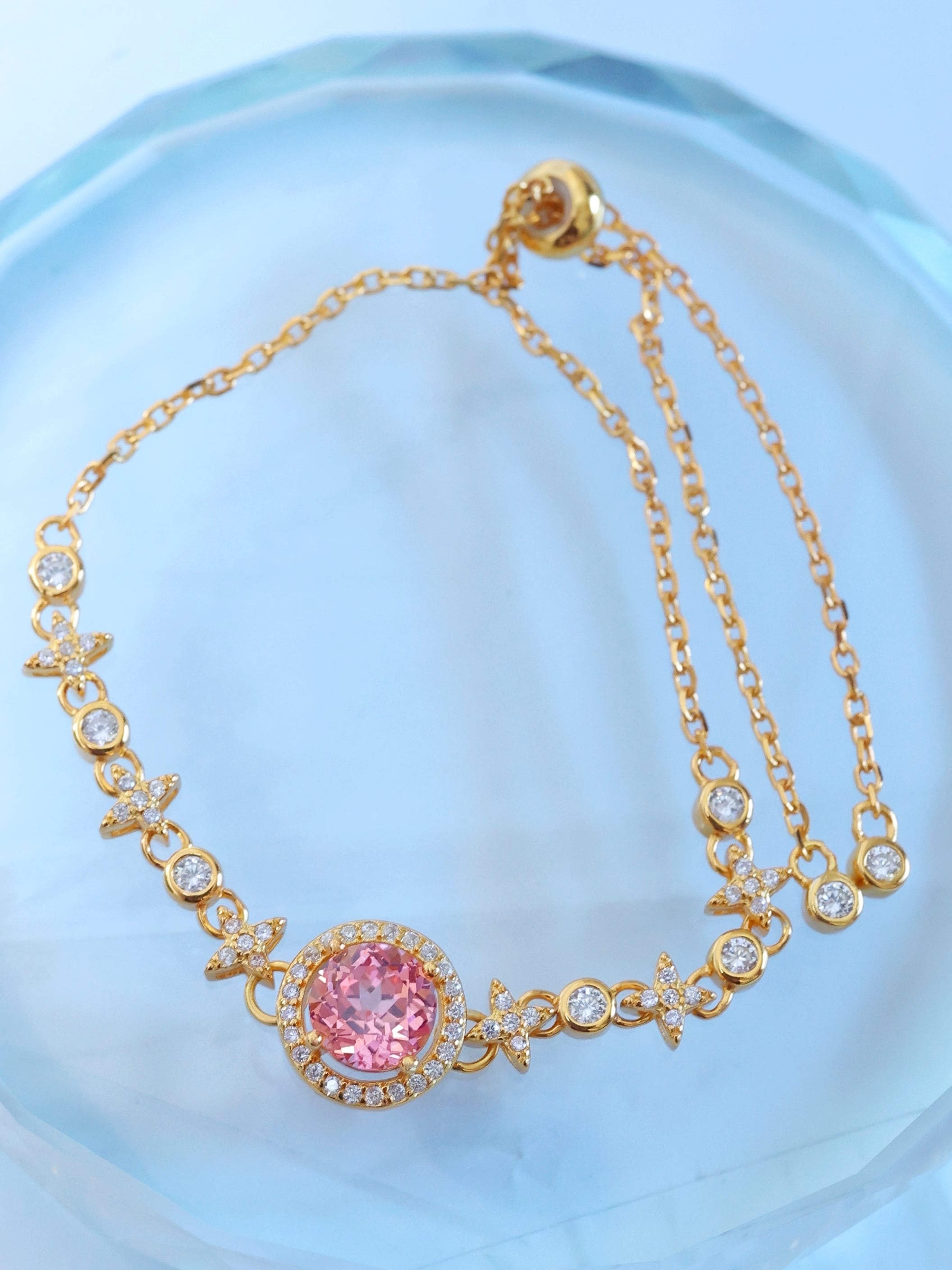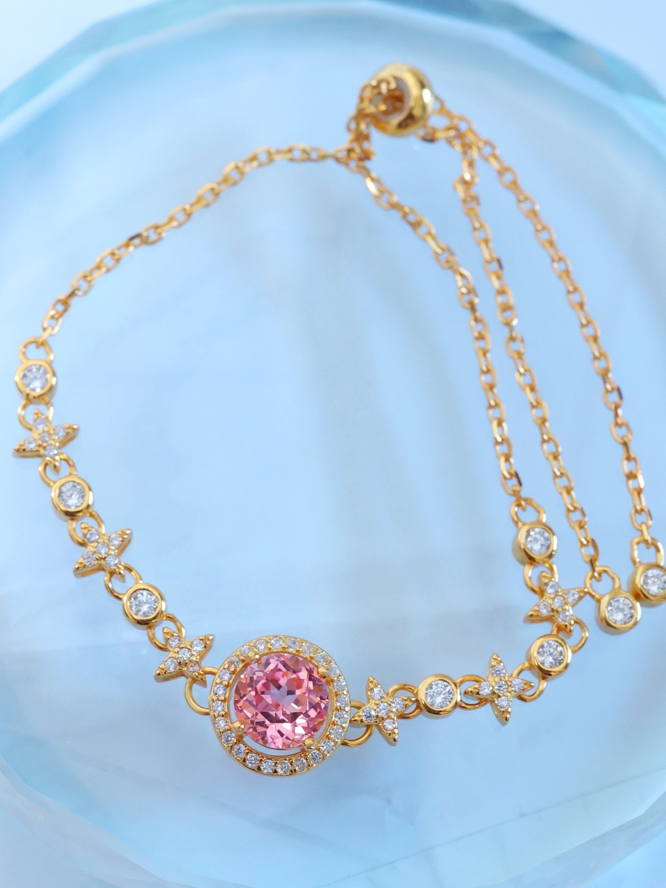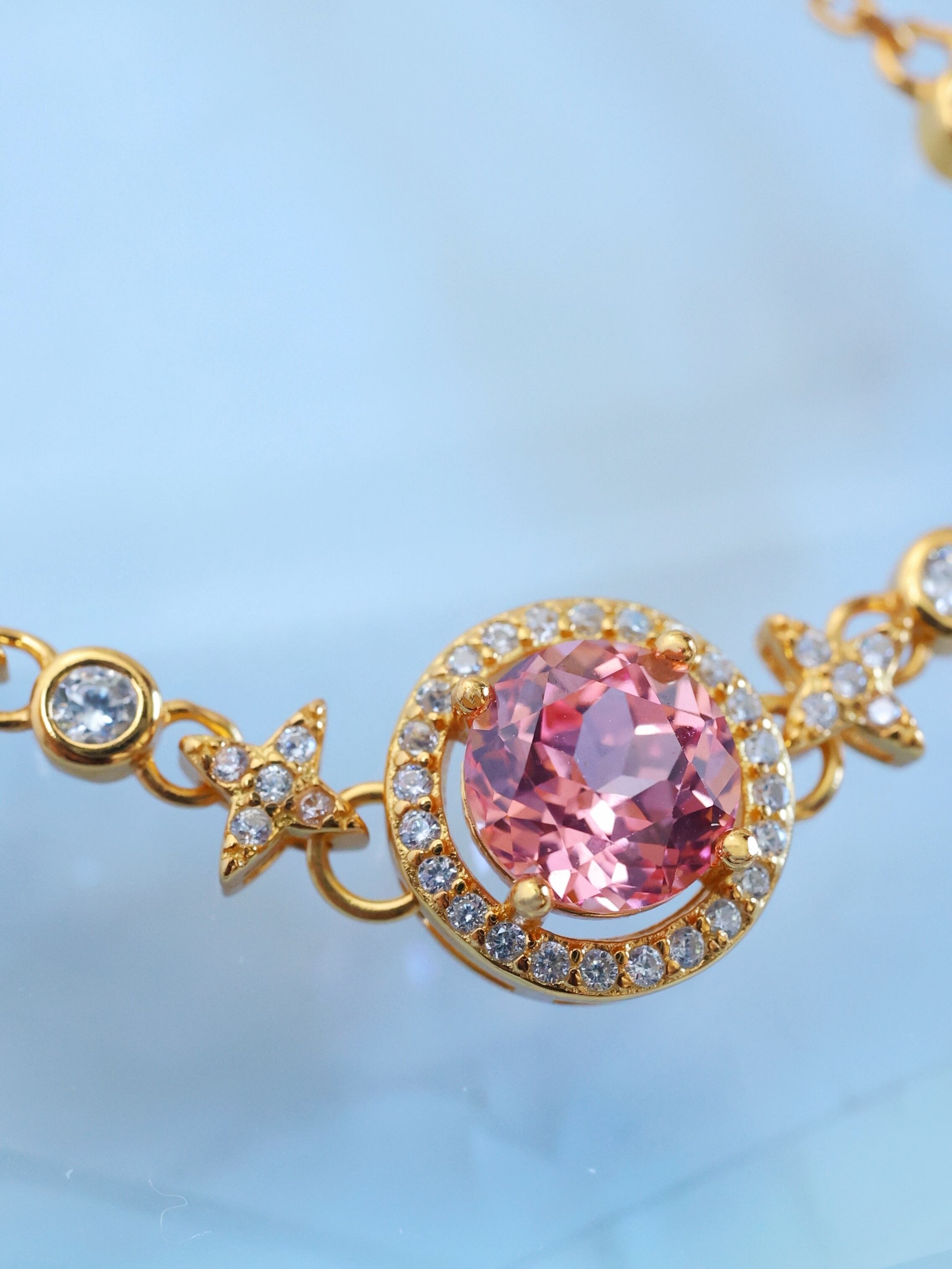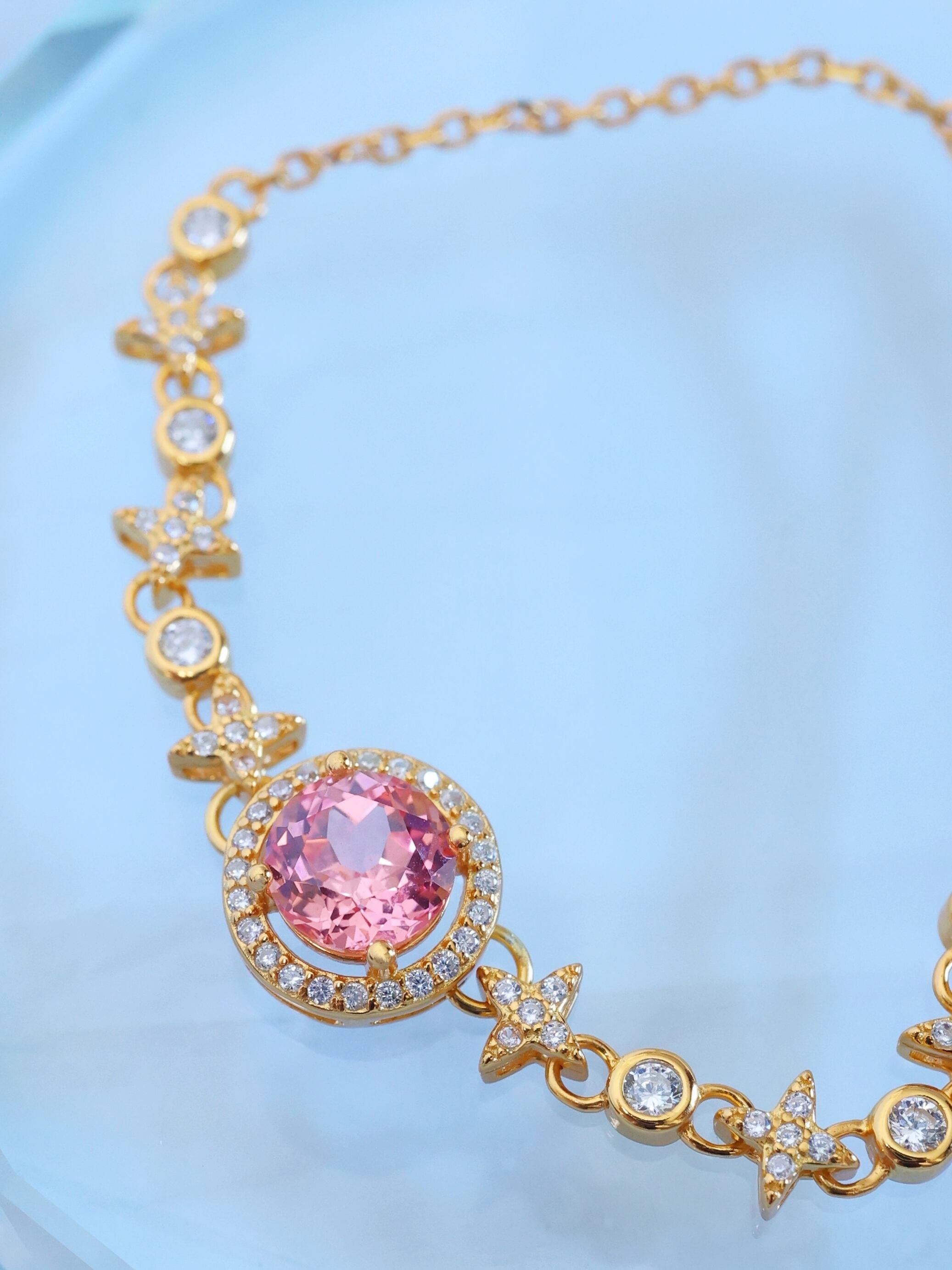 ブレスレット全体には、夜空に瞬く星々をイメージしたモチーフを連ねています。