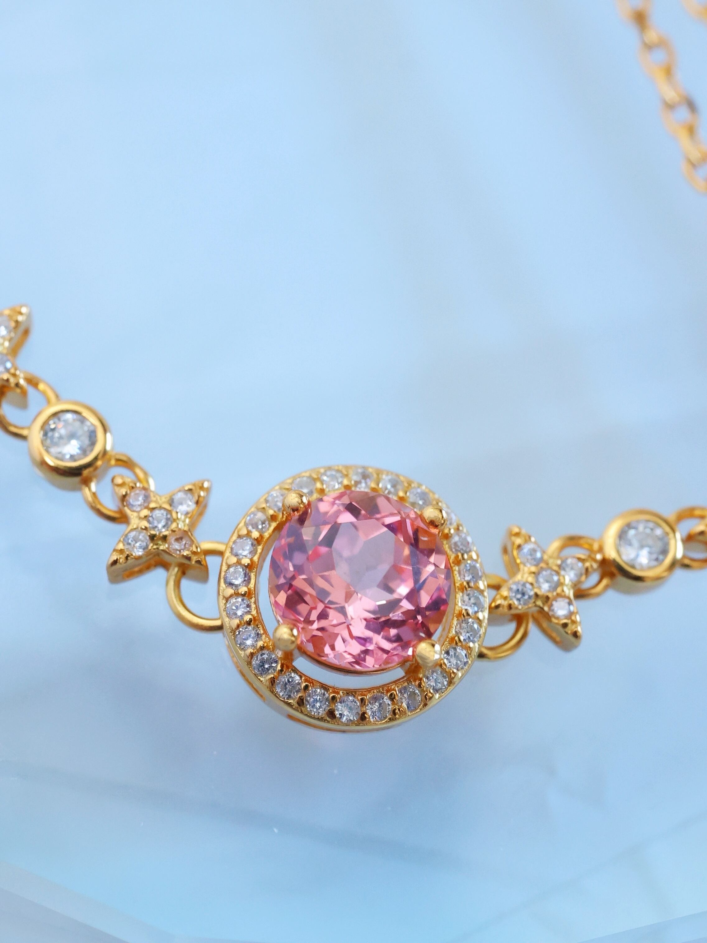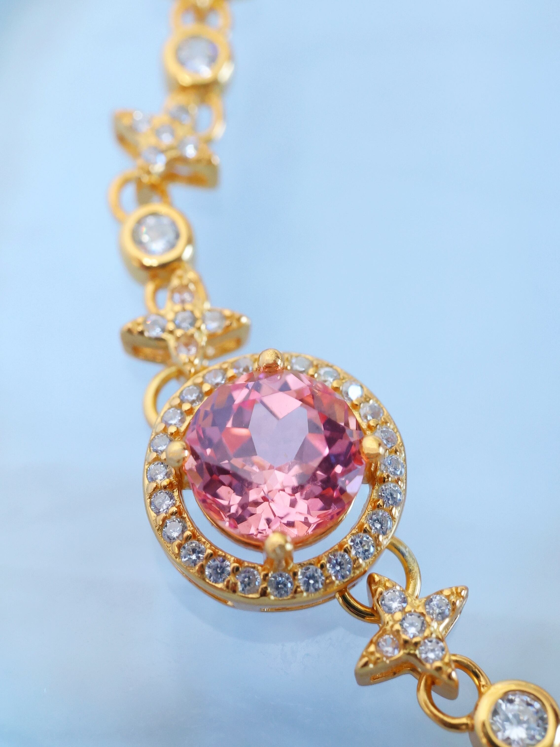 ロシアの宝石研究所より直送された、ラボグロウン・パパラチアサファイアを主石に使用したブレスレットです。