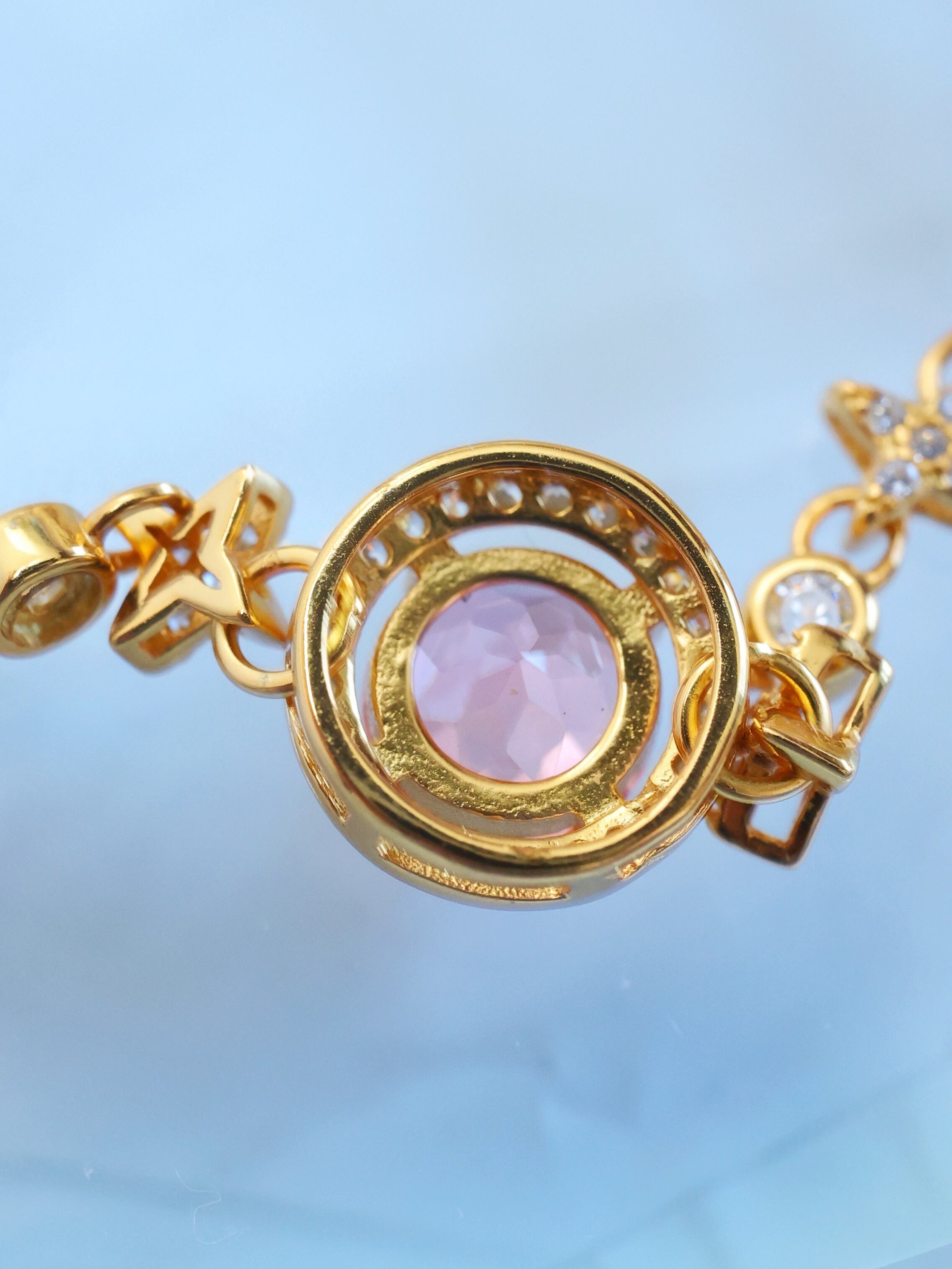 主石の左右はチェーンへ直接接続するのではなく、環を介して星モチーフと接続する構造へ調整しています。