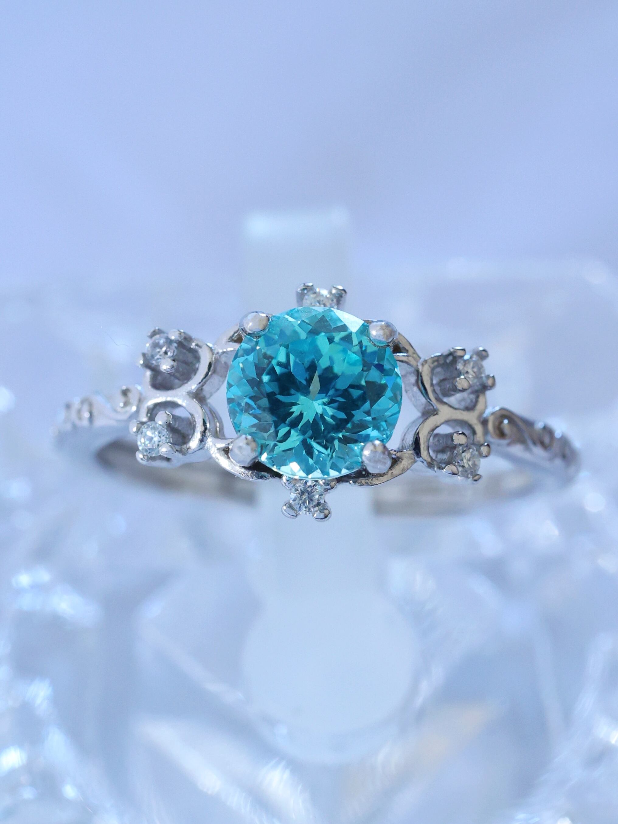 6mmの大きさが、指元でまるで南国の海のような鮮やかさを放ちます。