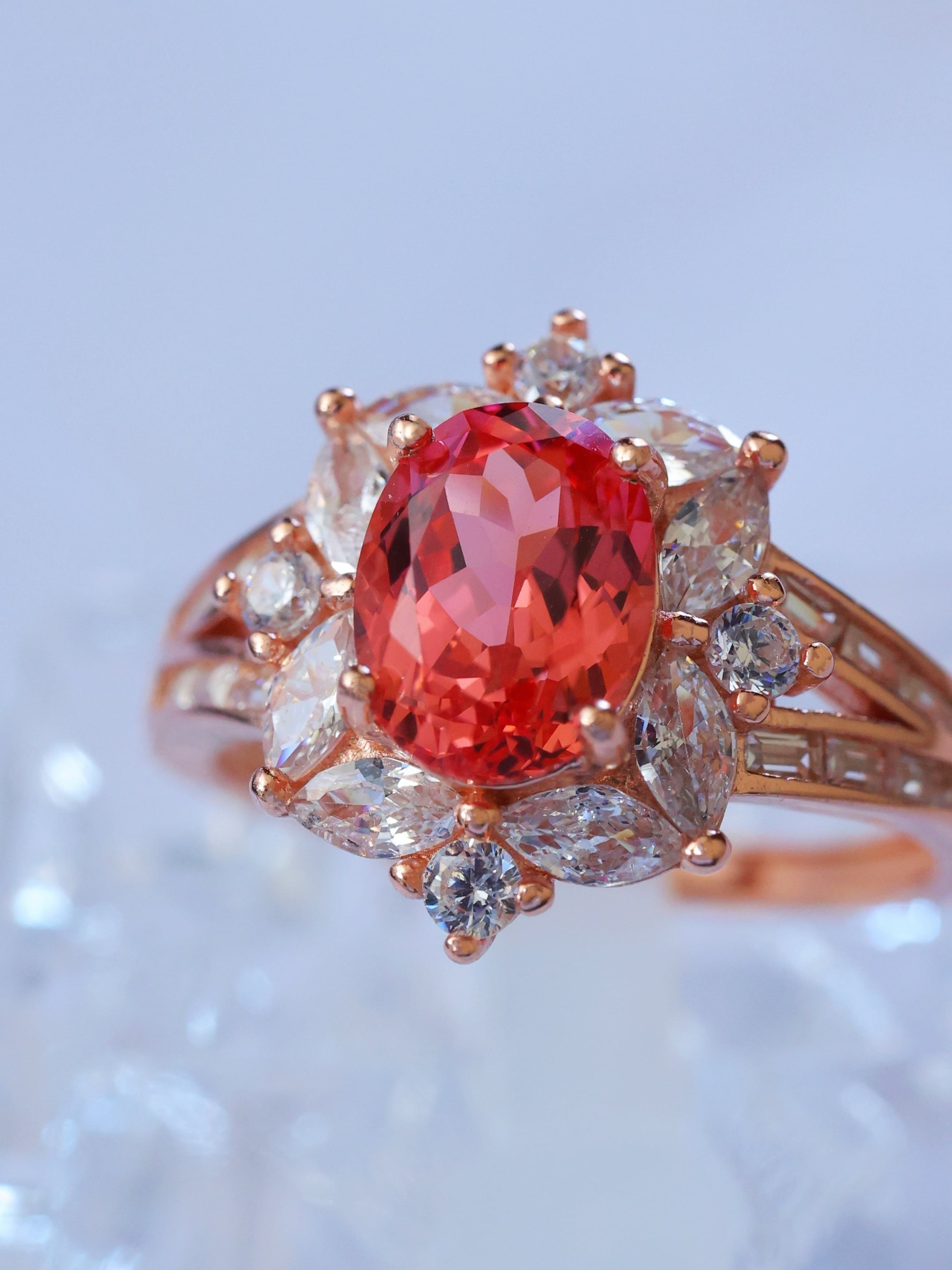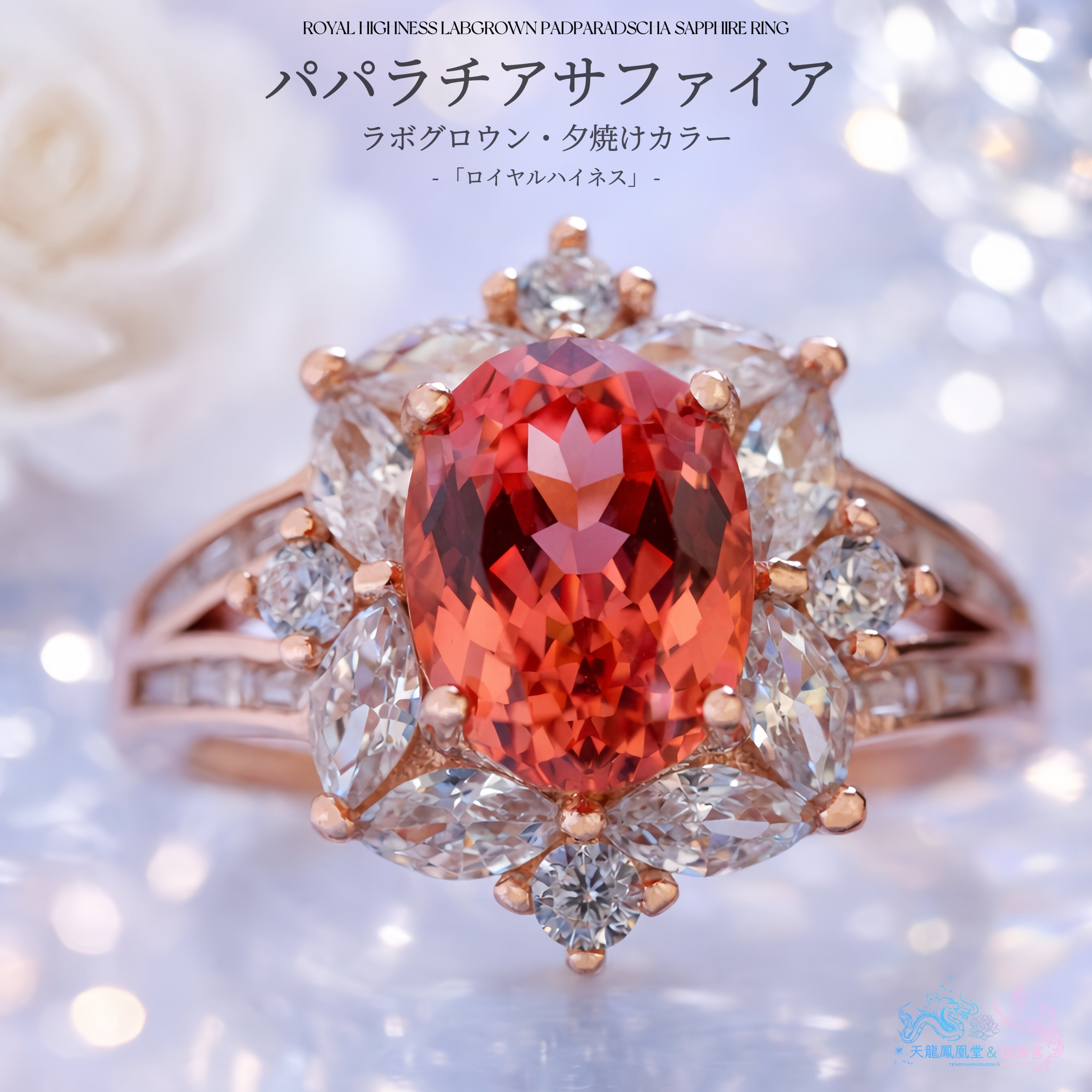 【ロイヤルハイネス】パパラチアサファイア ラボグロウン リング