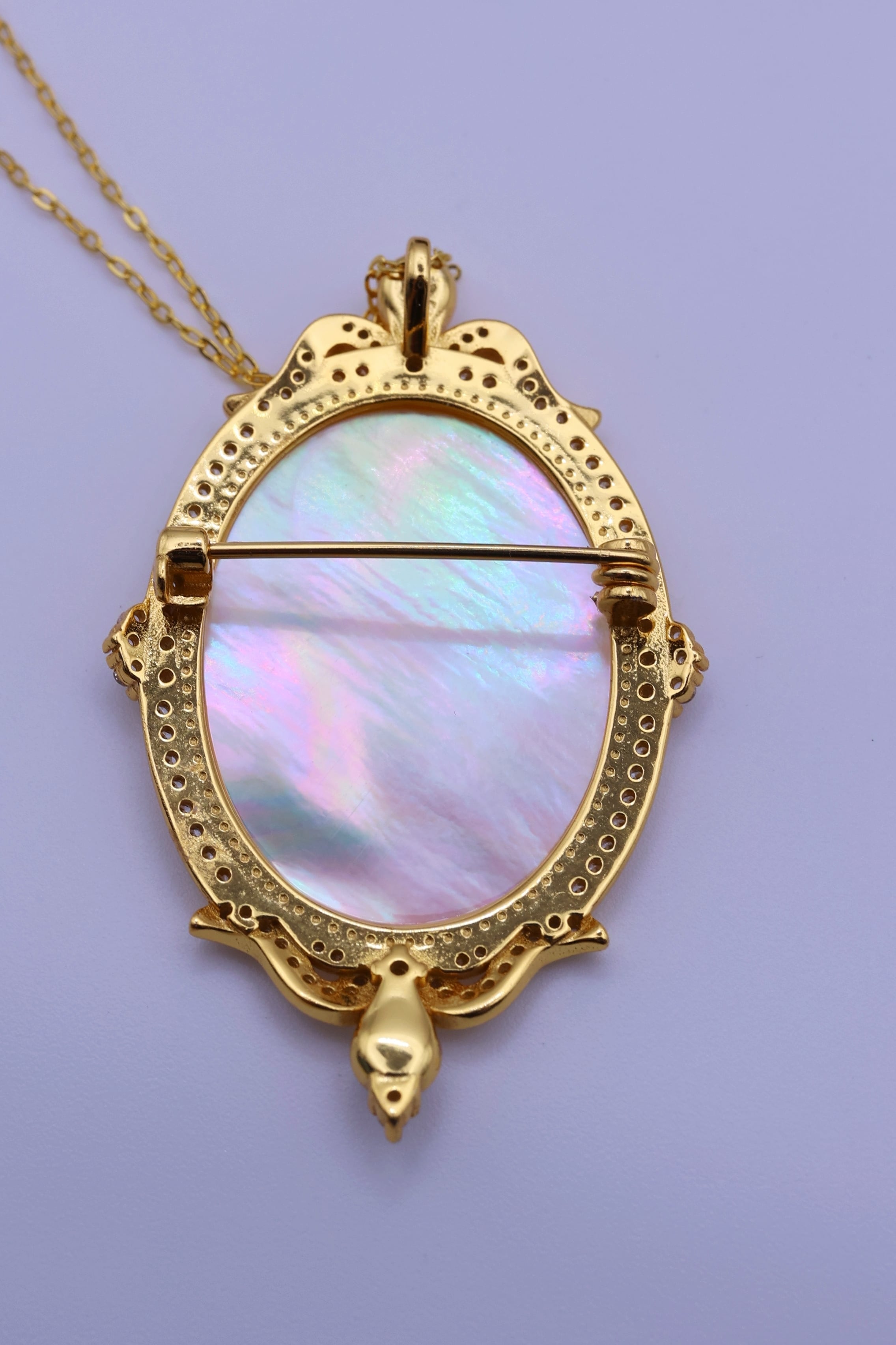 本作は、オーストラリア産の白蝶貝(マザーオブパール)を使用した、幻想的な猫モチーフのペンダントです。