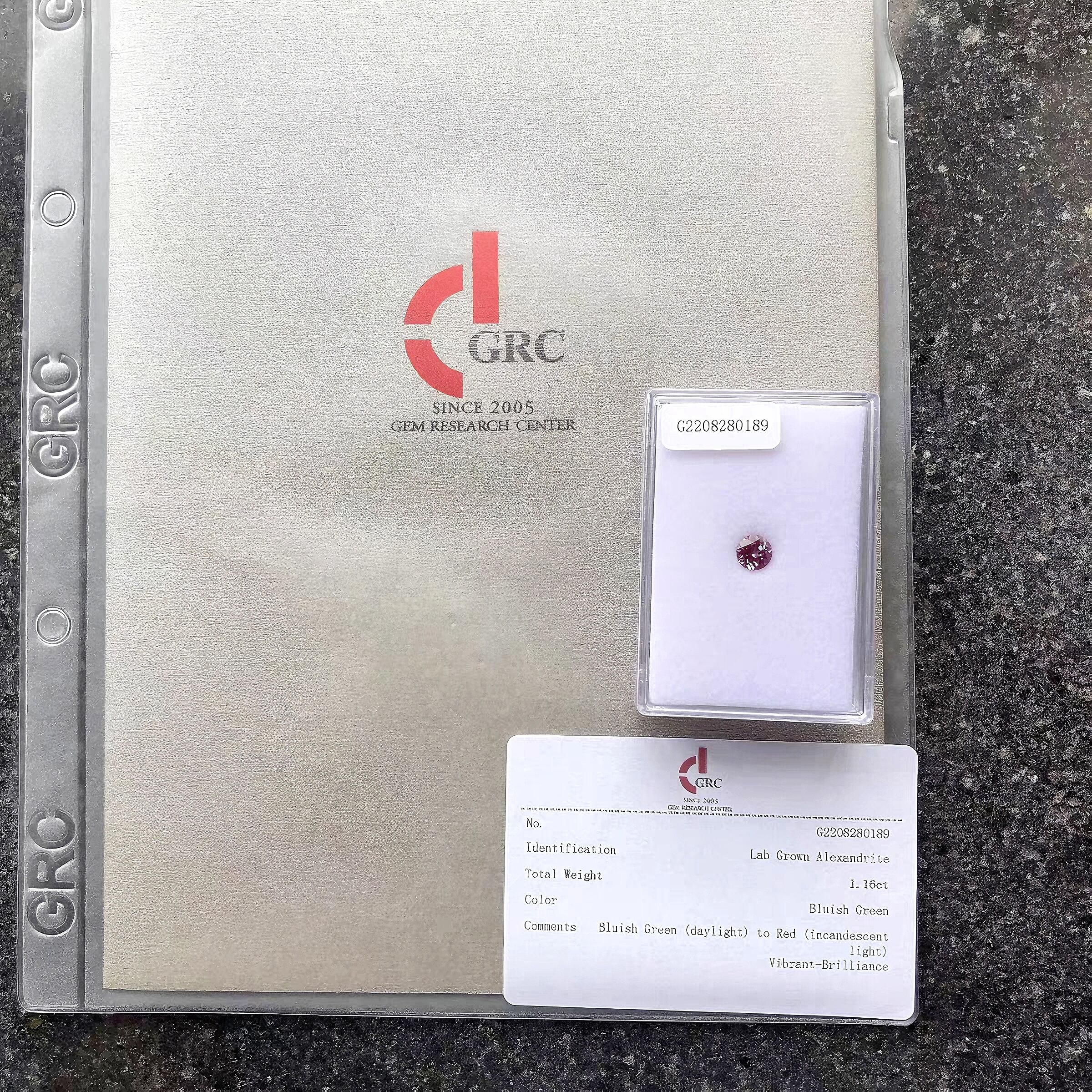自然界では非常に希少な宝石、アレキサンドライト。その美しさと神秘的な色の変化を、ラボグロウン(人工育成)という形で蘇らせた一品です。夕暮れの柔らかな光の中では紫色の輝きを放ち、日中の明るい光の下では鮮やかな緑へと移ろう、その独特の色変化は息をのむ美しさを誇ります。