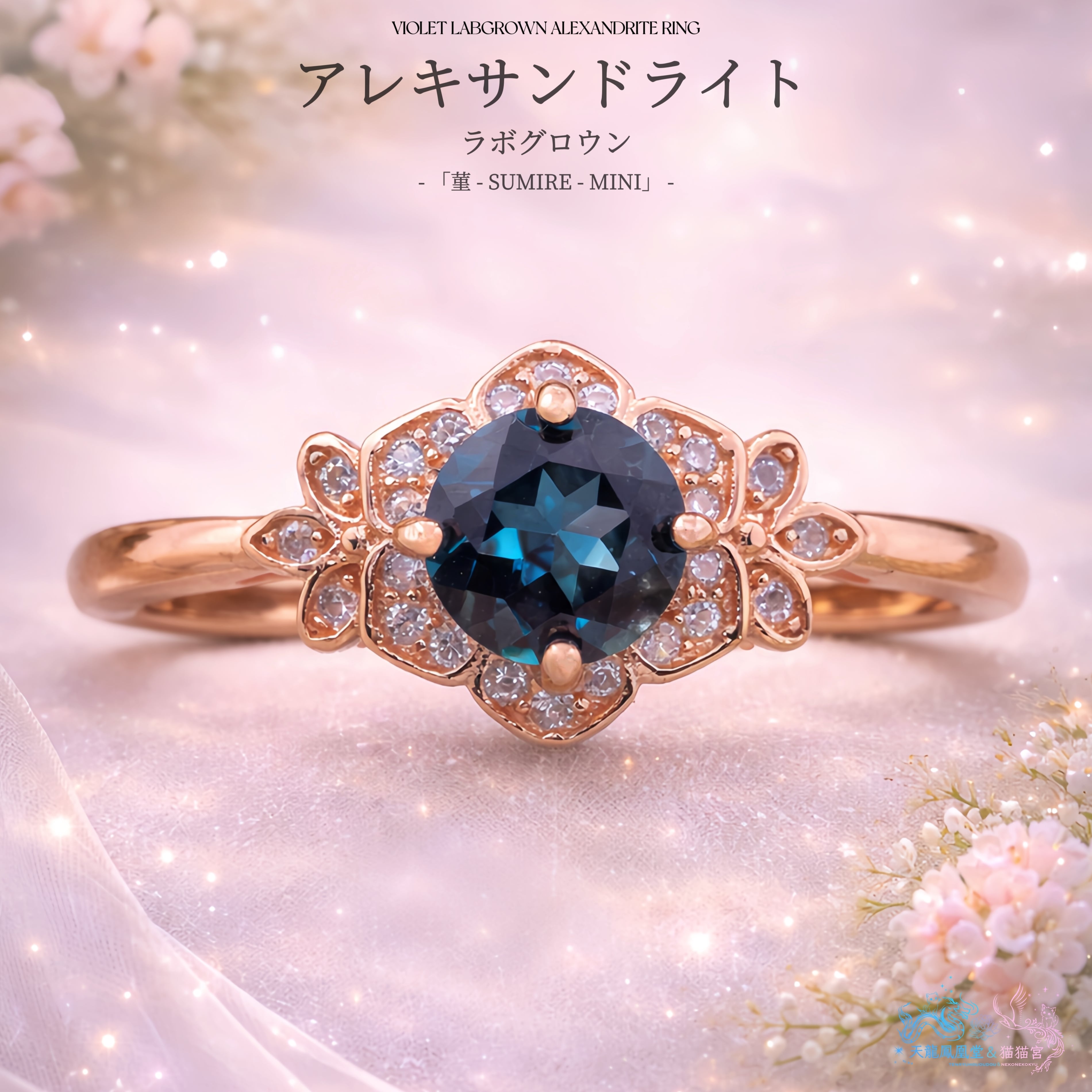 【当店オリジナル】【菫 - SUMIRE - MINI】アレキサンドライト ラボグロウン シルバー S925 花 リング