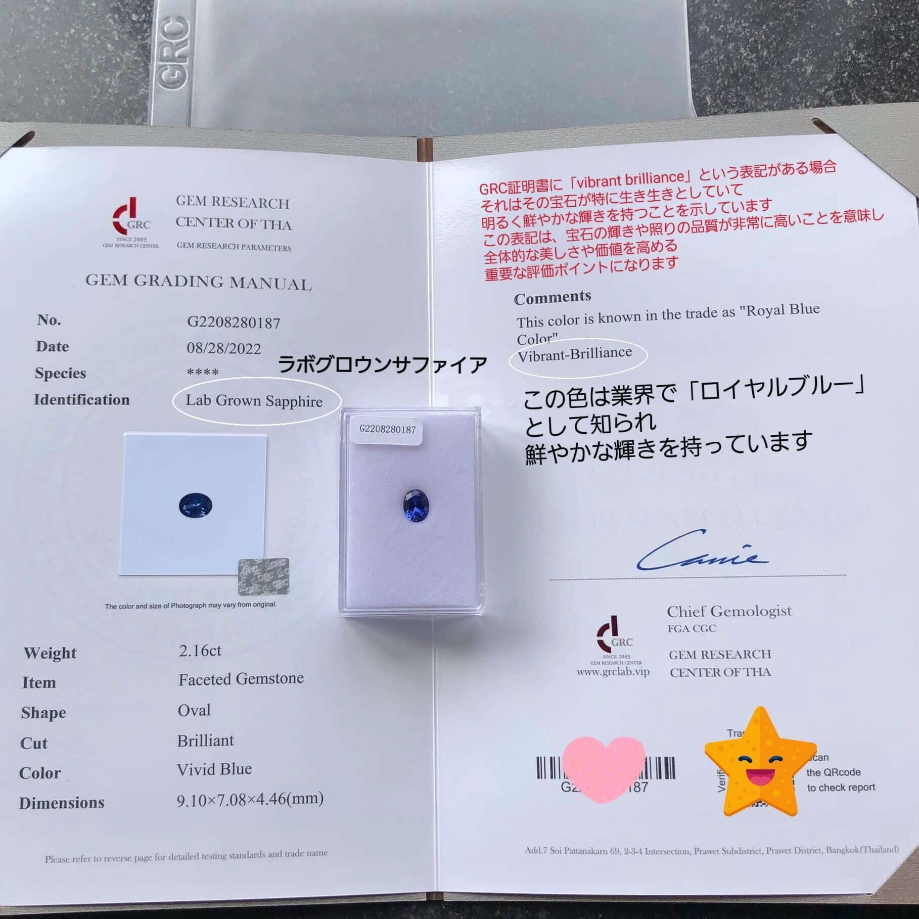 そのため、鑑別書上の表記はすべて「合成サファイア」「合成ルビー」などとなります。