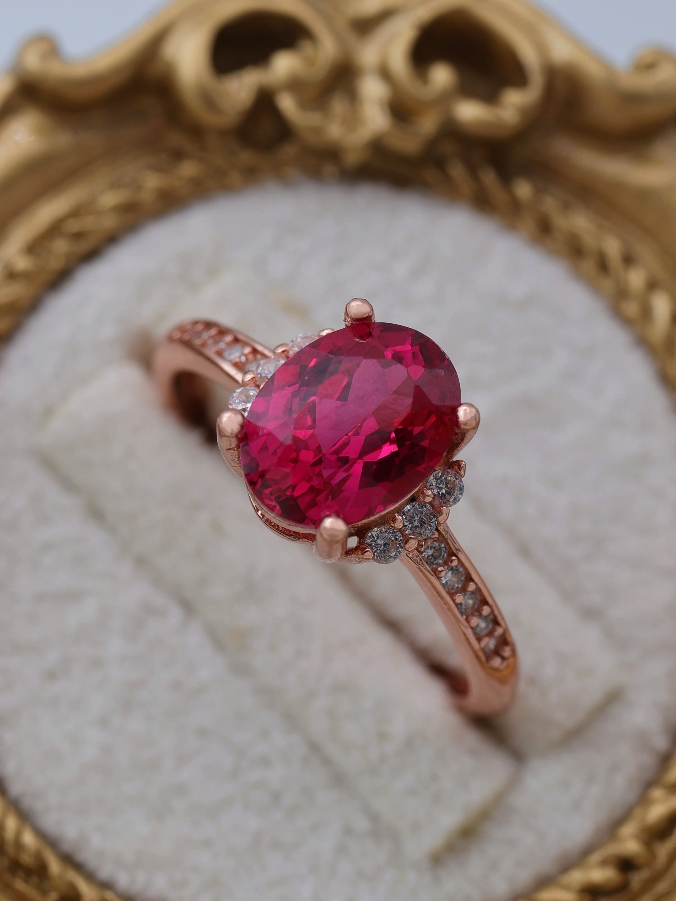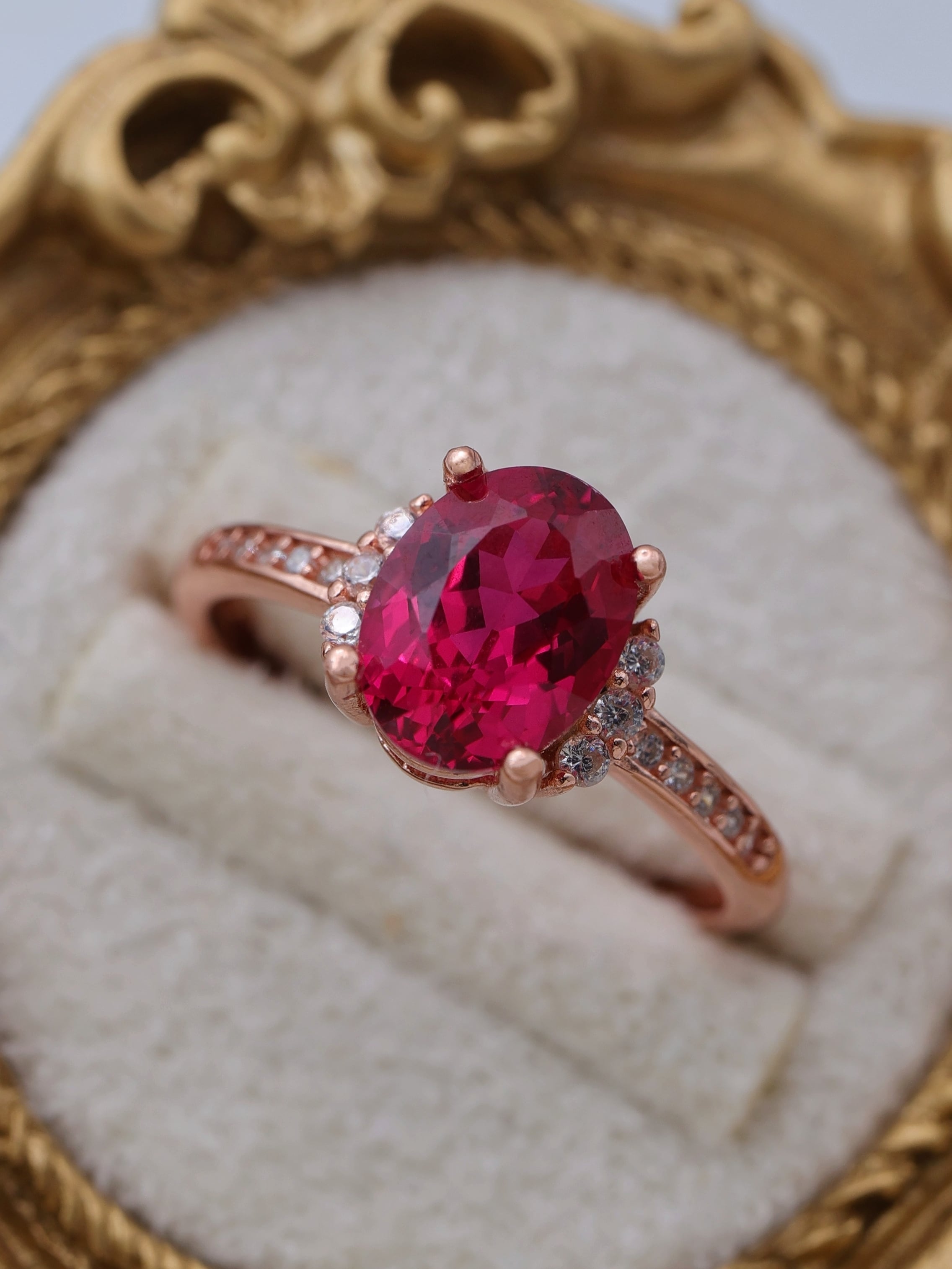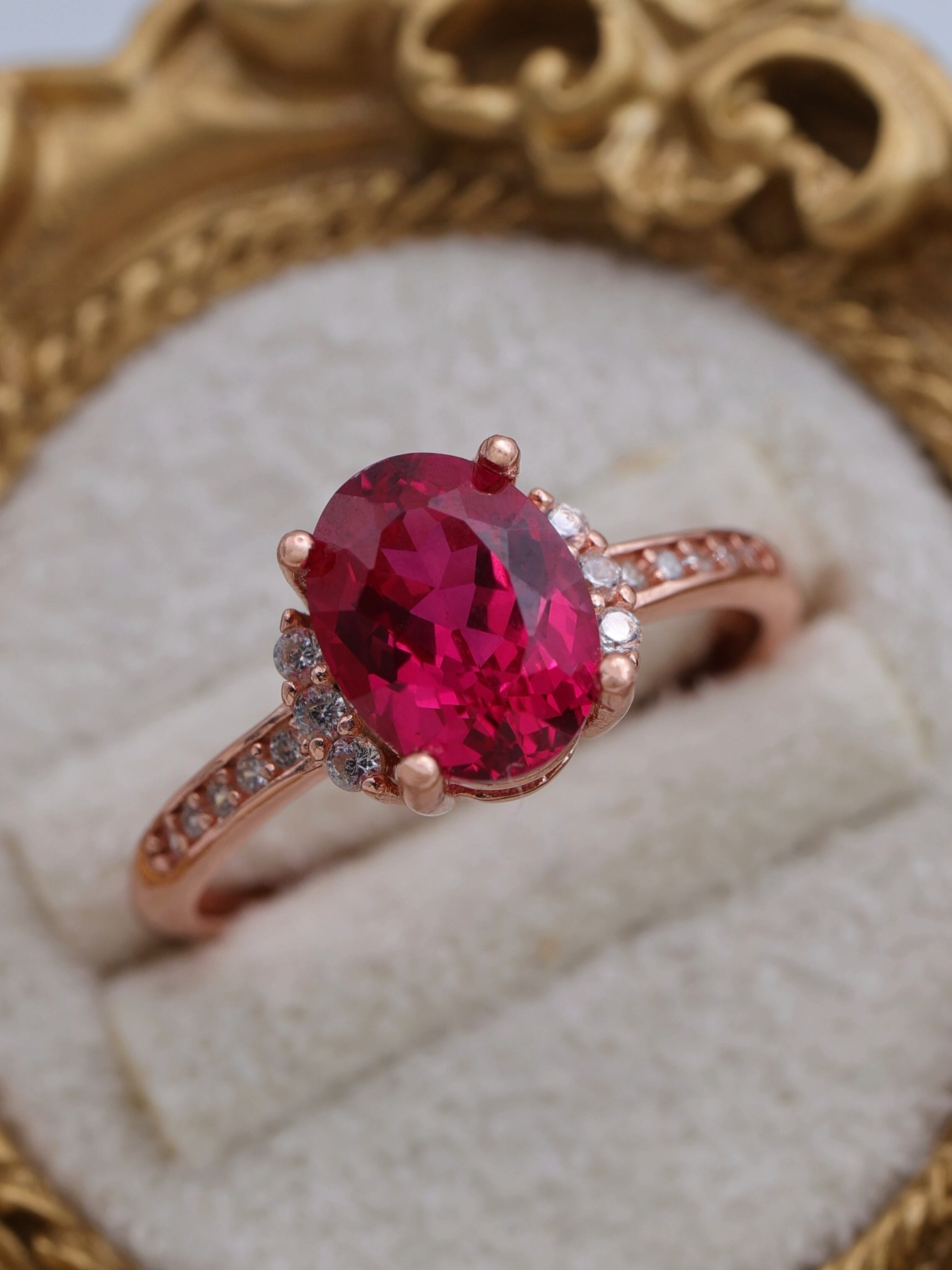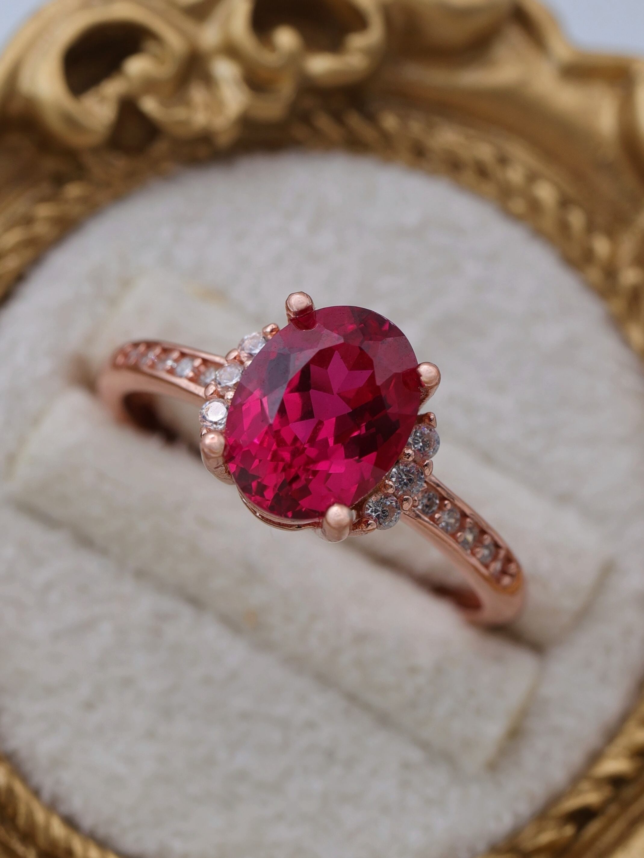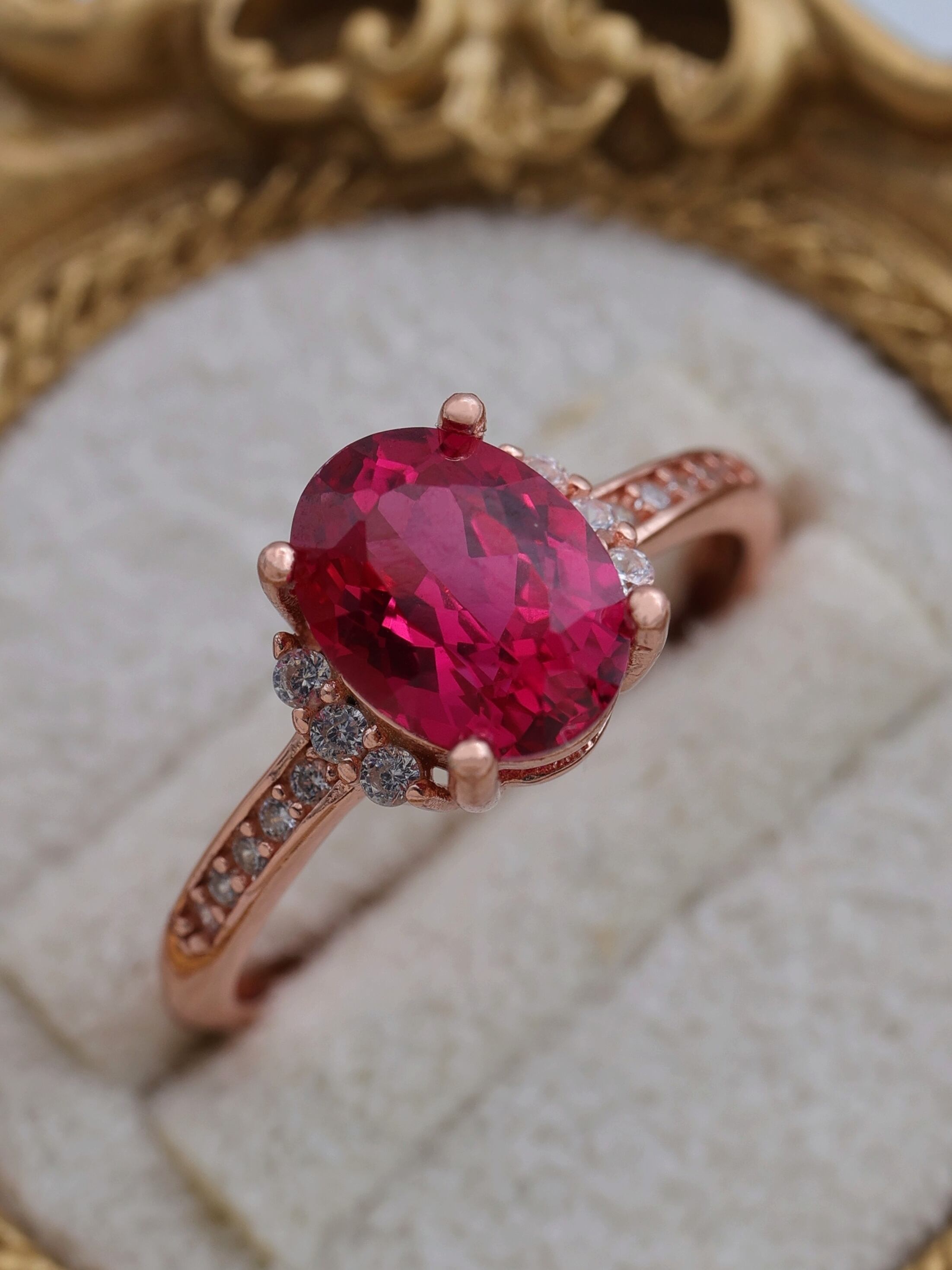 可憐さと気品をあわせ持つ、美しいラボグロウンルビーのリング。