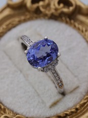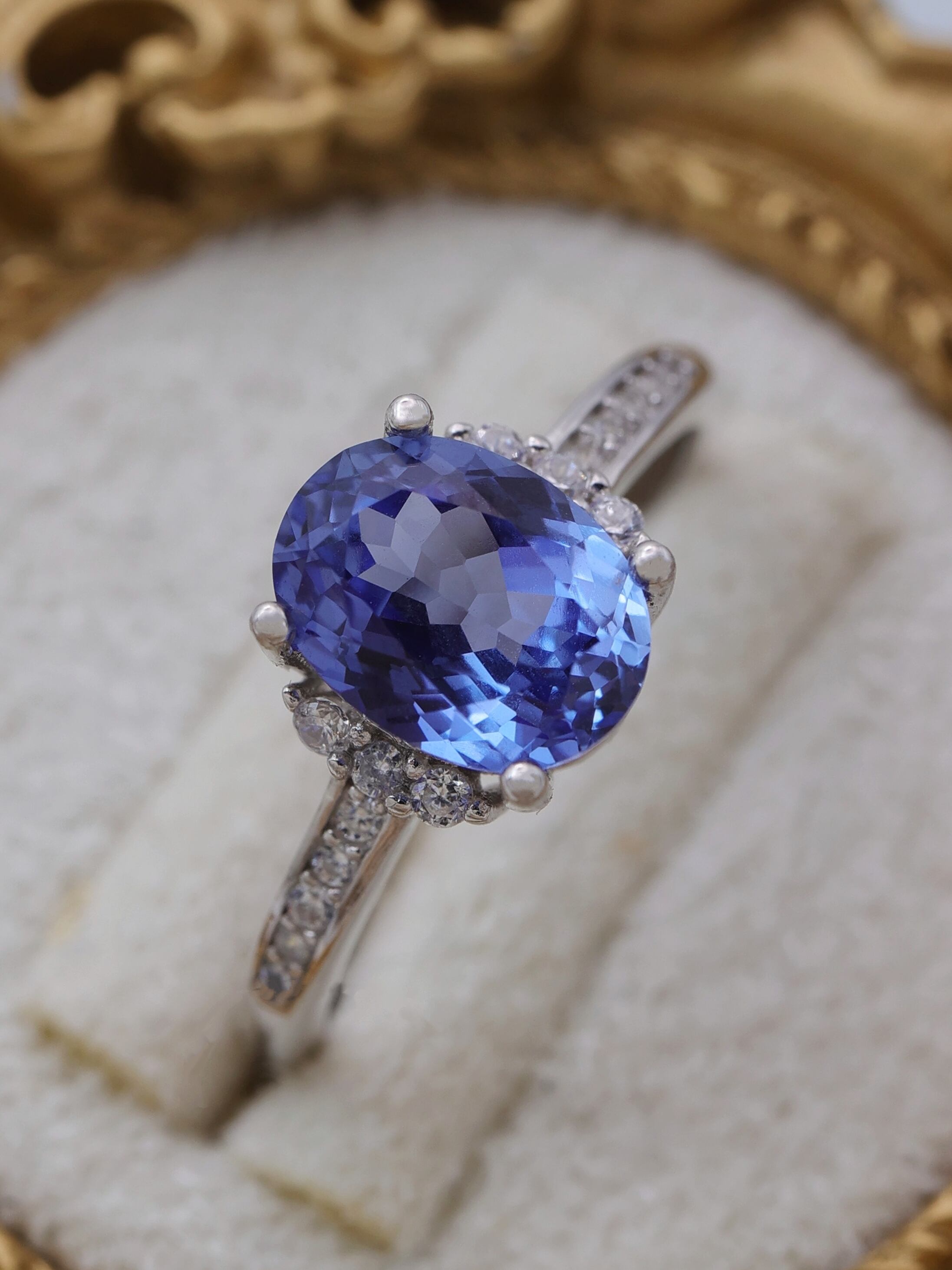 可憐さと気品をあわせ持つ、美しいラボグロウン・コーンフラワーブルーサファイアのリング。