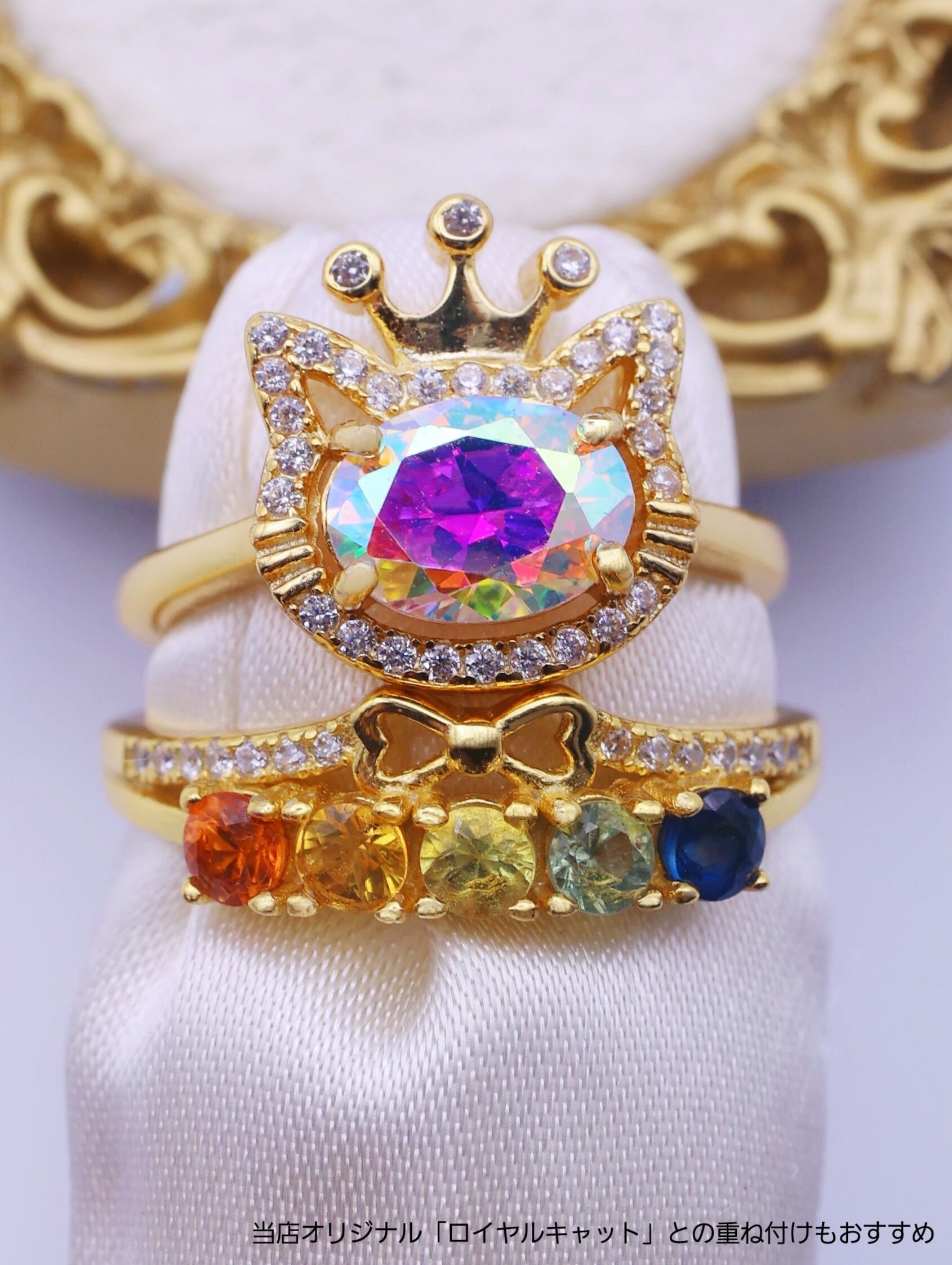 そしてぜひおすすめしたいのが、当店オリジナルデザインのロイヤルキャットとの重ね付け。
