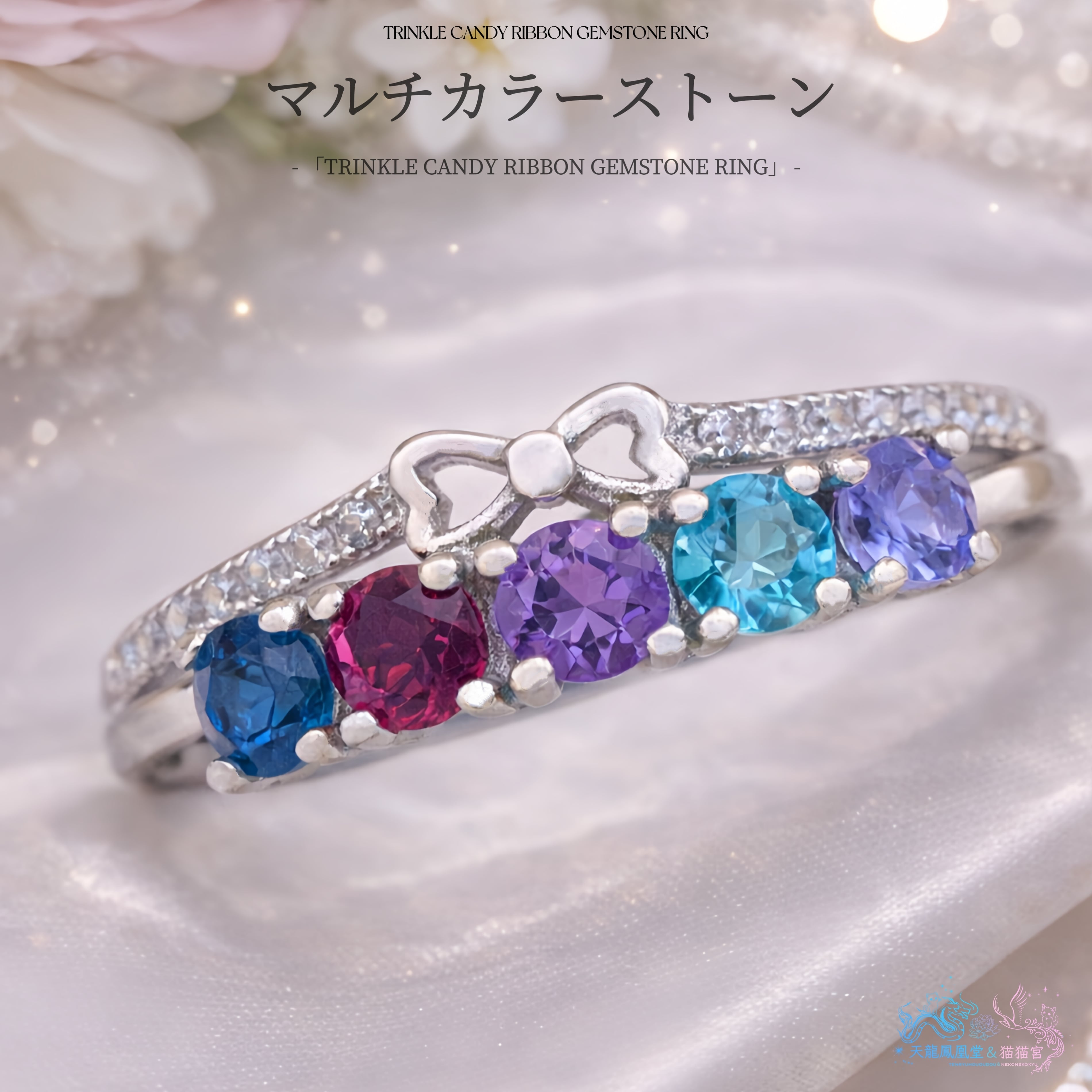 【TRINKLE CANDY RIBBON】マルチカラーストーン 天然石 リボン S925 シルバー リング
