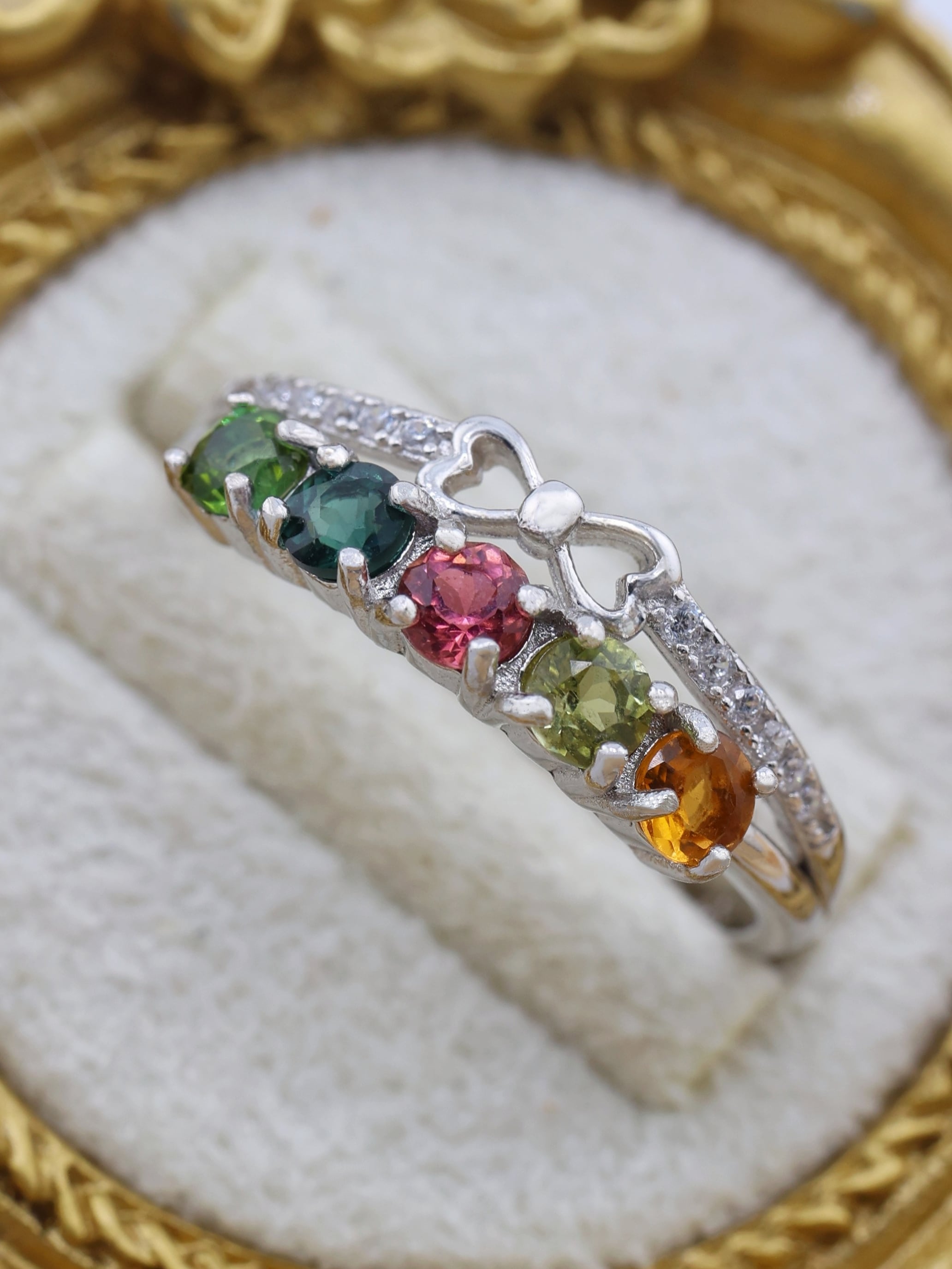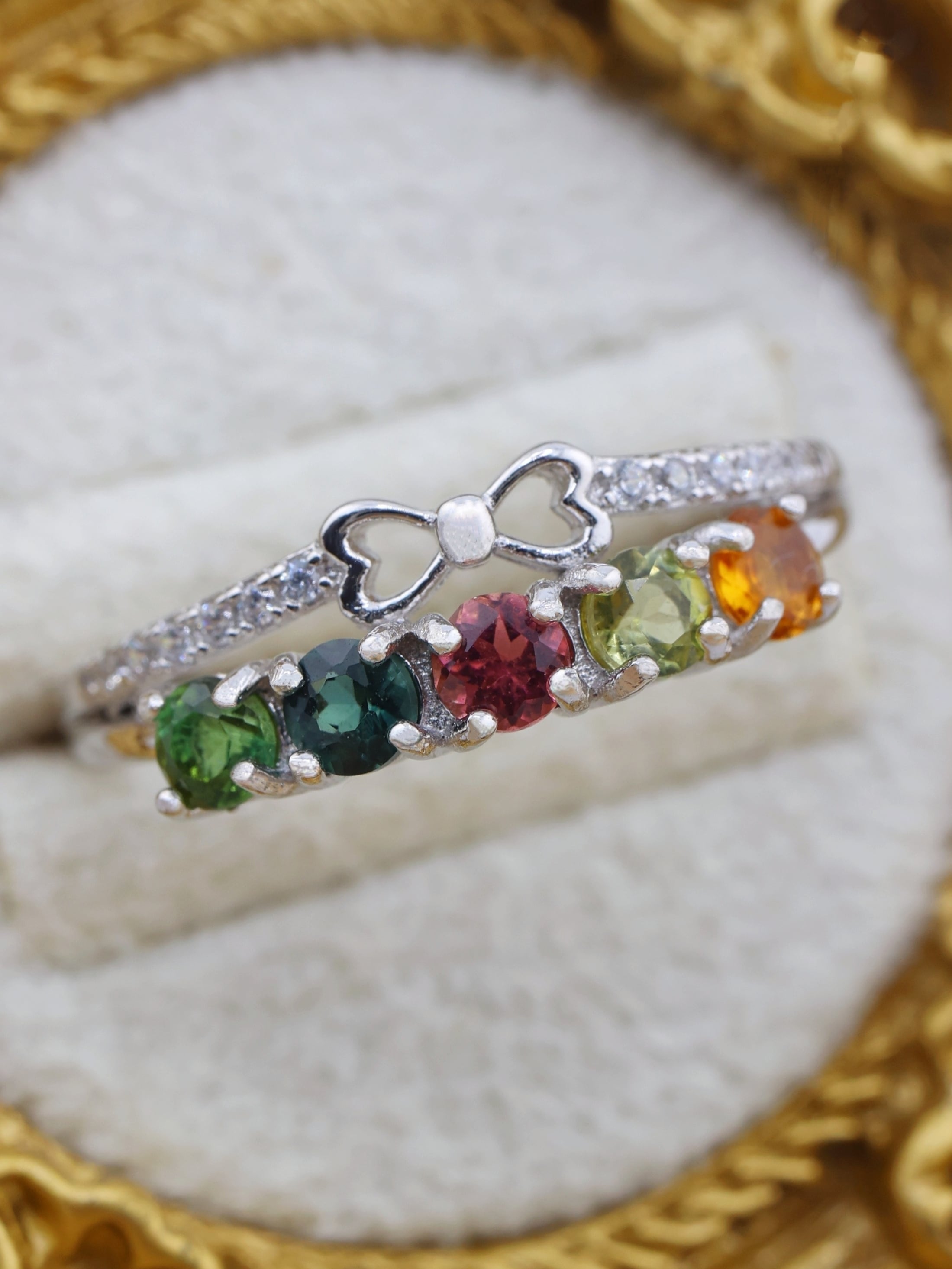 マルチカラーのトルマリンを贅沢に並べた、心ときめくリボンリング。