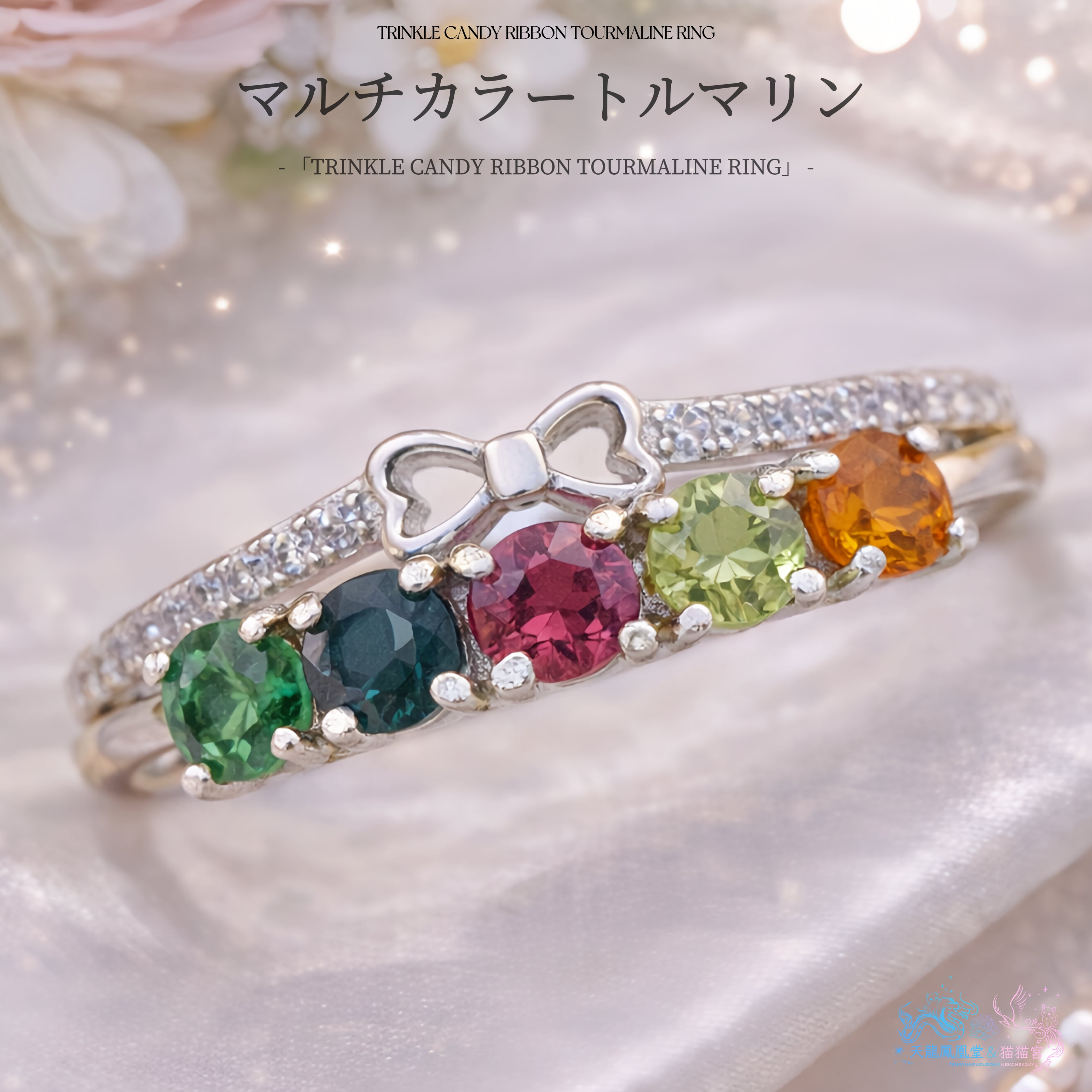【TRINKLE CANDY RIBBON】マルチカラー トルマリン 天然石 リボン S925 シルバー リング