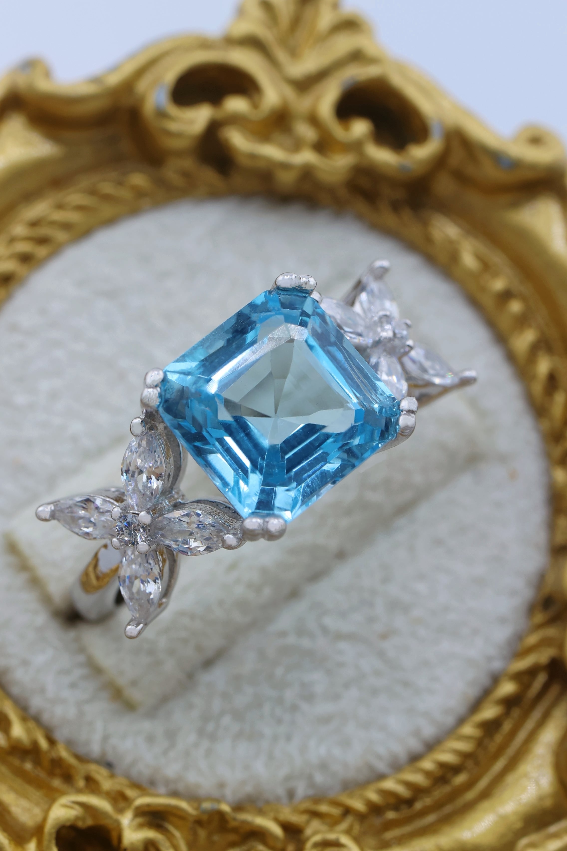 主役となるセンターストーンには、透明感を存分に楽しめるアッシャーカットを採用。