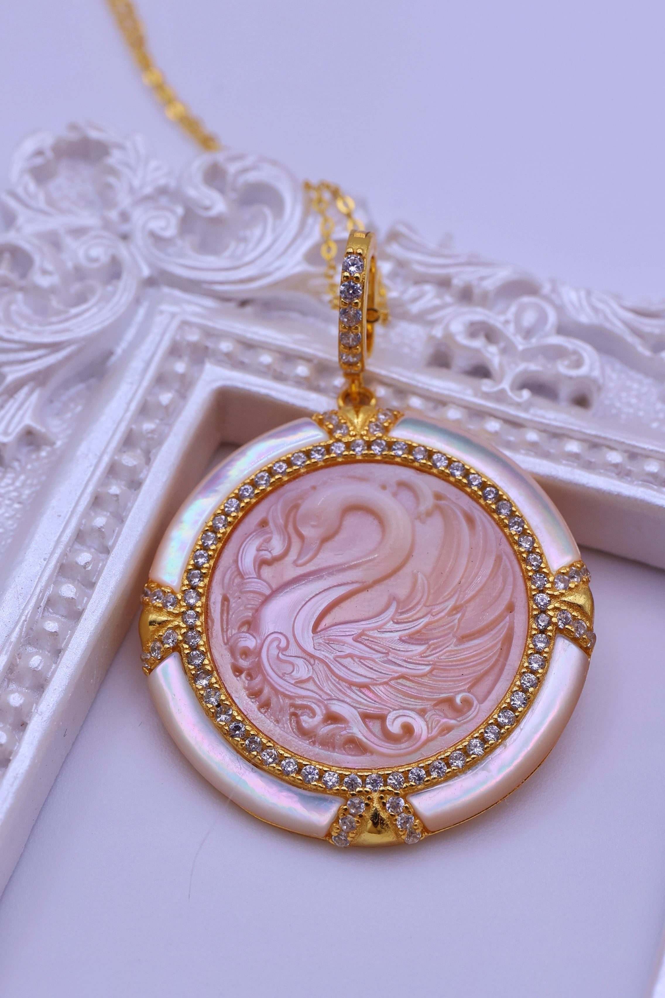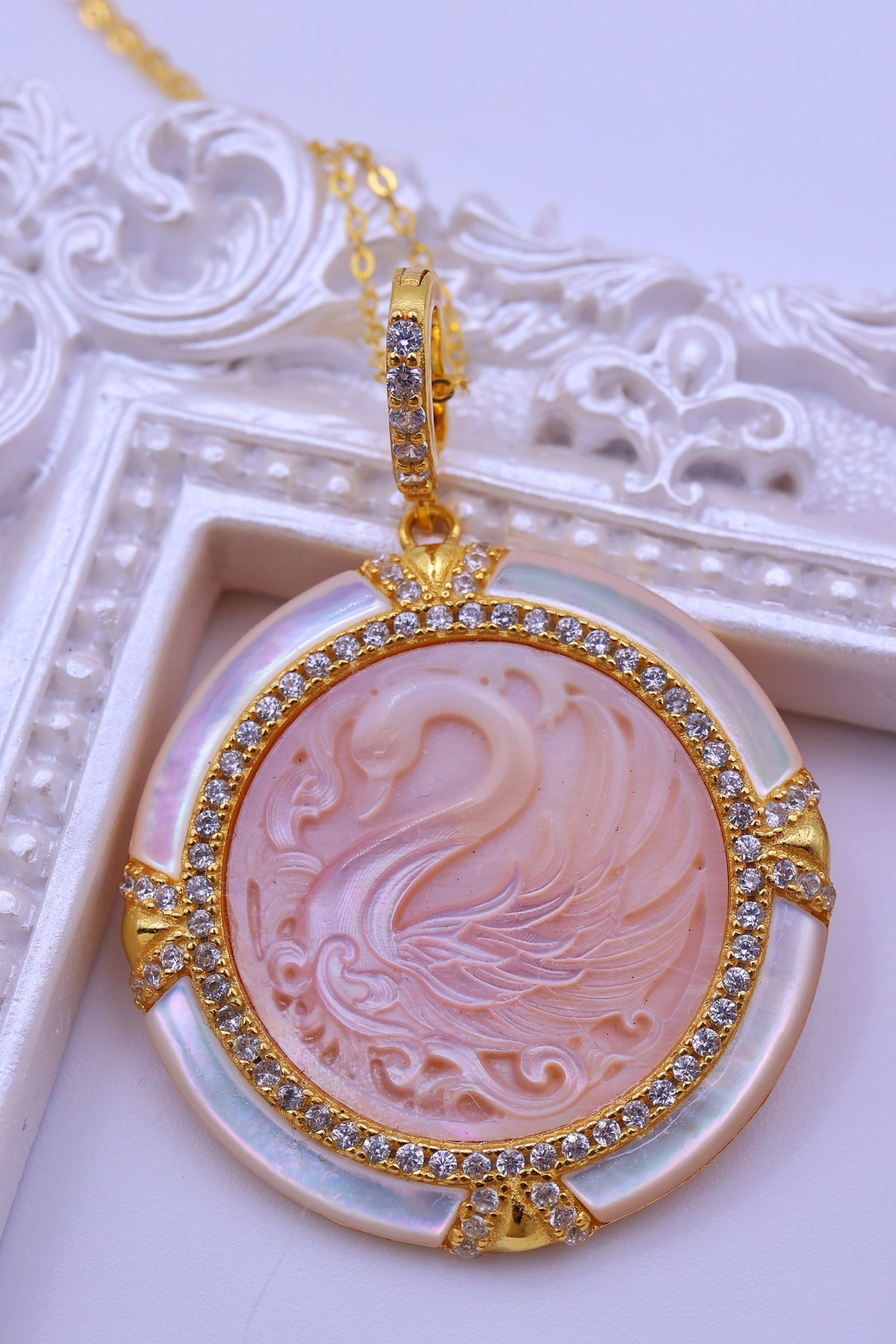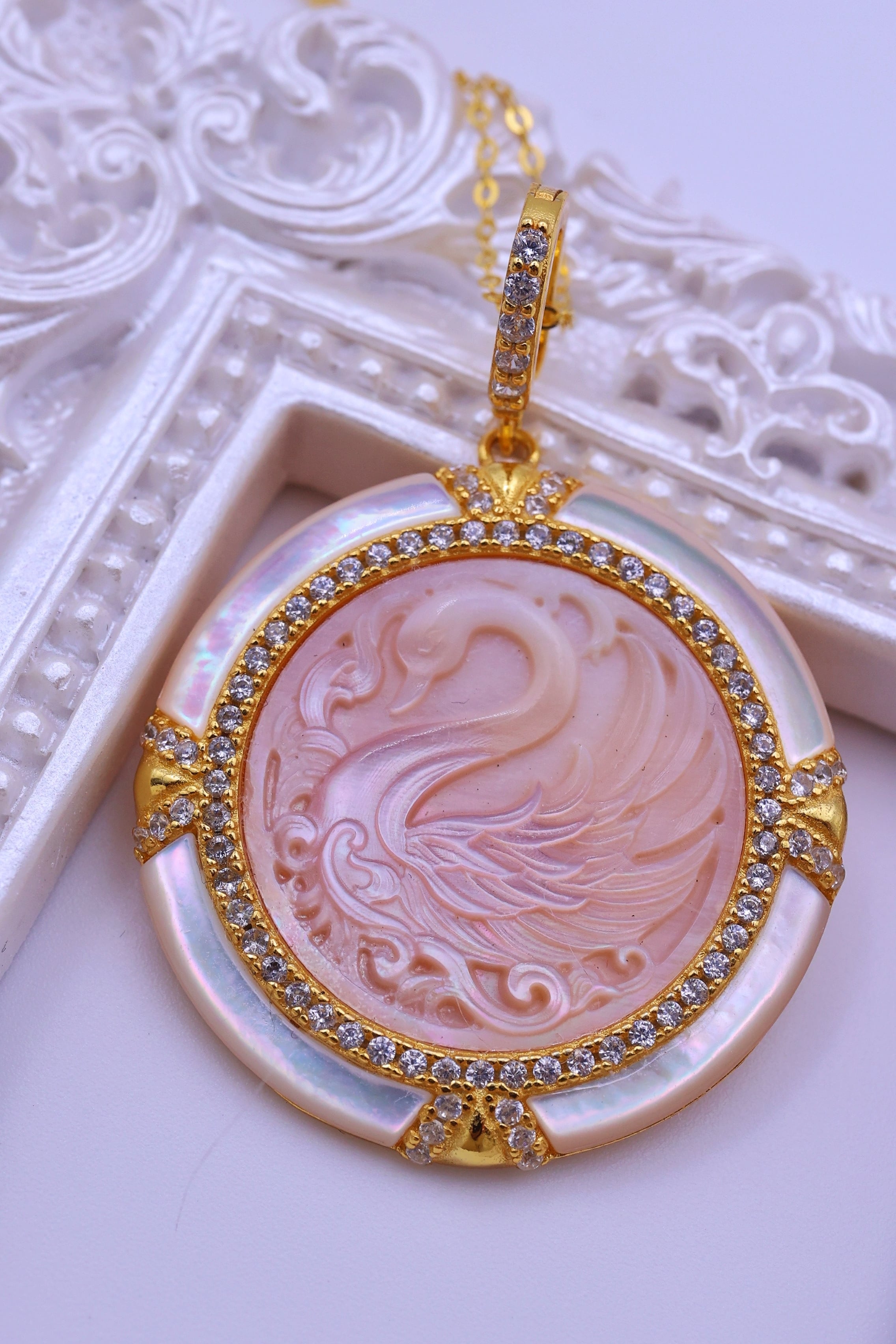 【白蝶貝彫刻シリーズ】希少紫系 白鳥の湖 スワン ペンダント 天然石 シェル シルバー S925