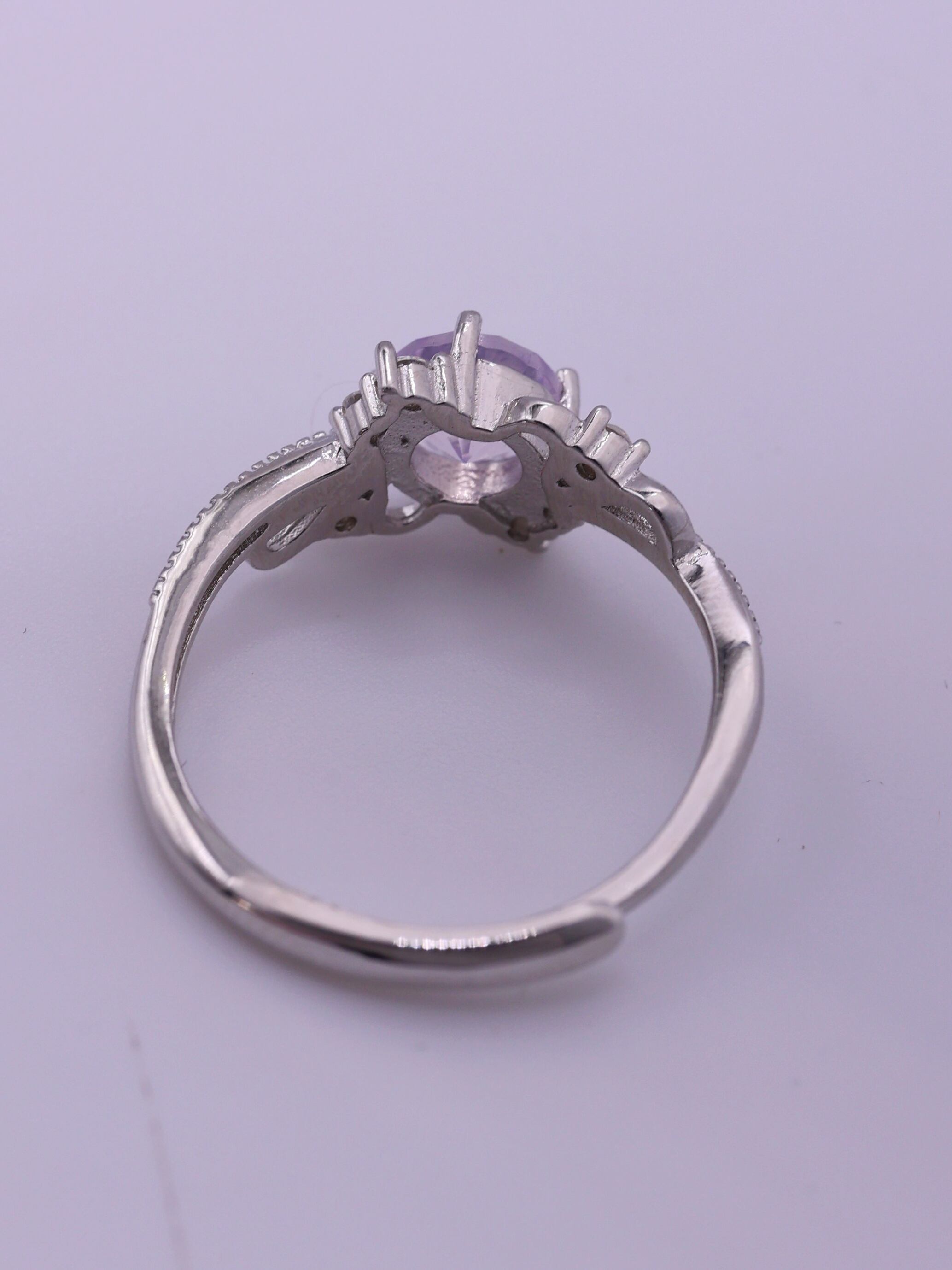 側面から見ても美しく、王家の宝飾品を思わせる優美なシルエットに仕上げられています。アクセントとしてあしらわれたキュービックジルコニアが、主石を引き立てるように配置され、全体にリズムと立体感を添えています。