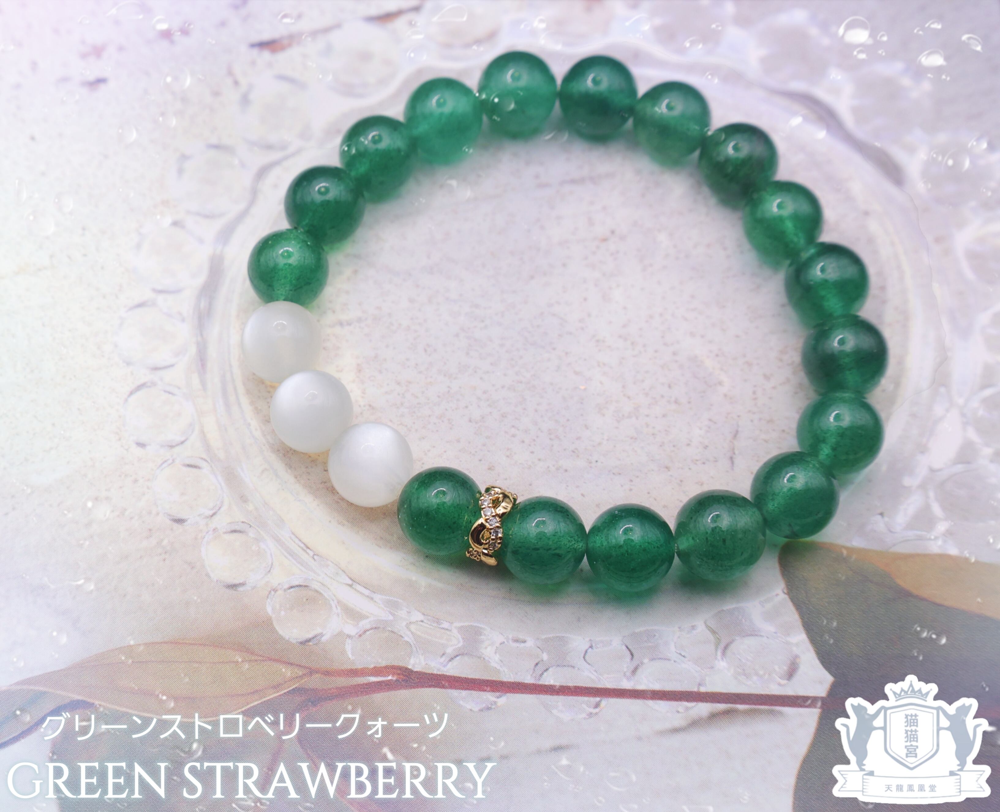 グリーンストロベリー ホワイトムーンストーン デザインブレスレット