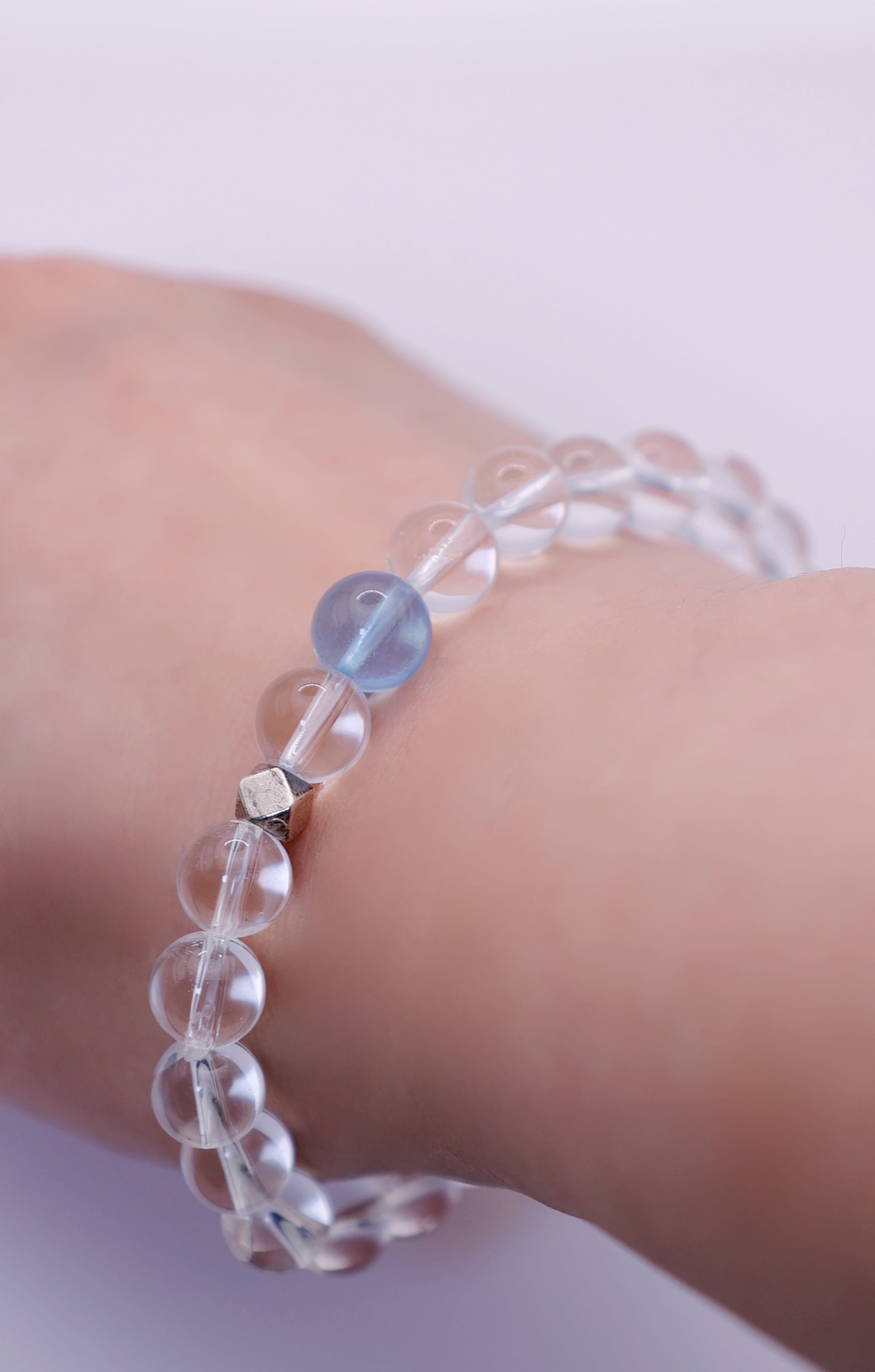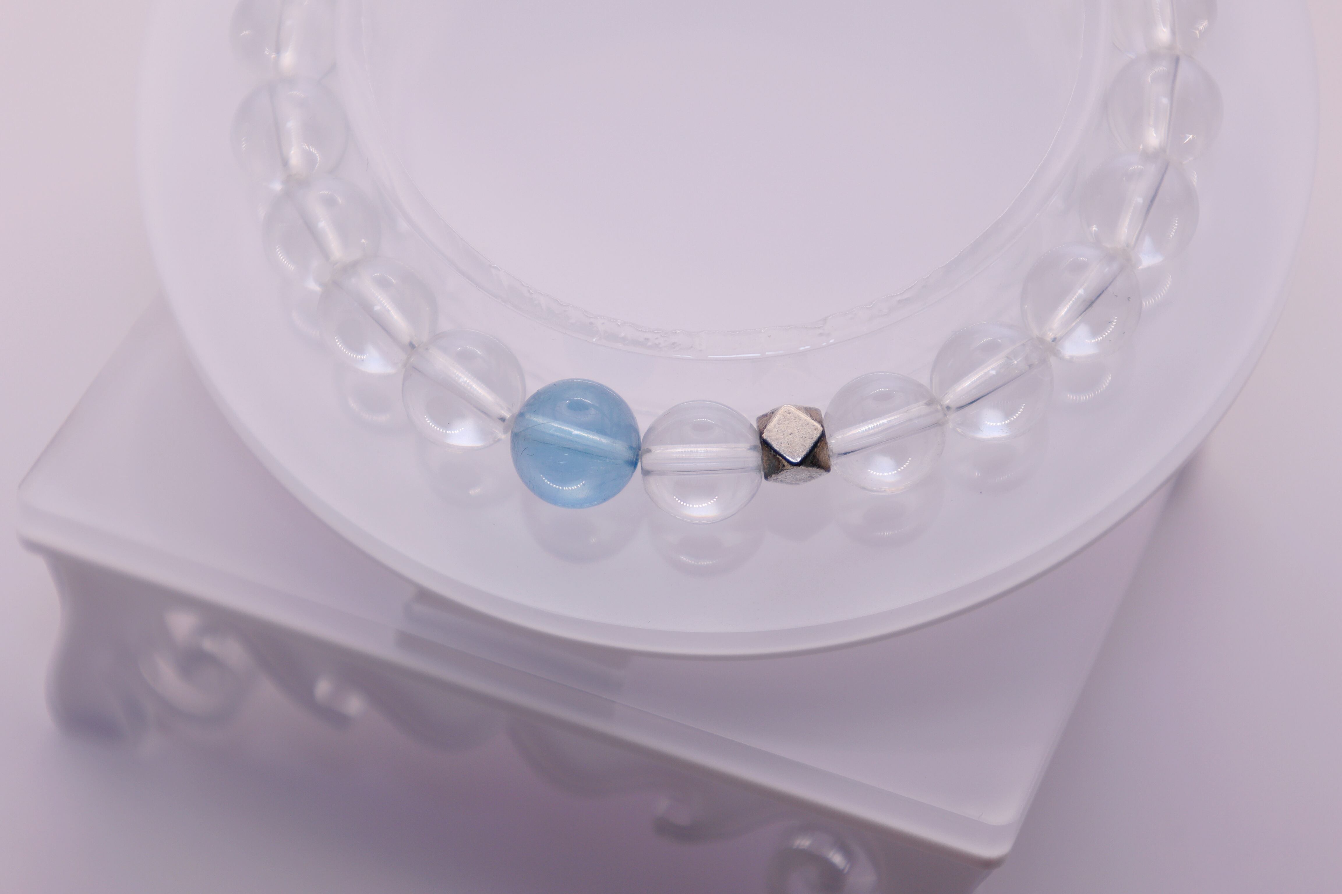 透明度抜群の水晶とアクアマリンが美しい輝きを放つ、The Dream of Rosyデザインブレスレット。