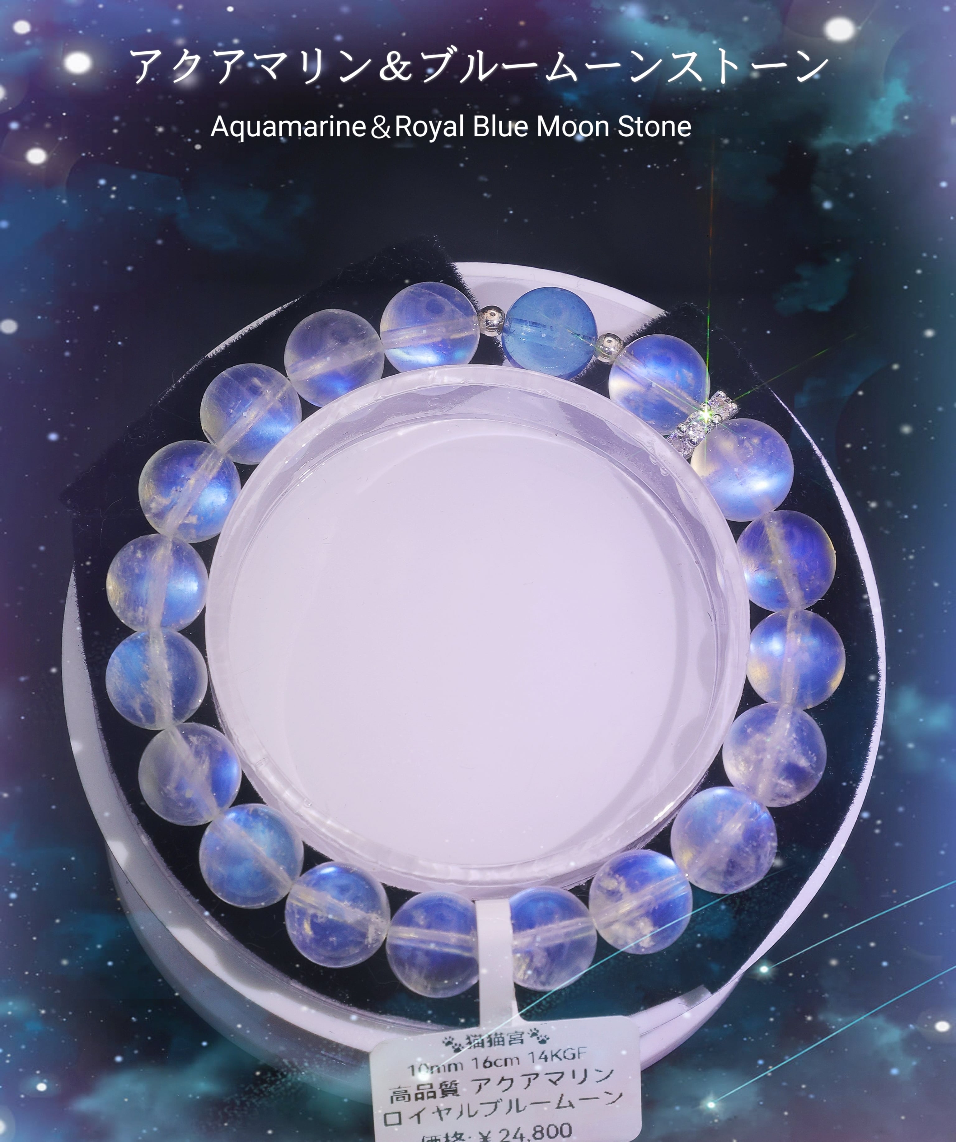 高品質 アクアマリン ブルームーンストーン ブレスレット 天然石