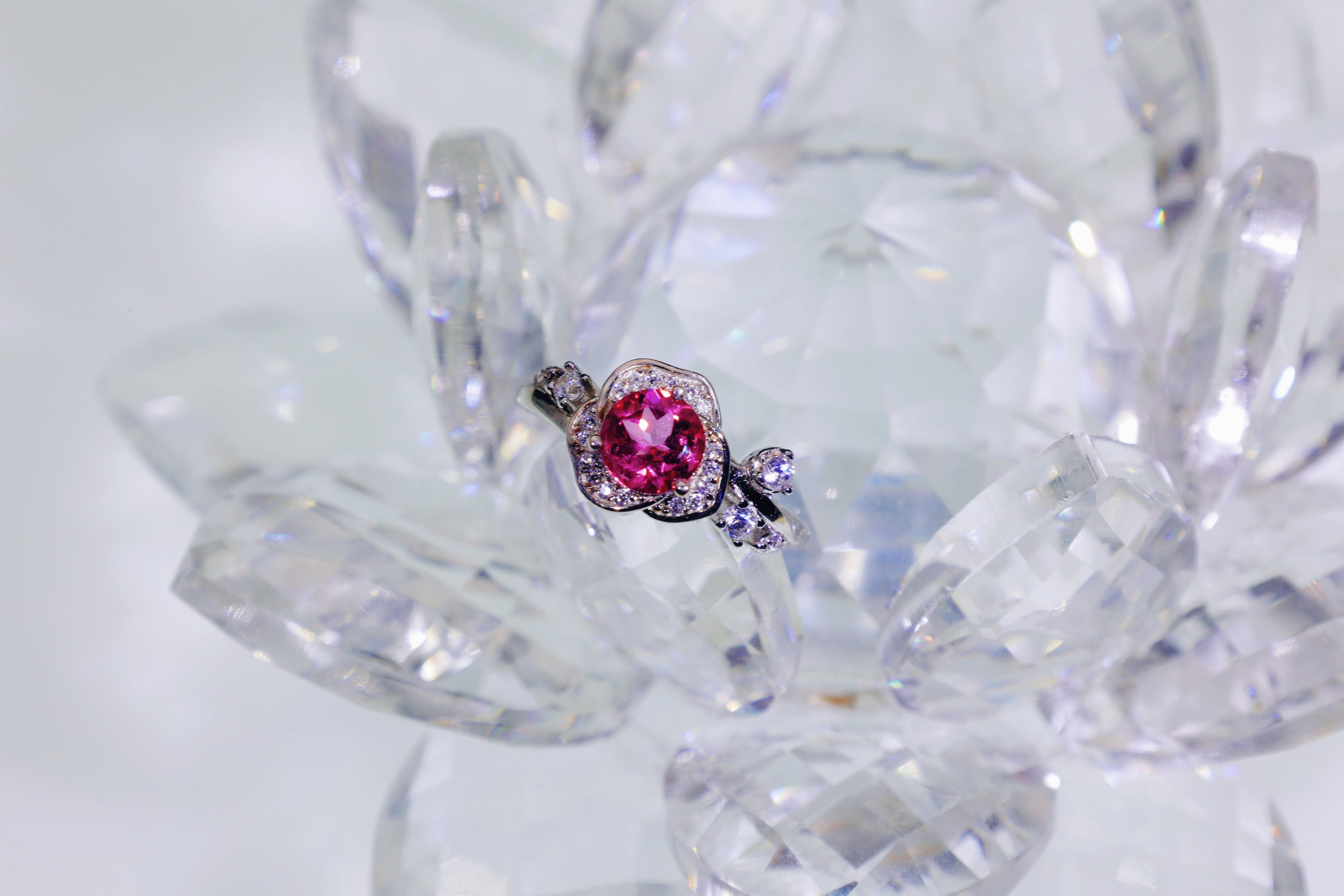 ・ピンクトパーズ:天然トパーズにピンク色のコーティングを施し、華やかなピンクの輝きを持つ宝石です。高品質で、極めて透明度が高いです。